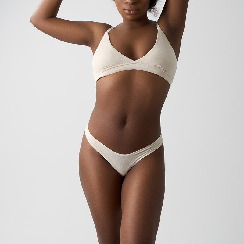 Комплект из хлопкового бюстгальтера-бралетта и трусиков SKIMS в одном стиле, из хлопка и спандекса, быстросохнущая спортивная одежда.
