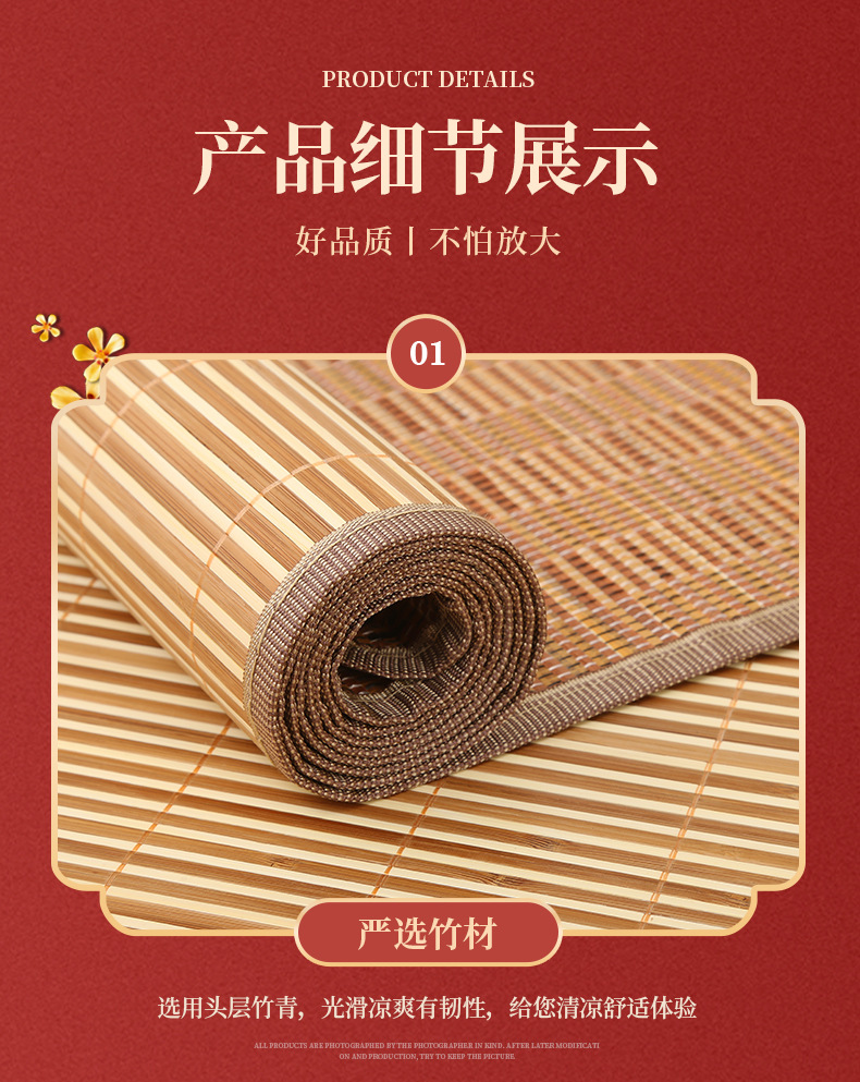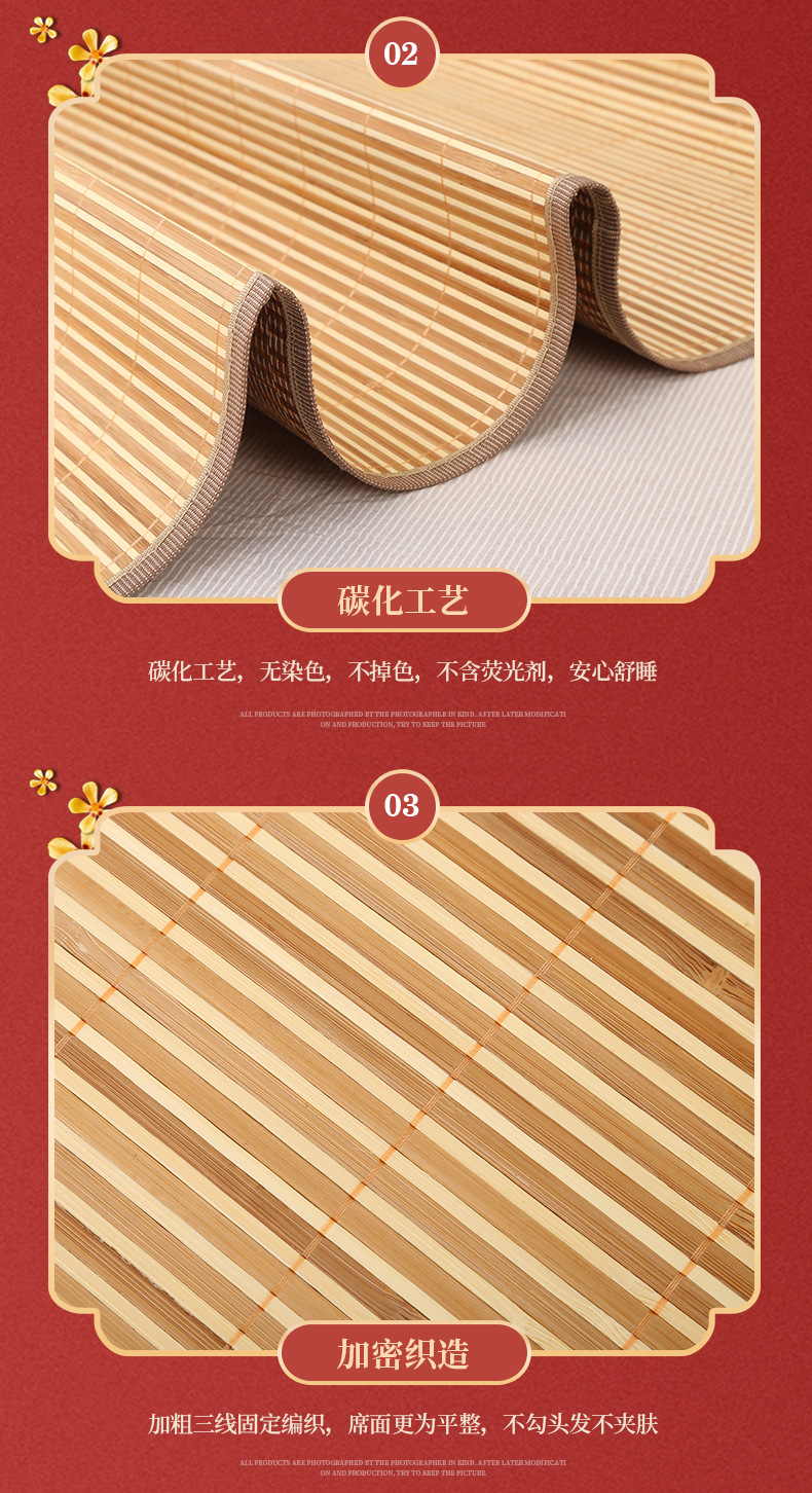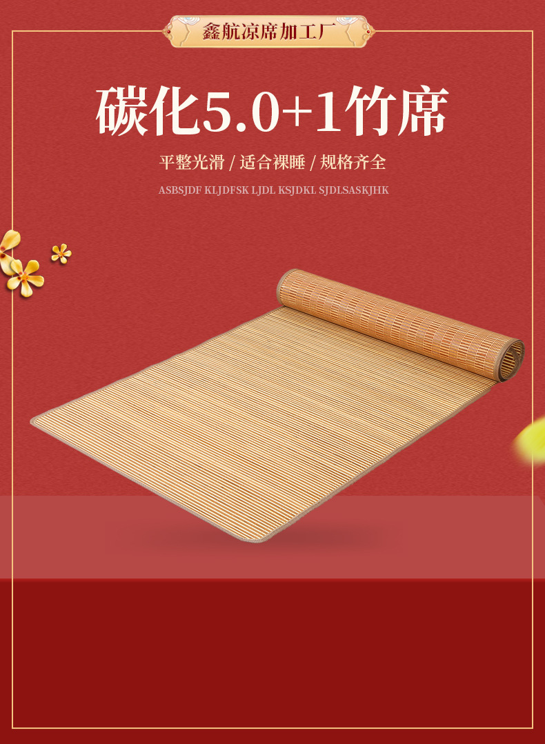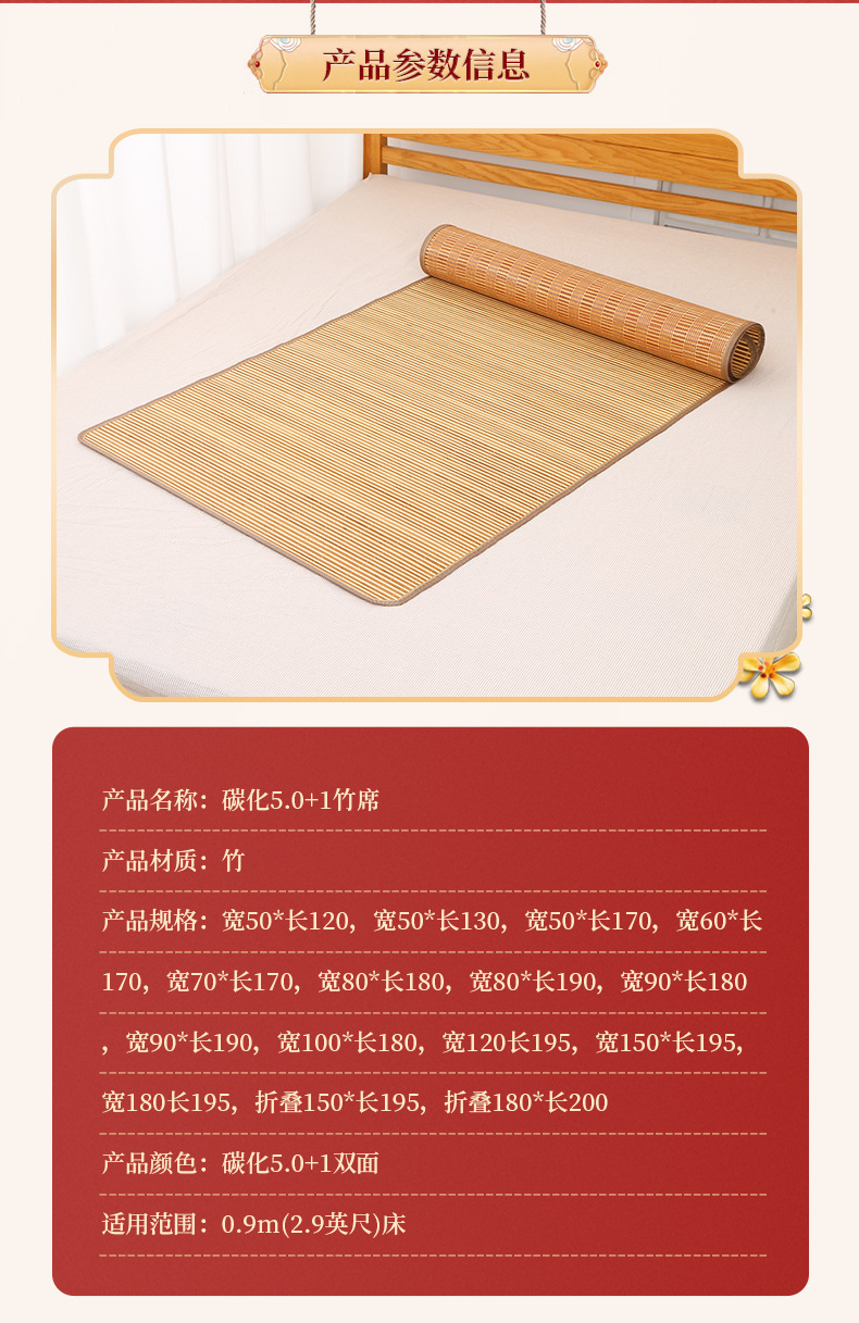 Углеродизированный бамбуковый коврик 5.0+1, летний двусторонний утолщенный охлаждающий коврик, коврик для односпальной кровати в общежитии, оптовая продажа, ощущение прохлады.