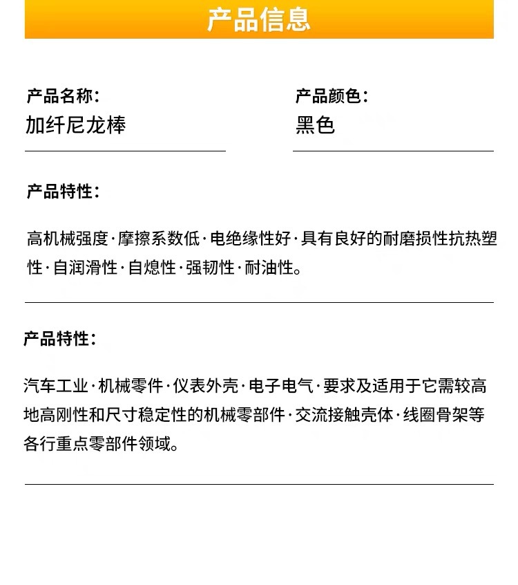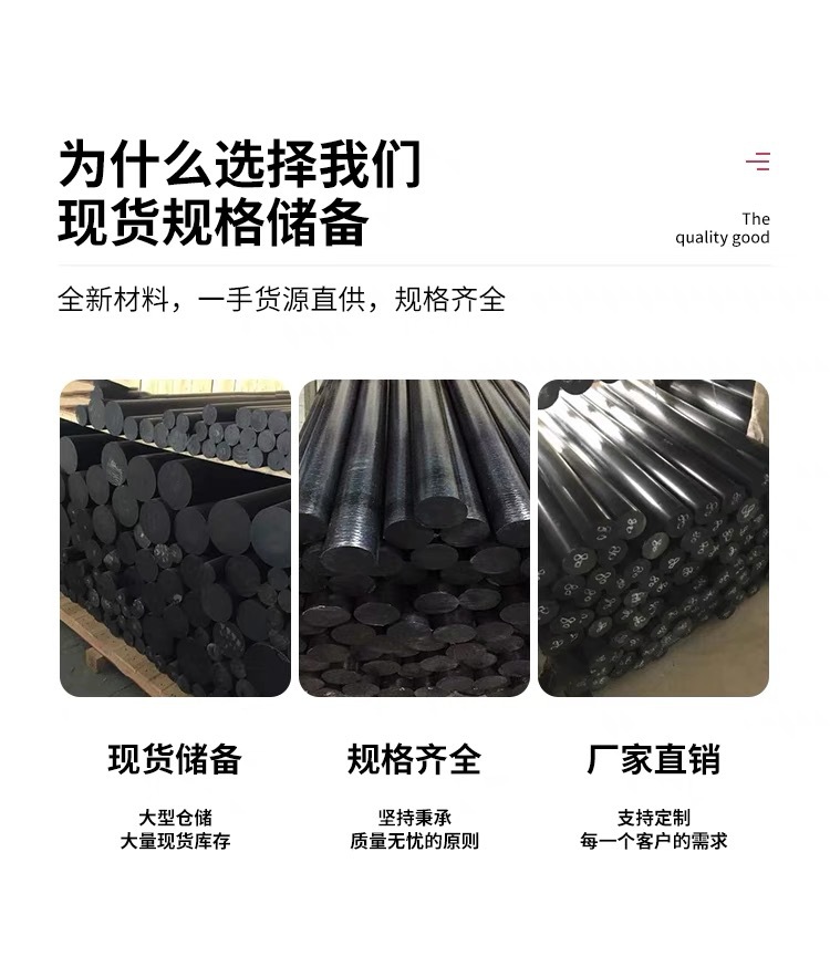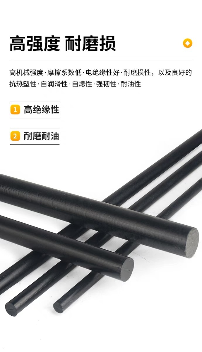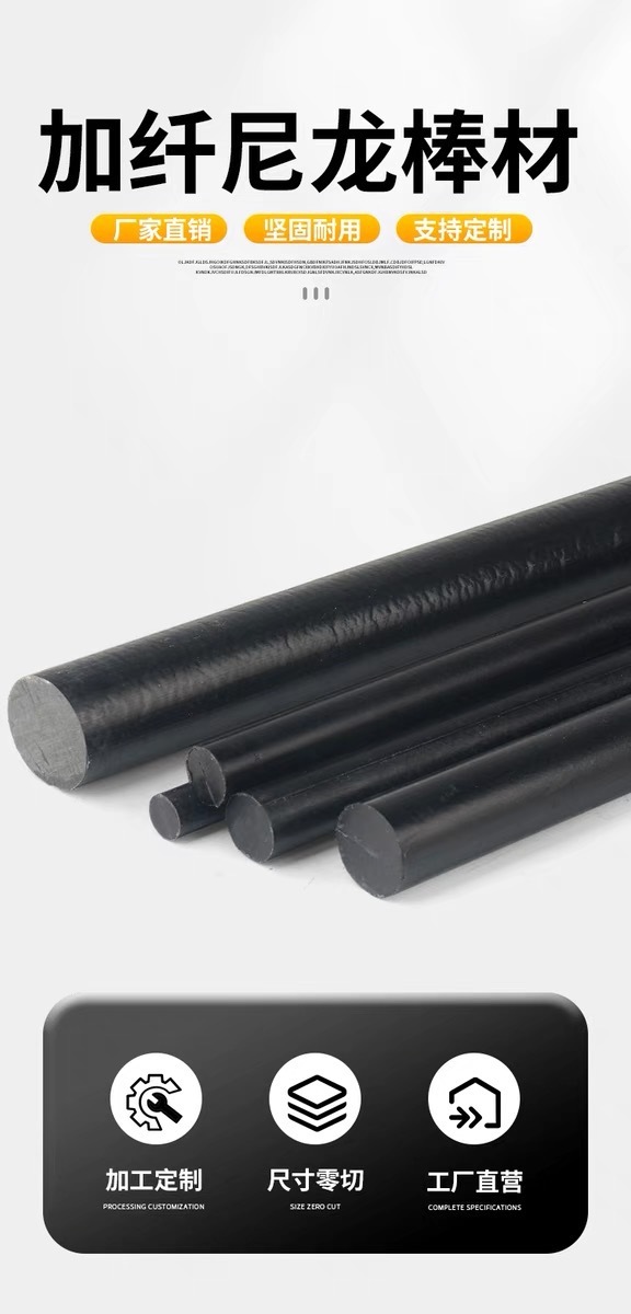 Черный стекловолоконный нейлоновый стержень PA66+GF30, армированный PA6, модифицированный высокопрочный износостойкий нейлоновый стержень