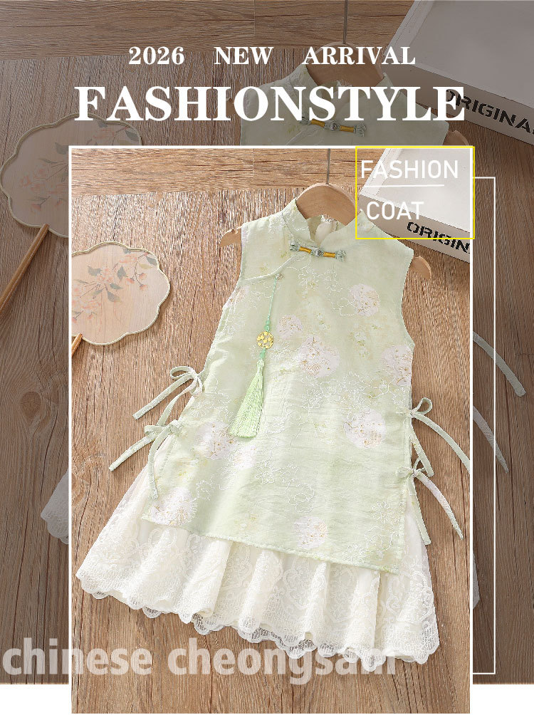 Летняя детская одежда для девочек без рукавов Новая Китайская Республика Платье Чонсам