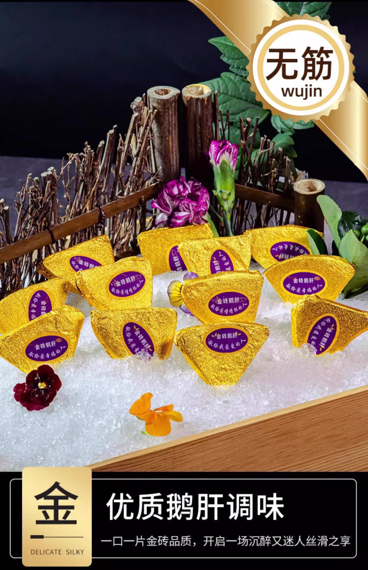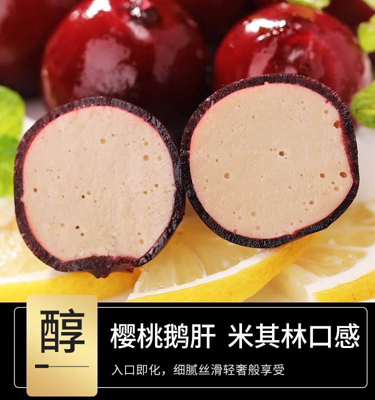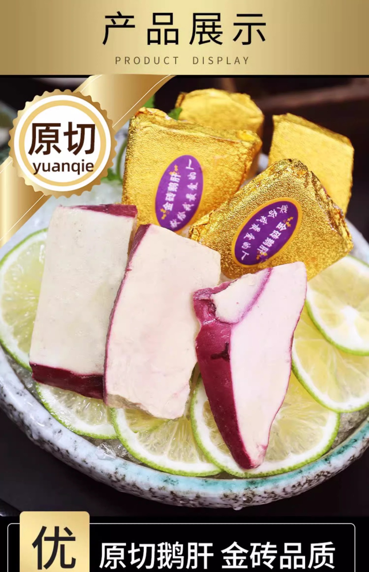 Французское золотое кирпичное фуа-грас, красное вино, мороженое с черникой и вишней, ломтики фуа-граса, свежее готовое к употреблению коммерческое сашими, готовое к употреблению
