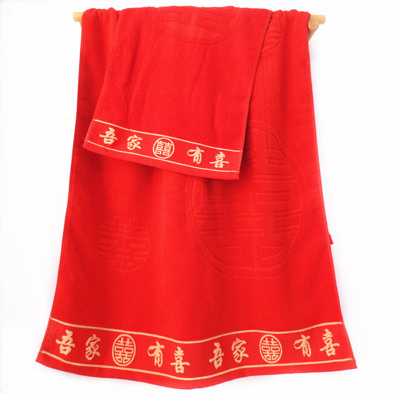 Большое красное хлопковое банное полотенце Wu Jia Youxi 70*140, подарок, сувенир, автомобильное украшение, красное банное полотенце с надписью "Счастливого дня", хлопок
