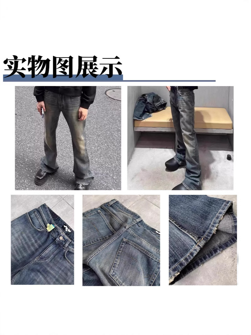 Мужские брюки-клеш из хлопчатобумажной ткани с эффектом выцветшей грязной окраски, в стиле американской ретро-моды.