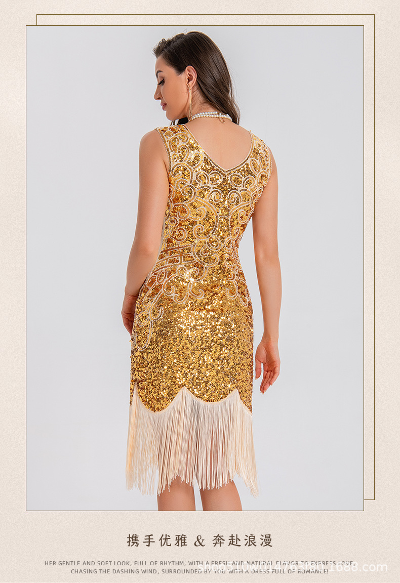 Ретро-платье в стиле Гэтсби 1920 года, коктейльное платье для бала с кисточками и бисером, европейский и американский стиль, популярный на Amazon.
