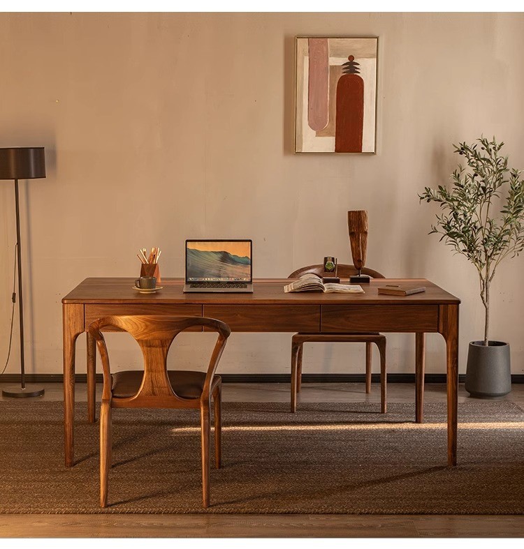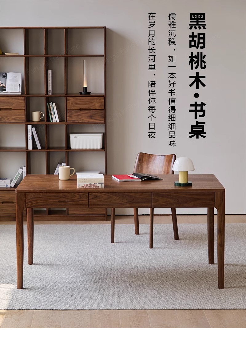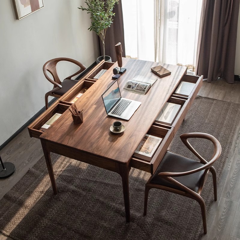 Письменный стол из черного ореха из цельного дерева Новый китайский стиль прямоугольный стол с выдвижным ящиком Ретро длинный стол учебный стол