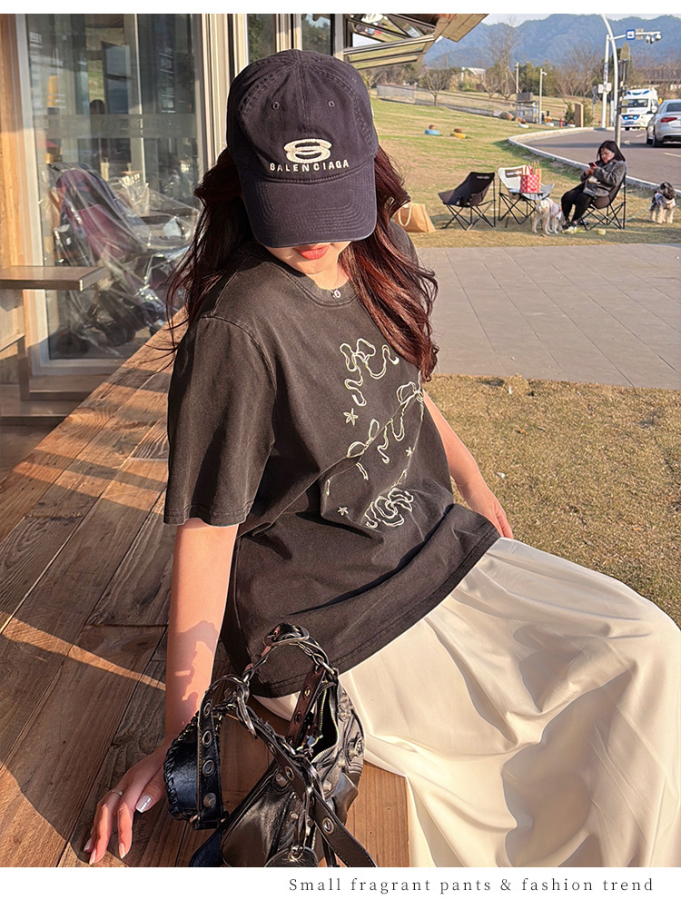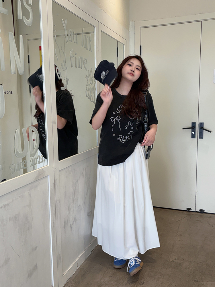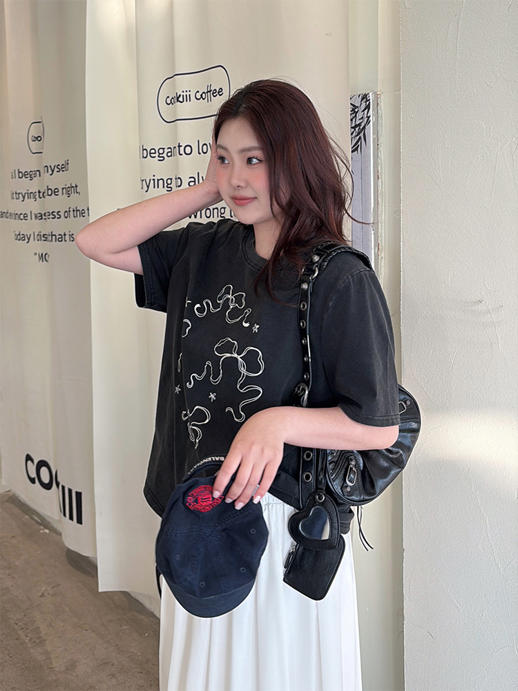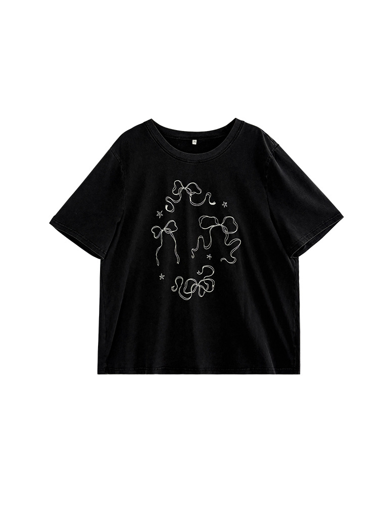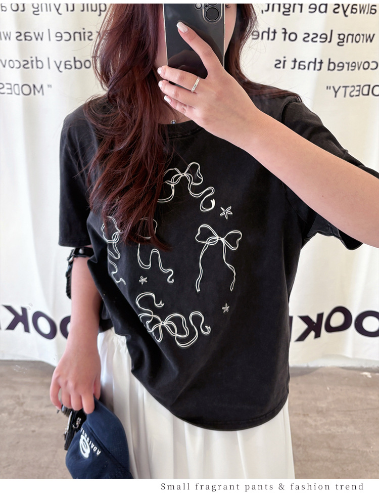 Большой размер женская ленивая повседневная банта с короткими рукавами летняя свободная темпераментная футболка толстый мм пуловер хлопчатобумажная нижняя рубашка