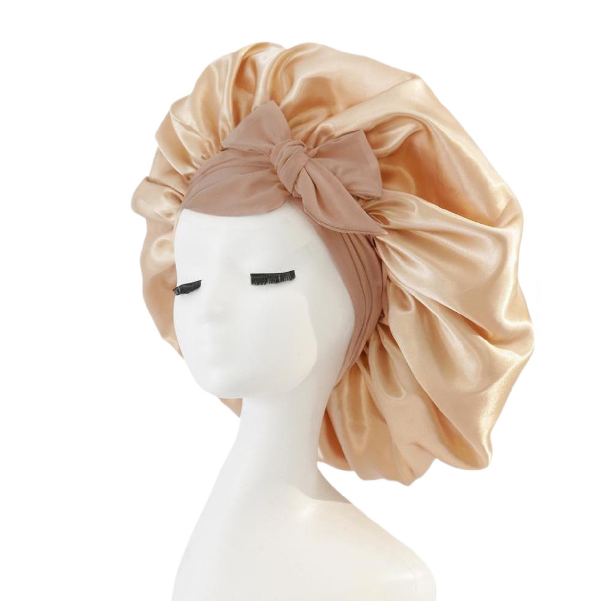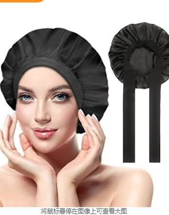 欧美跨境亚马逊选品欧美流行单层色丁睡帽浴帽美容烫发帽睡帽飘带