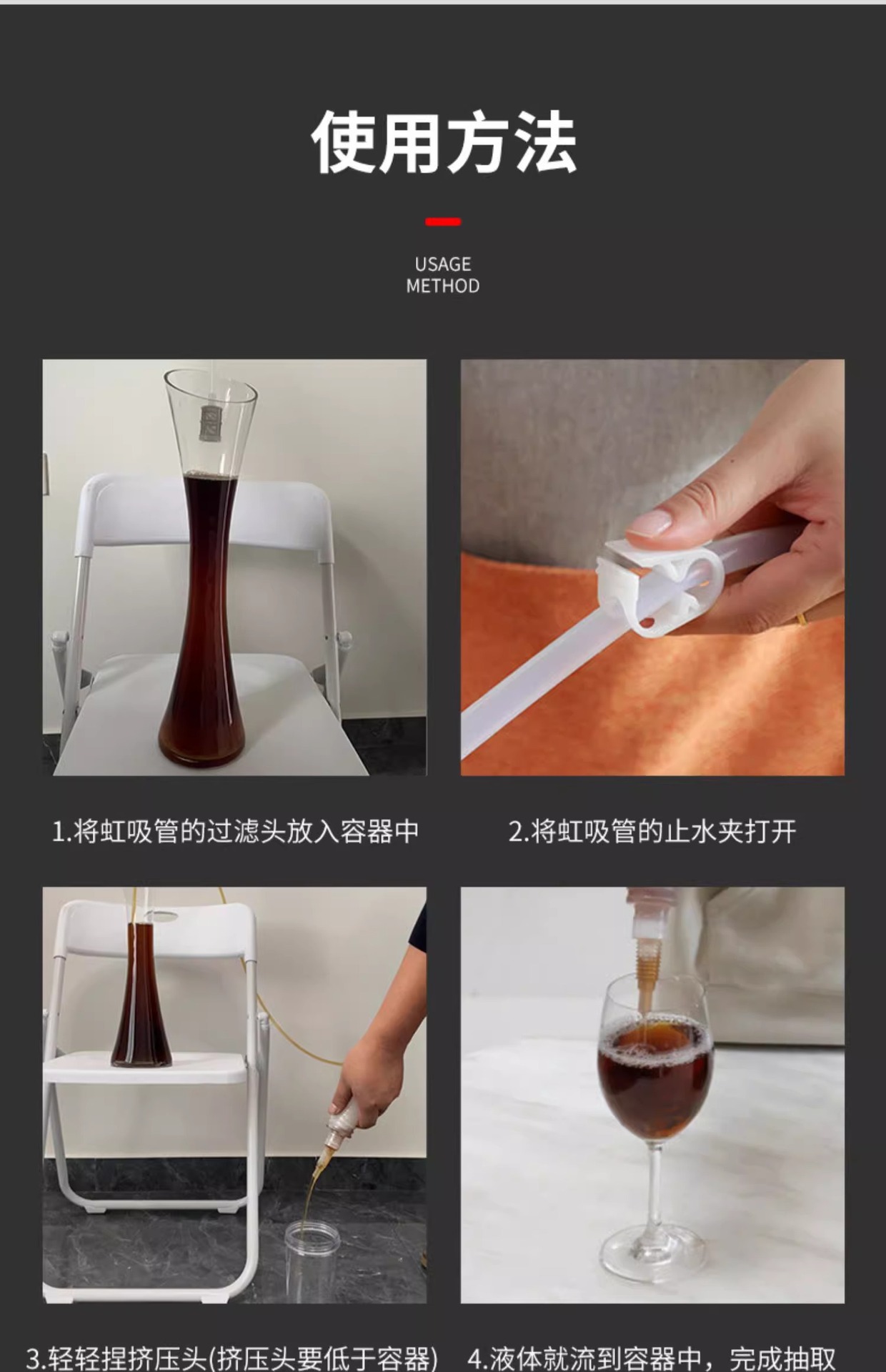1.6m винный экстрактор [PP трубка]; 1.6m Экстрактор для вина [силиконовая трубка] поставляется с зажимом для остановки воды.