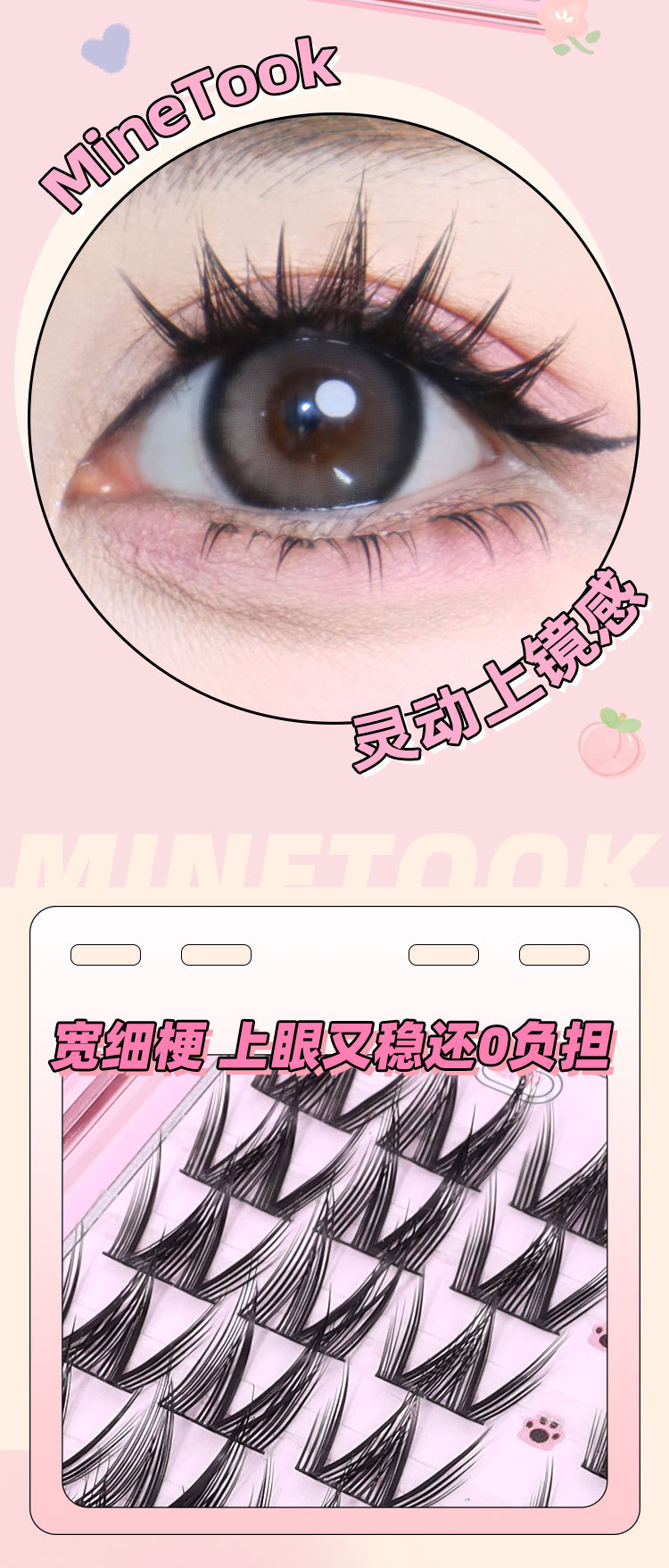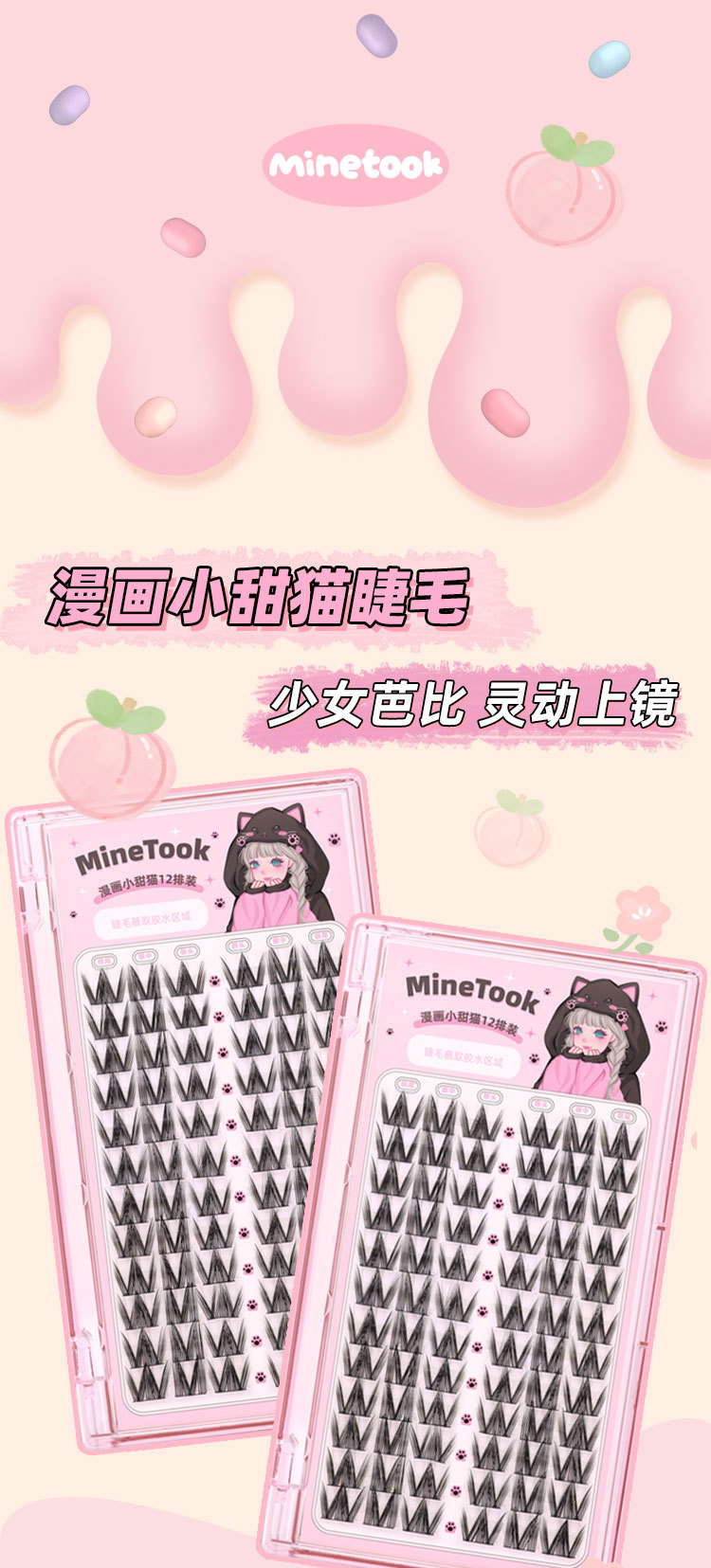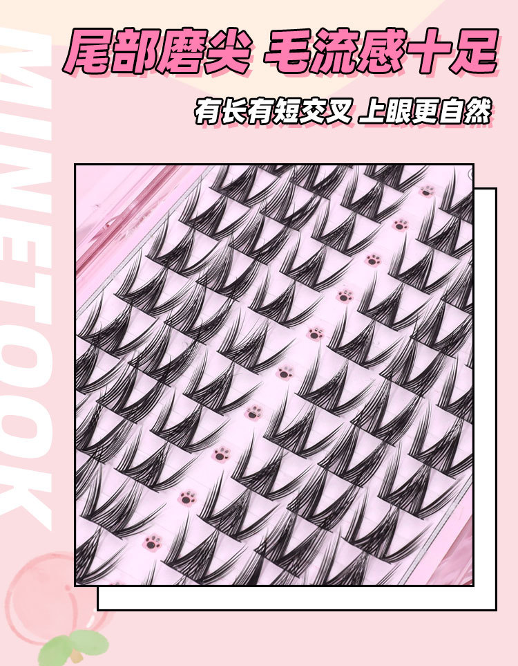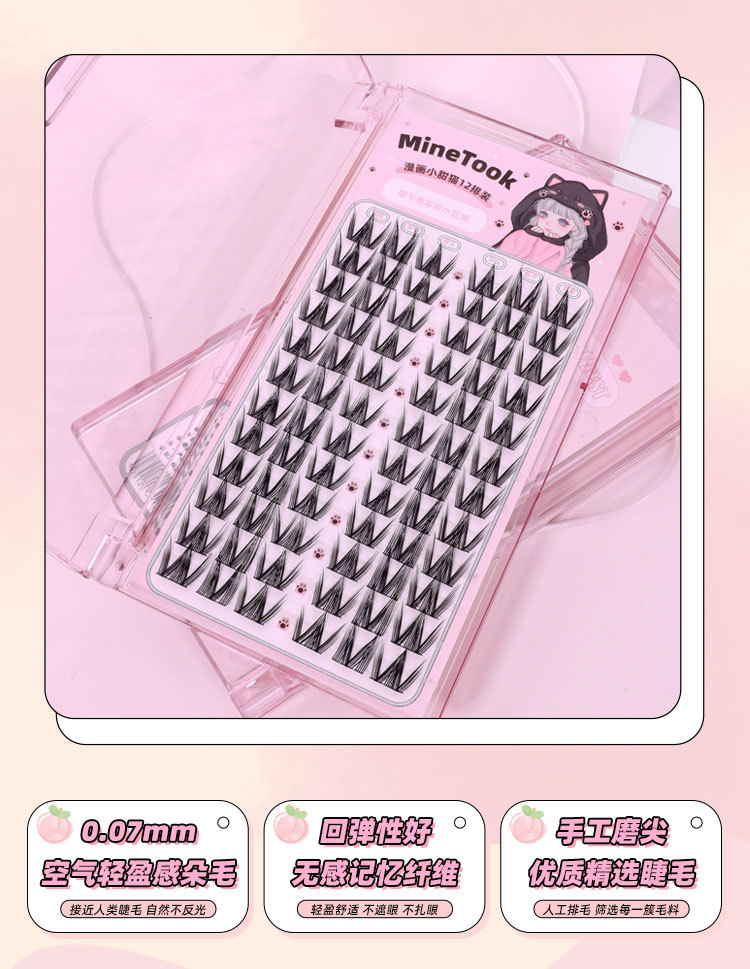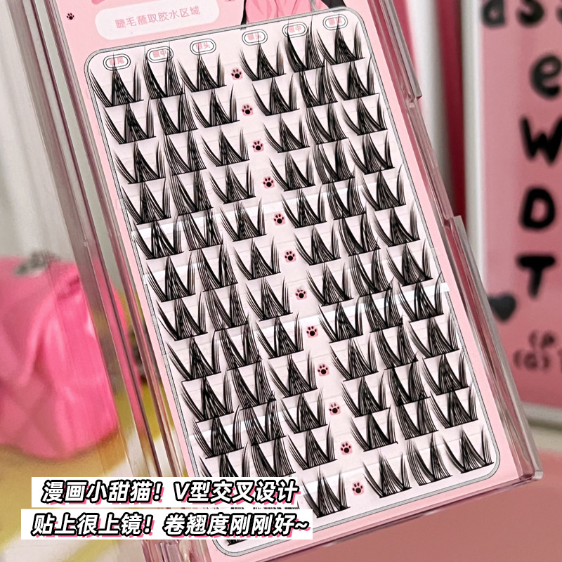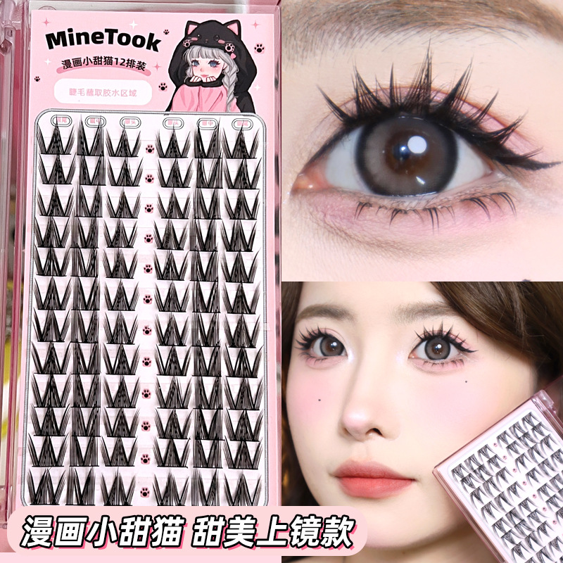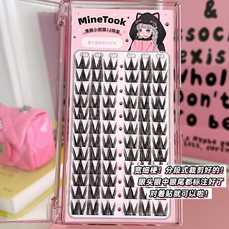 Накладные ресницы с комиксом «Маленький милый кот» для девочек, групповые ресницы Барби, тонкий стержень, одиночный кластер, сегментированные ресницы, фотогеничные