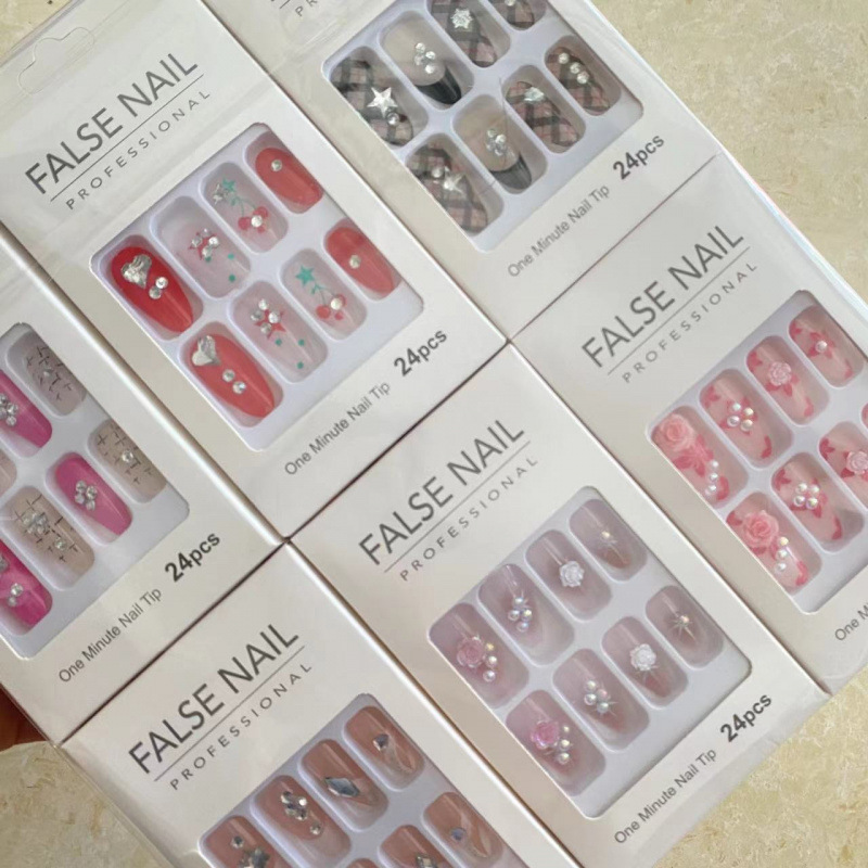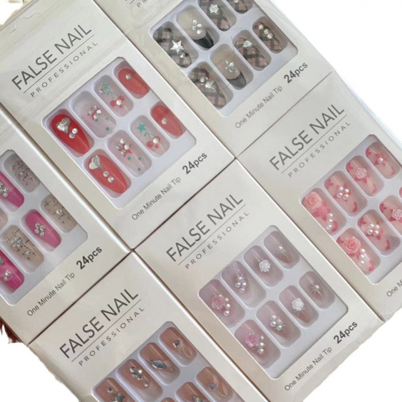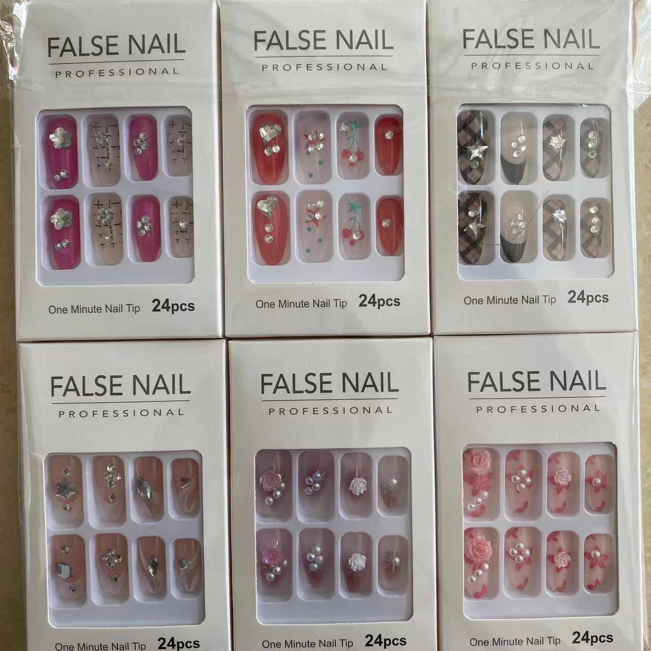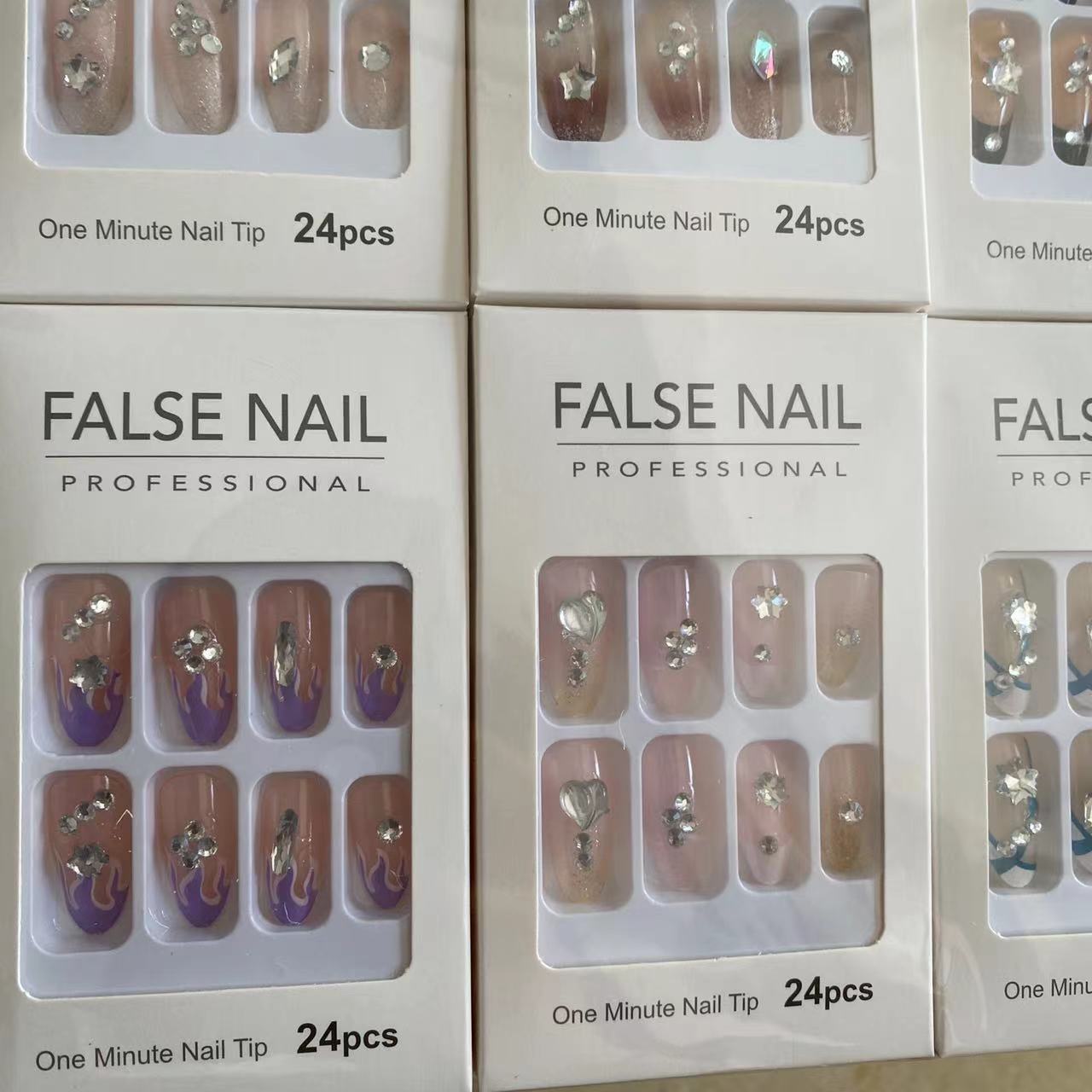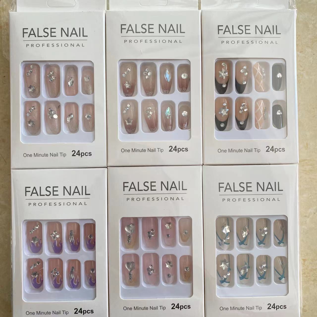 品名:新款穿戴甲24片盒装美甲杏仁甲多钻指甲贴假手指跨境批发亚马逊