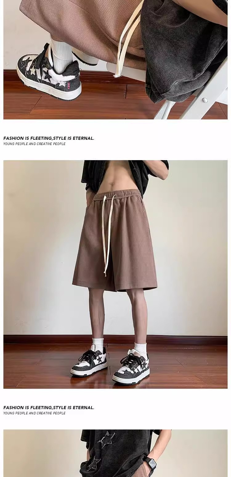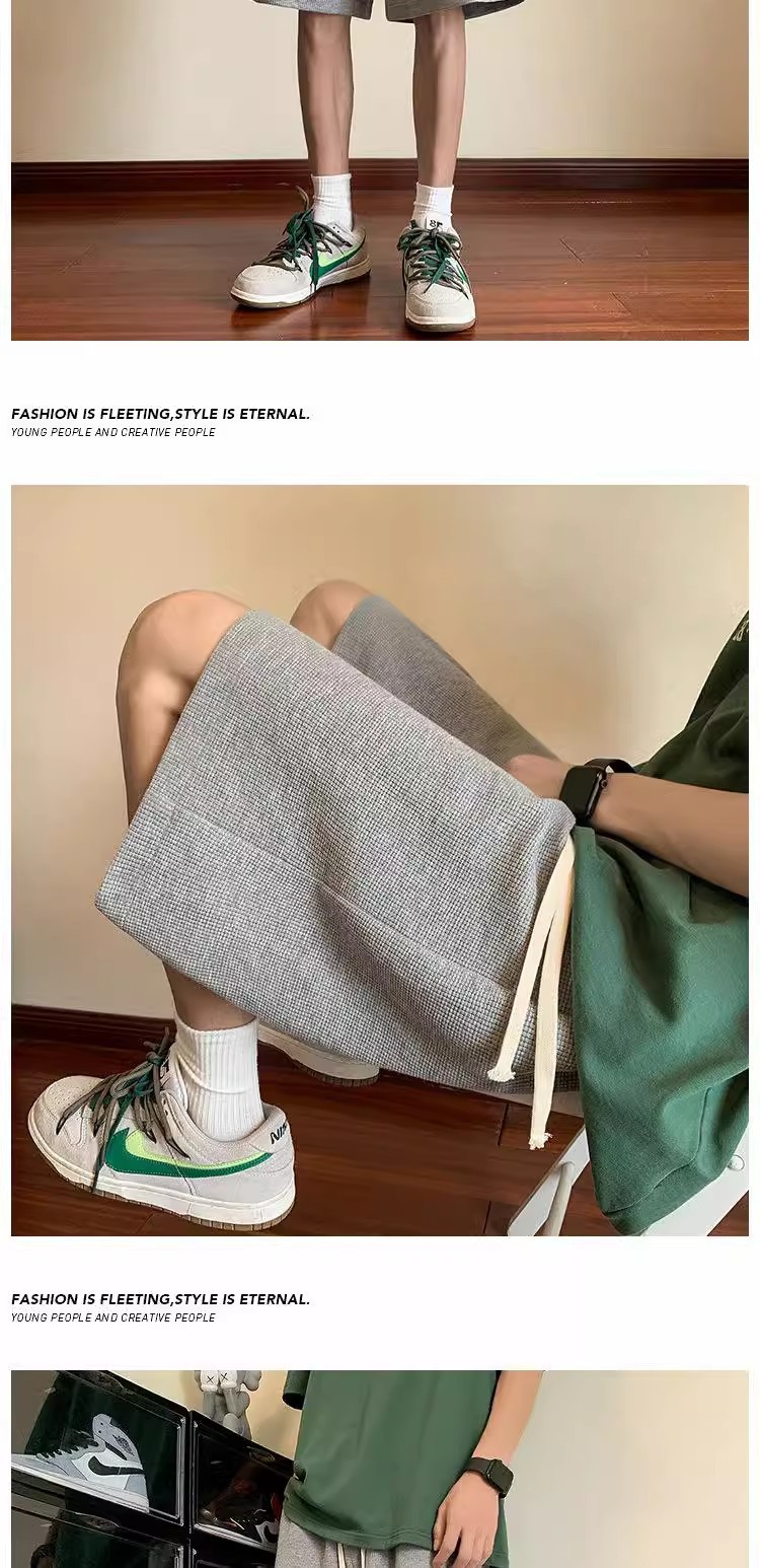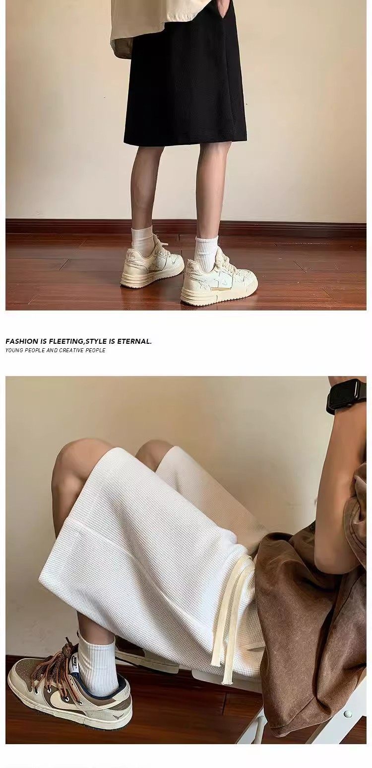 Вафли шорты мужские летние тонкие свободные спортивные штаны большого размера