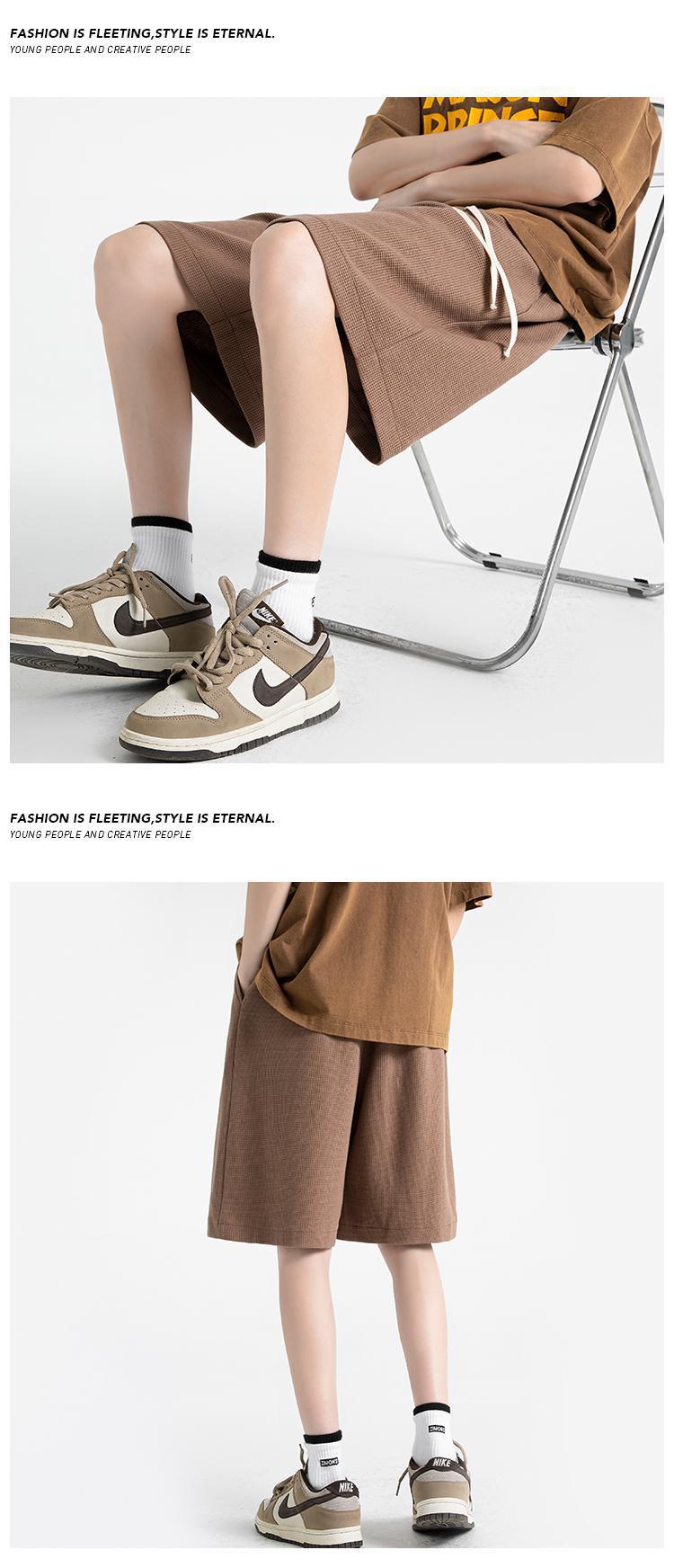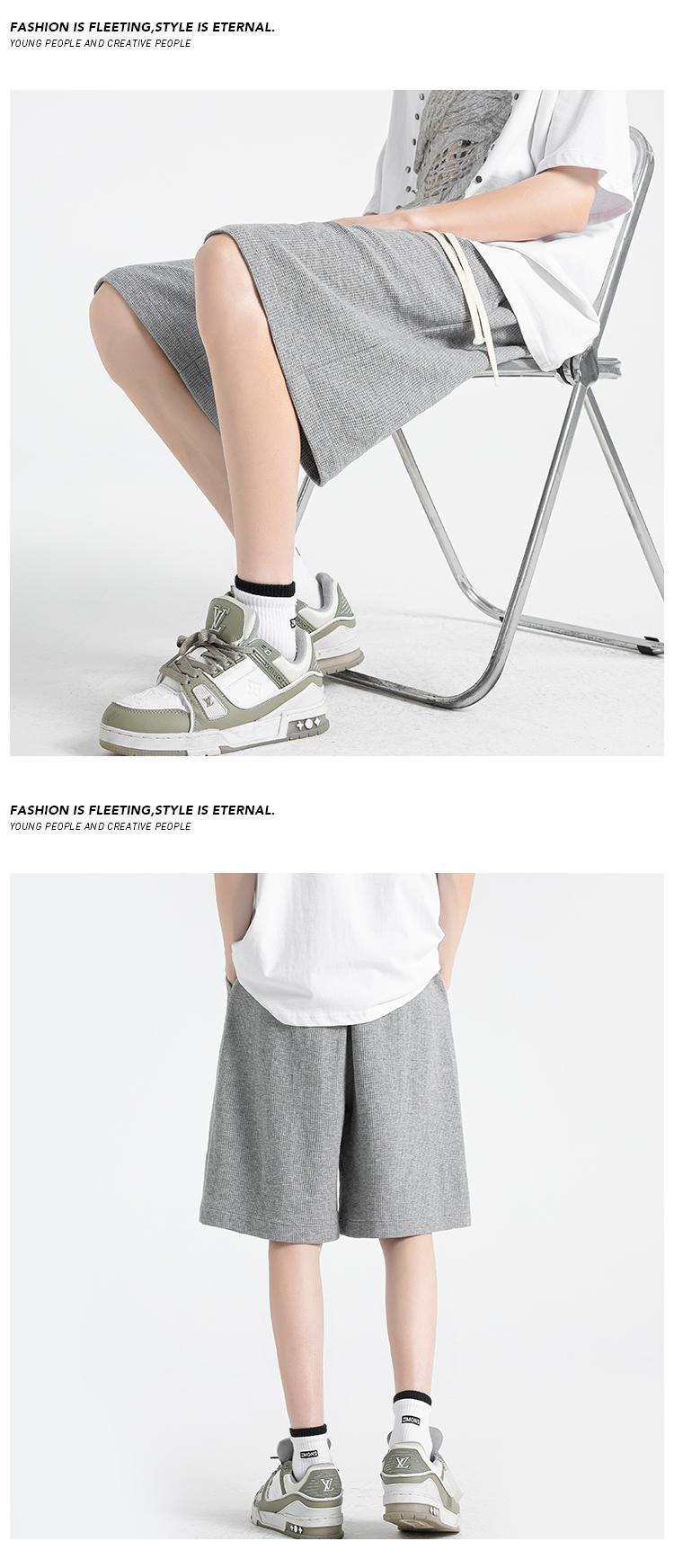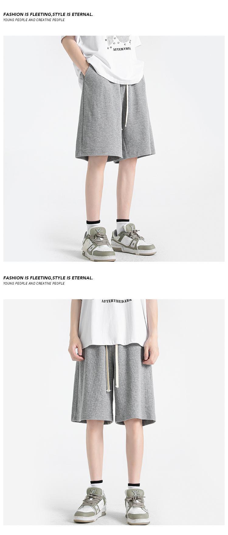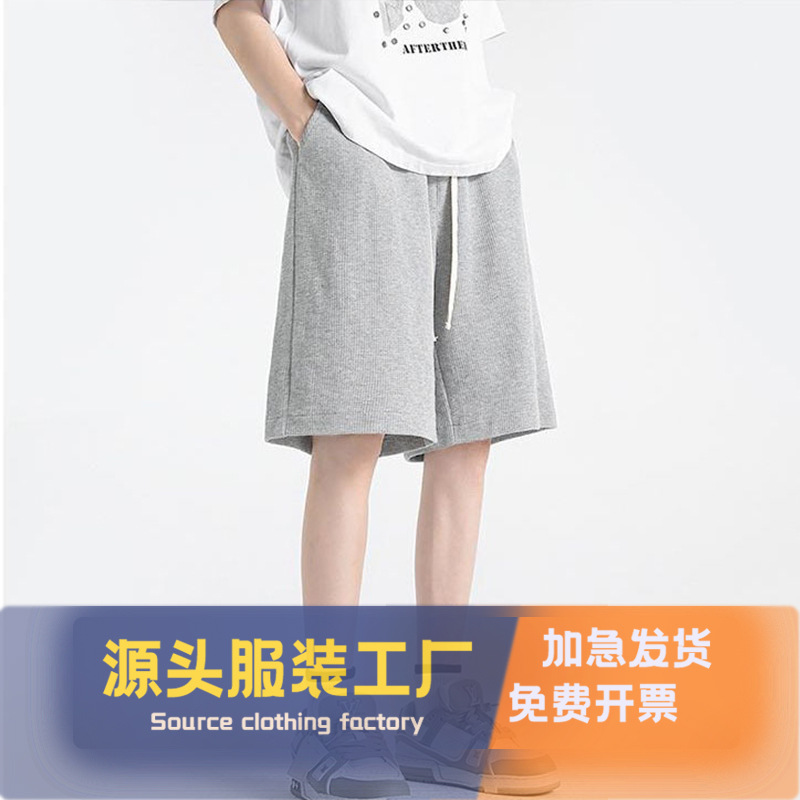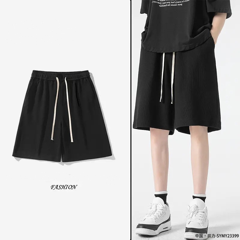 Мужские летние шорты-вафли, свободные однотонные спортивные брюки, большие размеры, тонкие, в гонконгском стиле, пятикарманные.