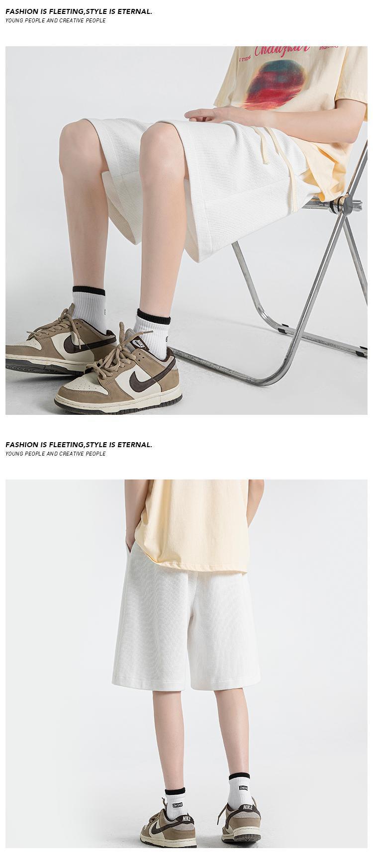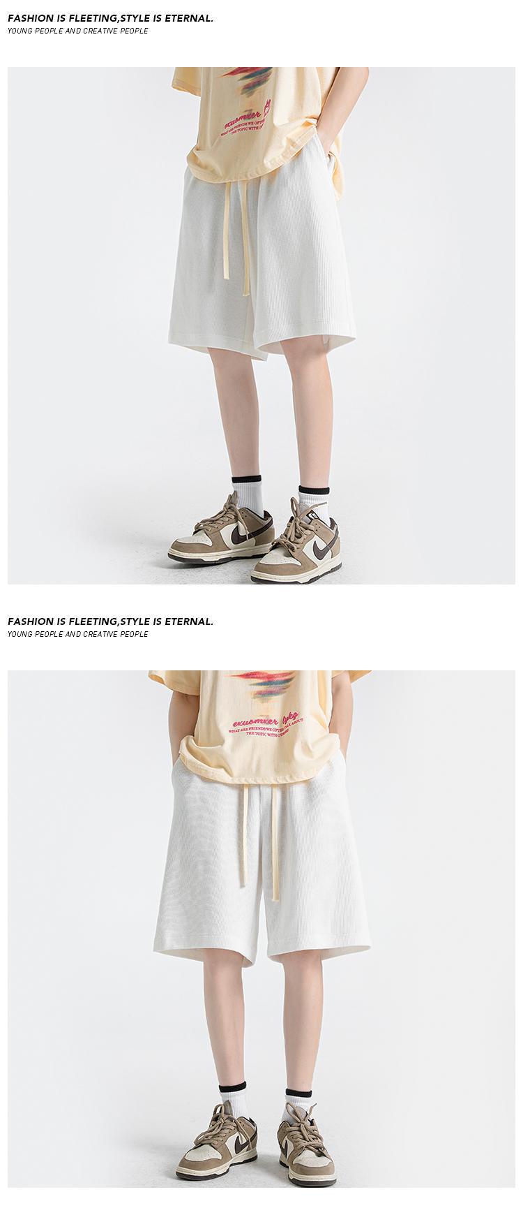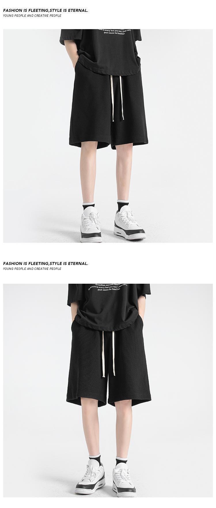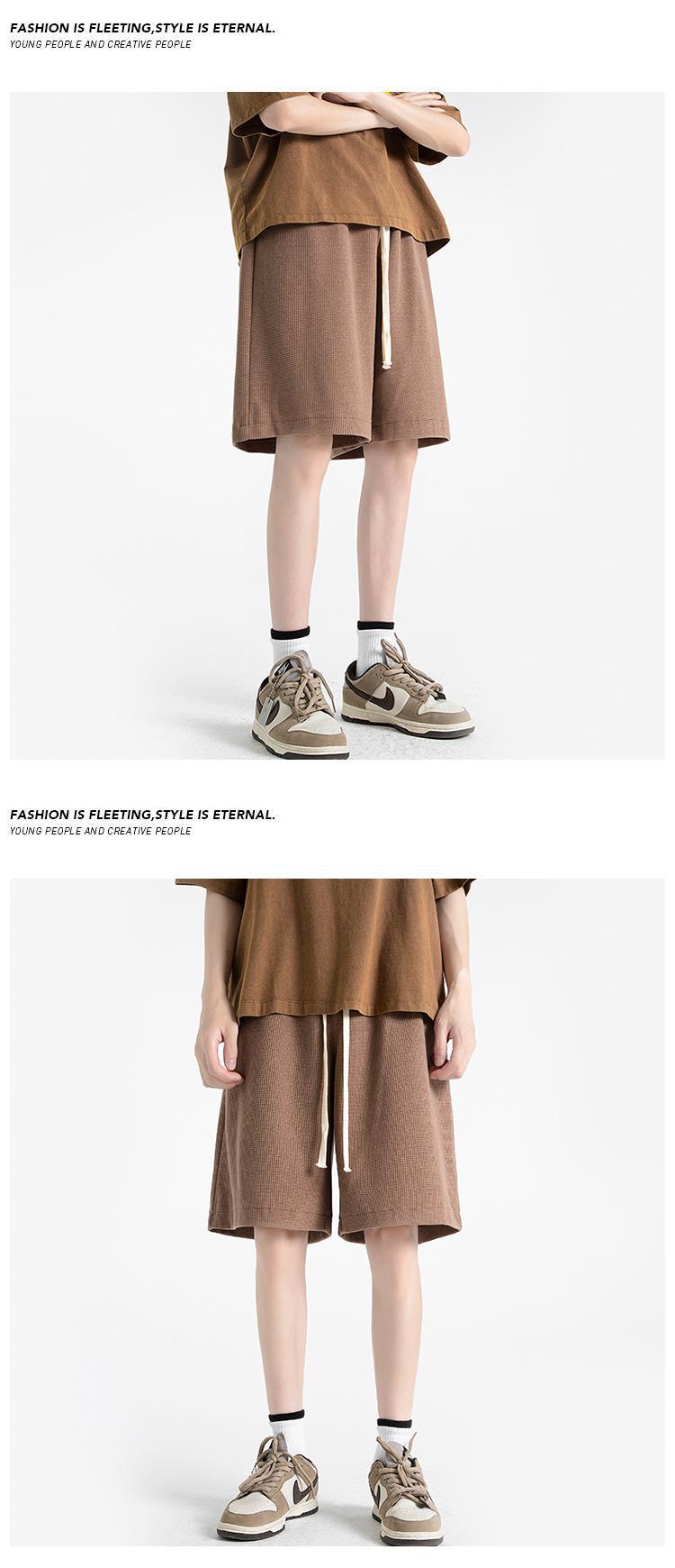 Мужские летние шорты-вафли, свободные однотонные спортивные брюки, большие размеры, тонкие, в гонконгском стиле, пятикарманные.