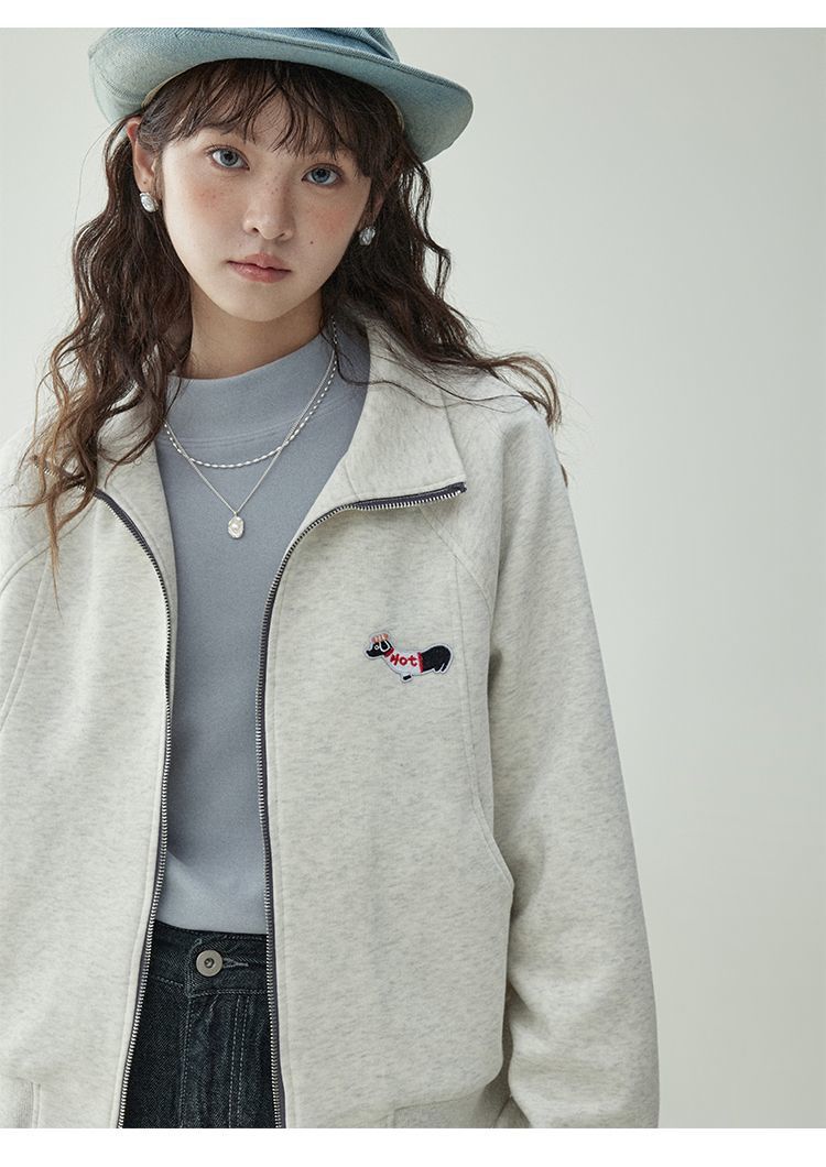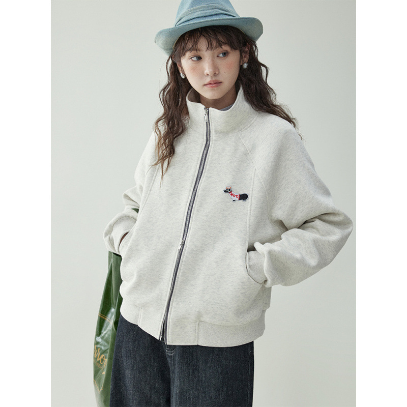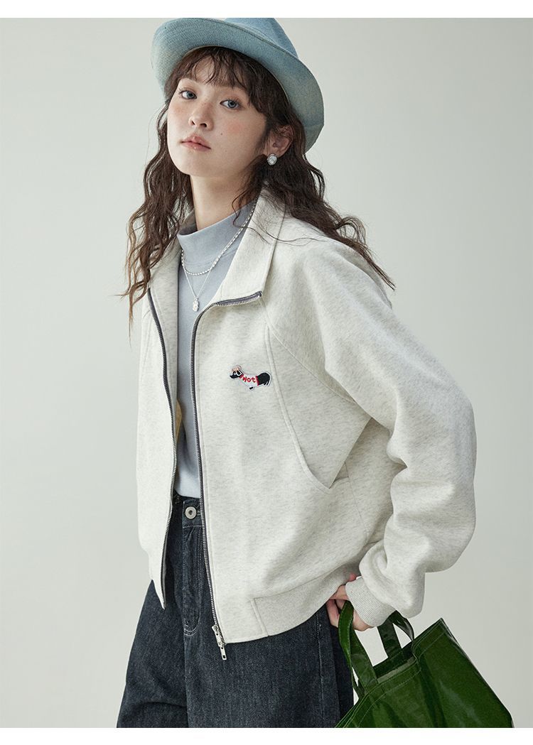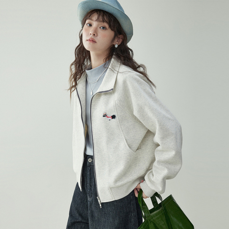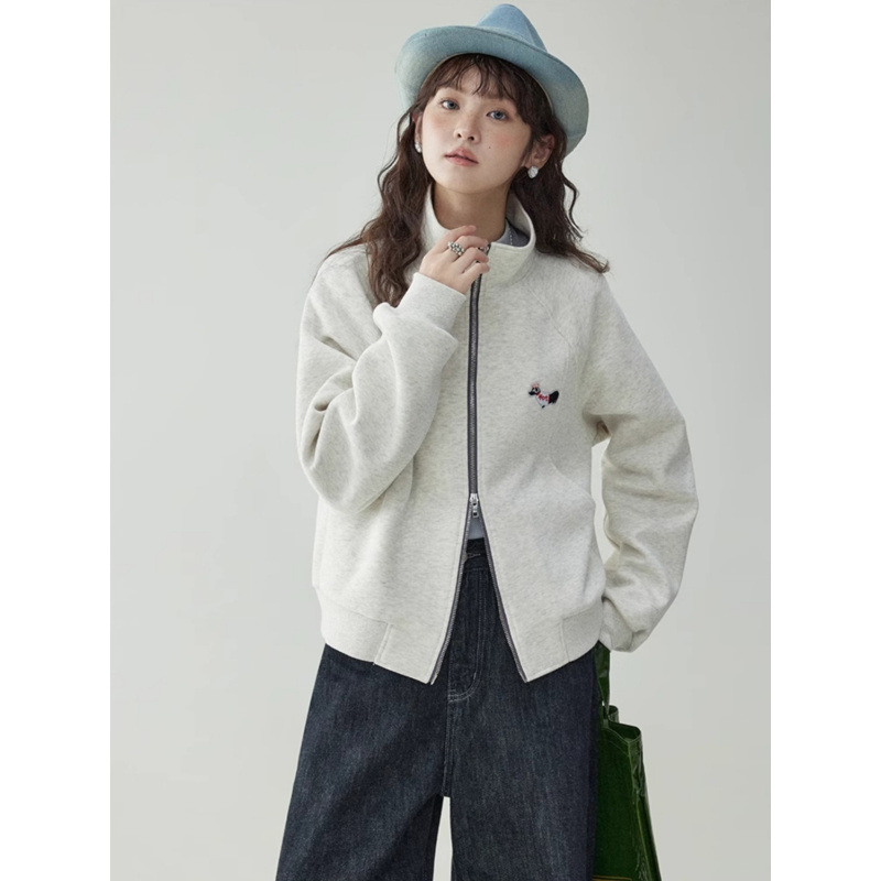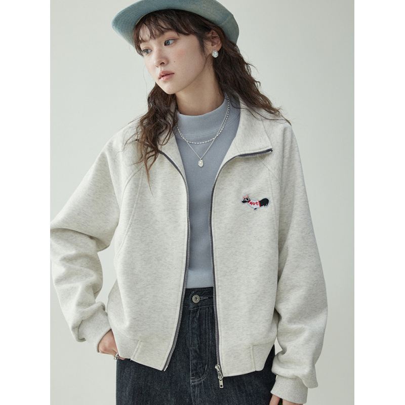 Щенки с вышивкой толстовка женская двойная куртка на молнии весной 2025 новый воротник кардиган повседневная рубашка с длинными рукавами