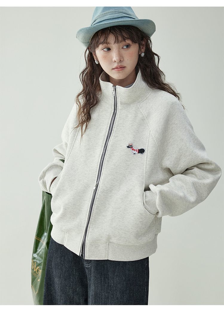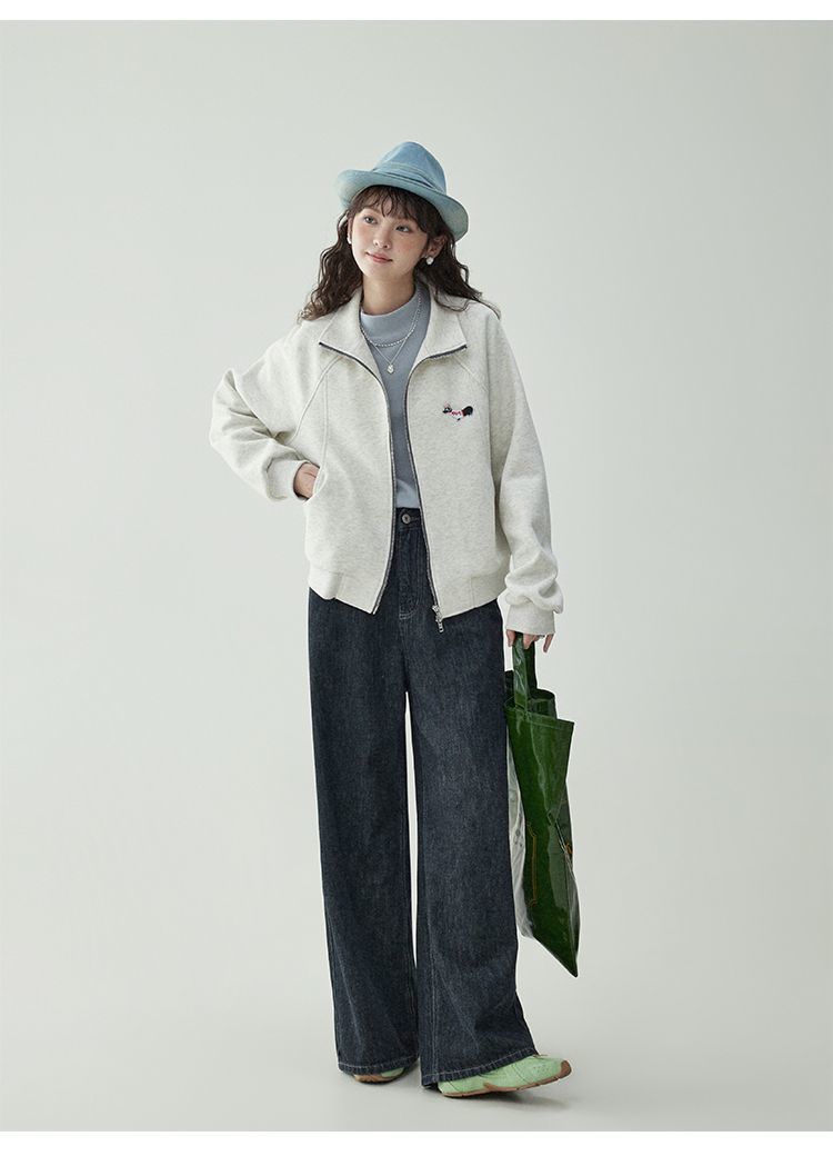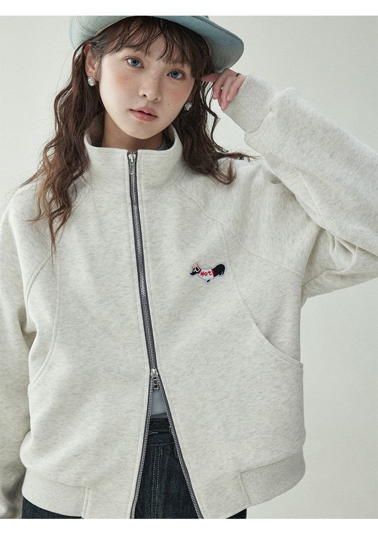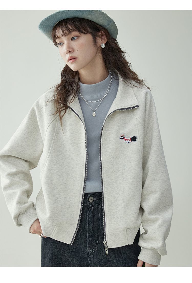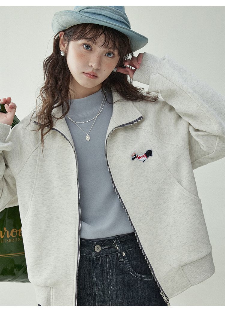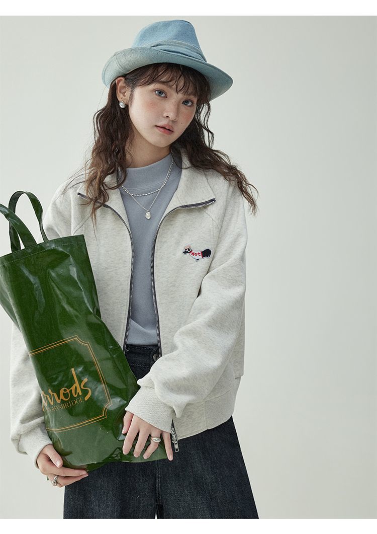 Щенки с вышивкой толстовка женская двойная куртка на молнии весной 2025 новый воротник кардиган повседневная рубашка с длинными рукавами
