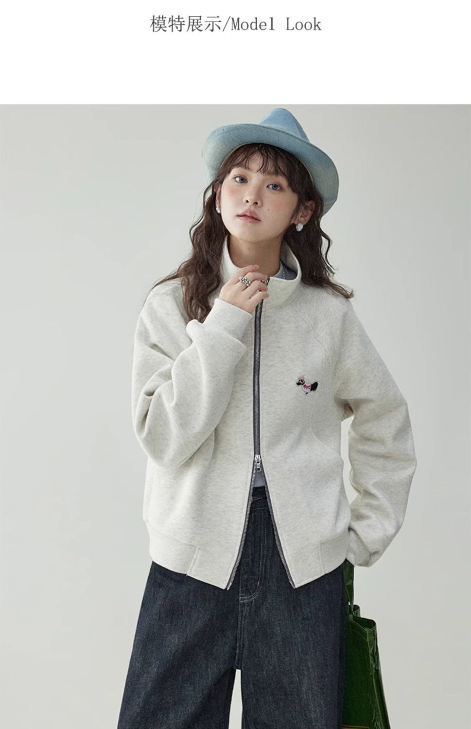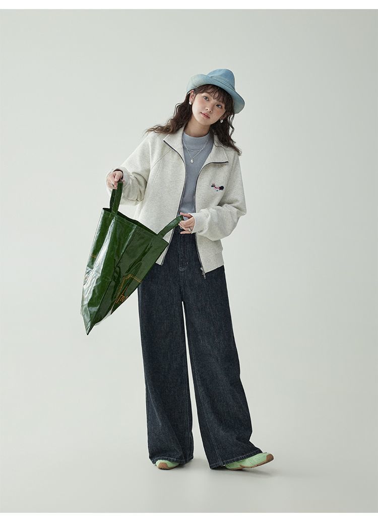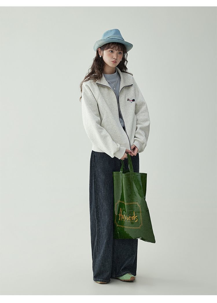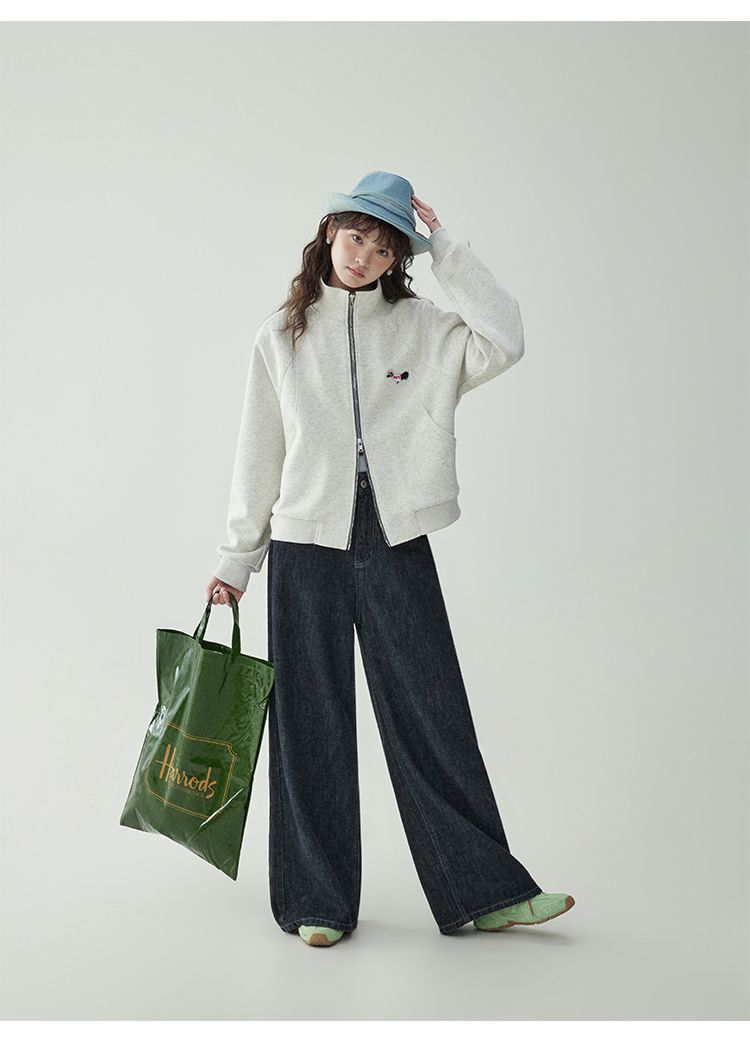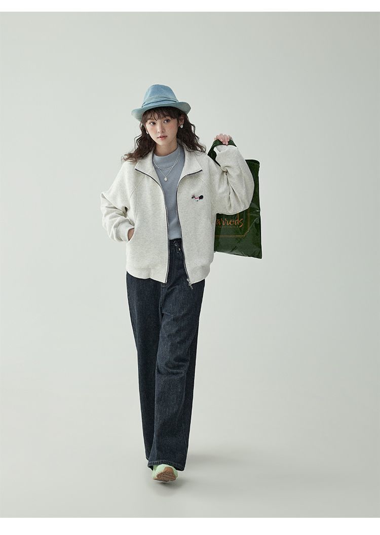 Щенки с вышивкой толстовка женская двойная куртка на молнии весной 2025 новый воротник кардиган повседневная рубашка с длинными рукавами