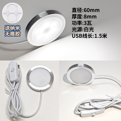 USB круглая ультратонкая лампа из алюминиевого сплава 5V низковольтный Алюминиевая 3D печатная модель Комплектующие Светодиодная лампа шкафа Винный шкаф Светильник