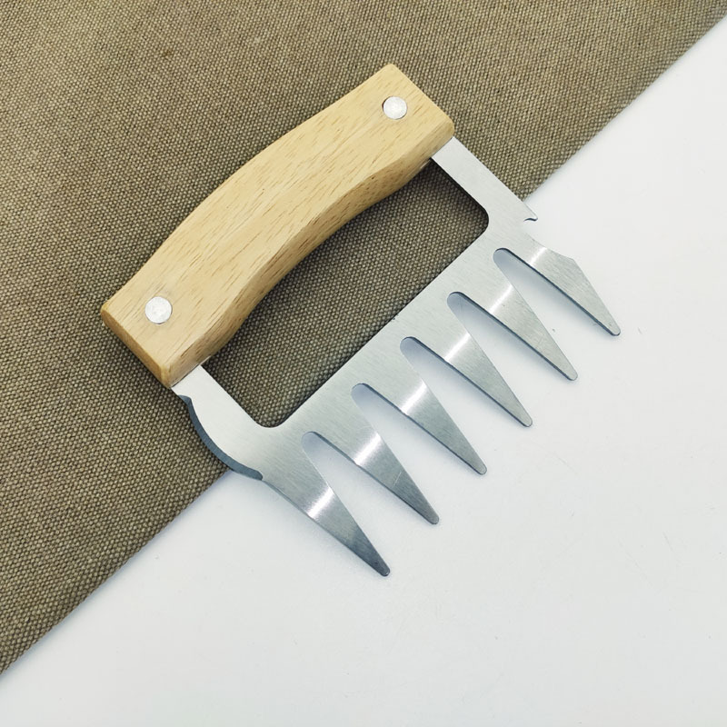 Разделитель мяса из нержавеющей стали, коготь для мяса, мощный коготь для мяса, магазин барбекю, магазин барбекю, изолированный разделитель мяса, деревянная ручка