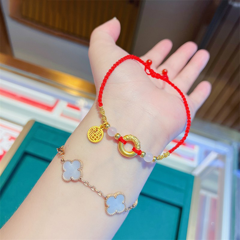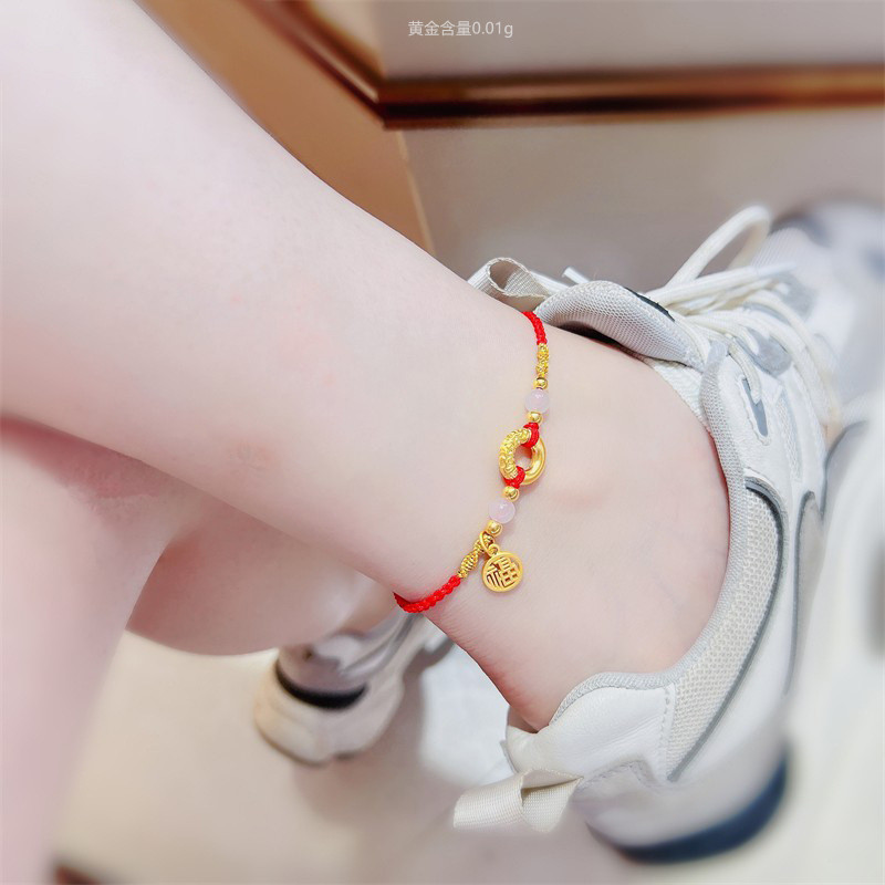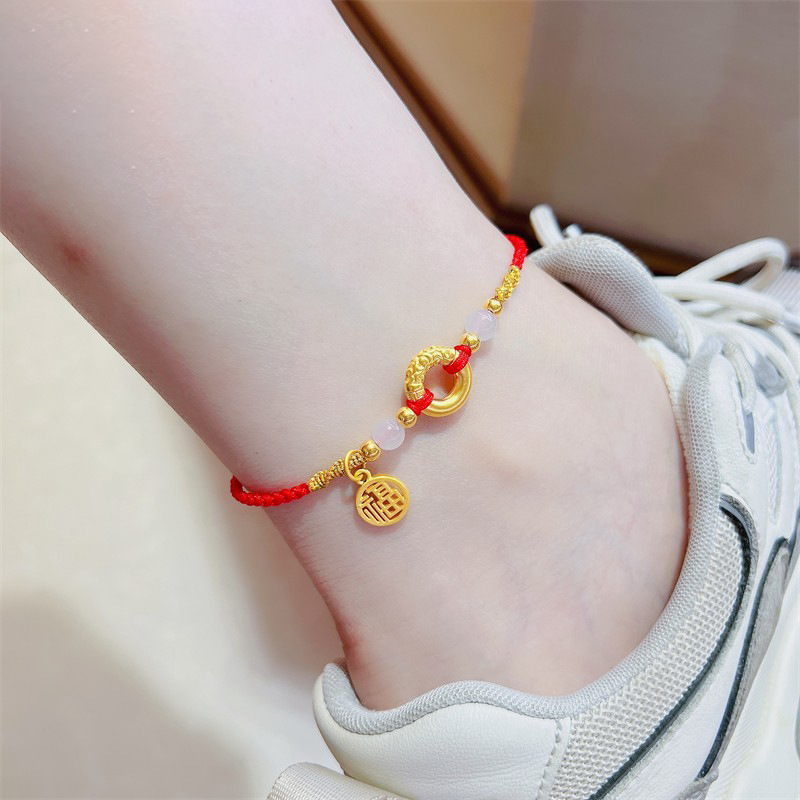 999 чистое золото пряжка ручной работы плетеный браслет на ногу новый бренд золота удачи браслет на ногу 24K чистое золото красный шнур украшения для ног