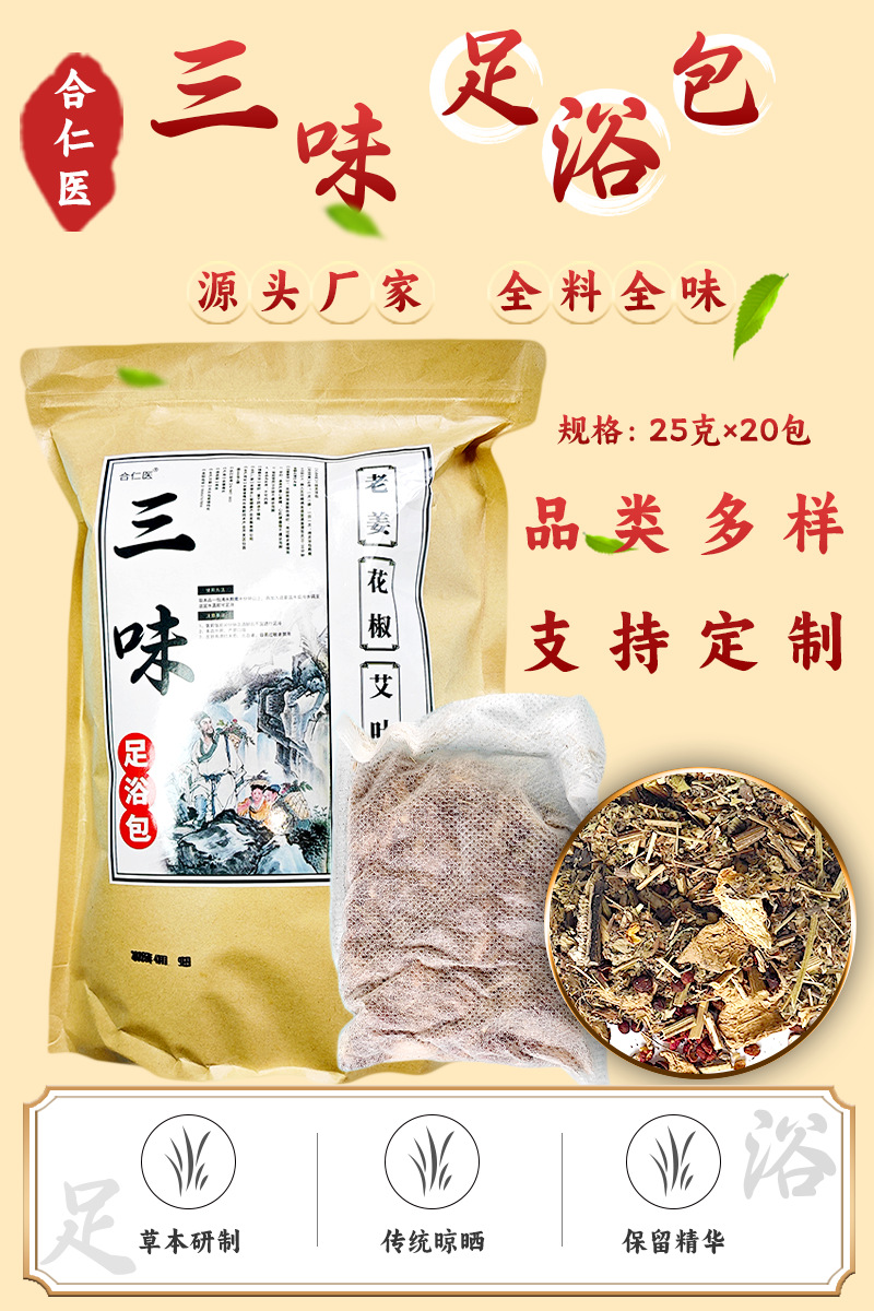 Мешочек для замачивания ног с сушеным имбирем, полынью, перцем и сушеным имбирем
