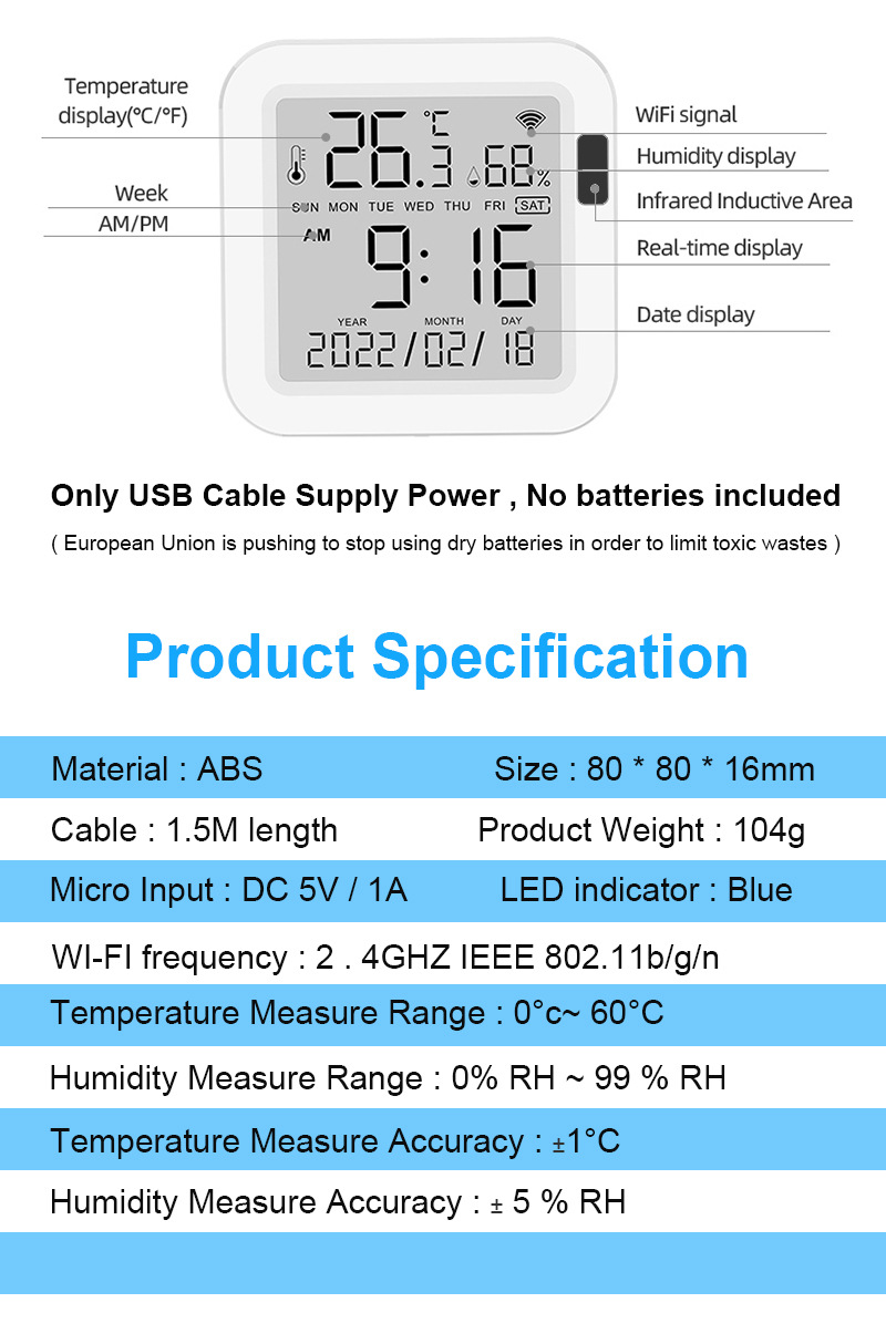 传感器连接APP(智能生活/TUYA智能),自动同步手机时间。家里有一个额外的时间显示。
