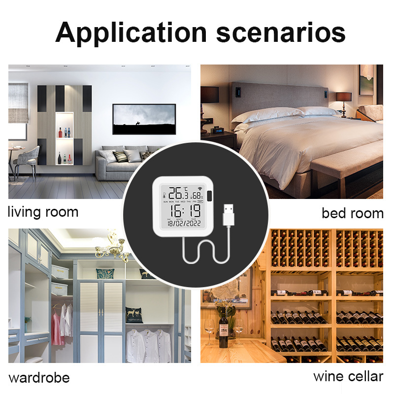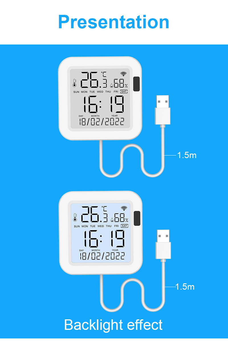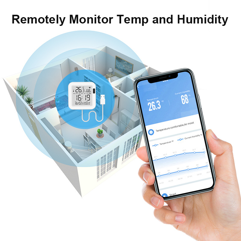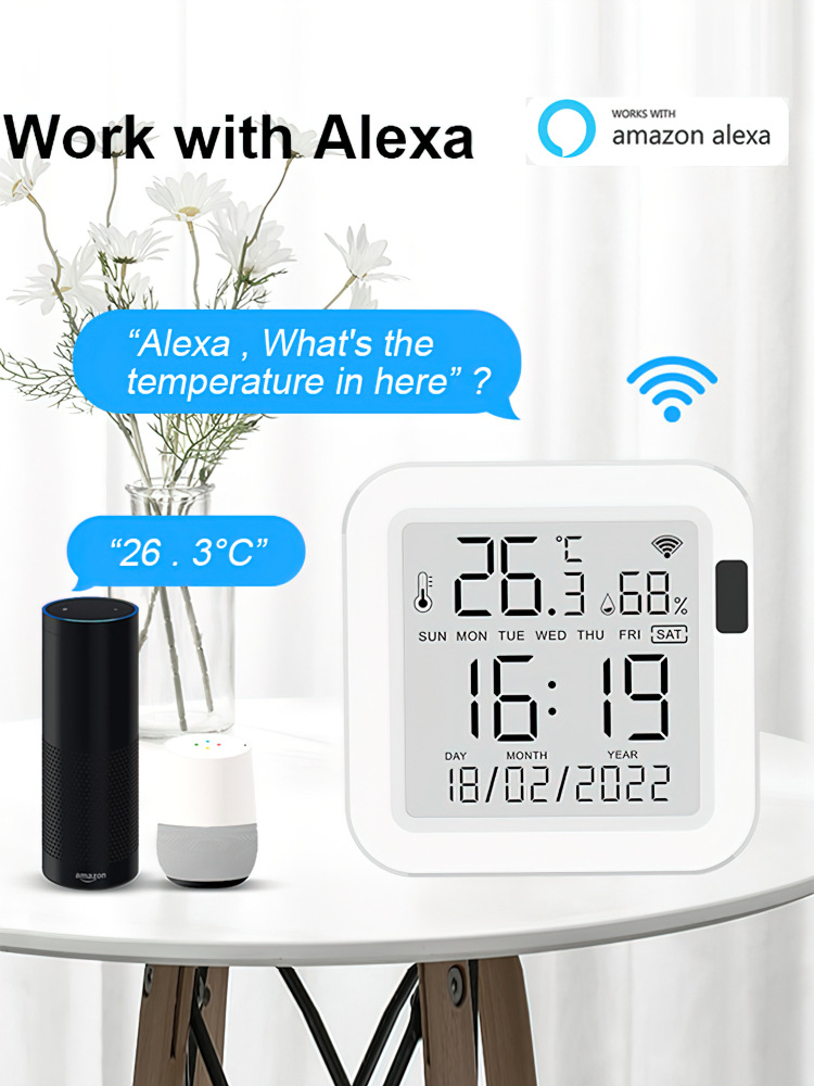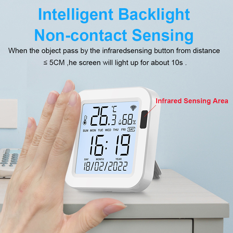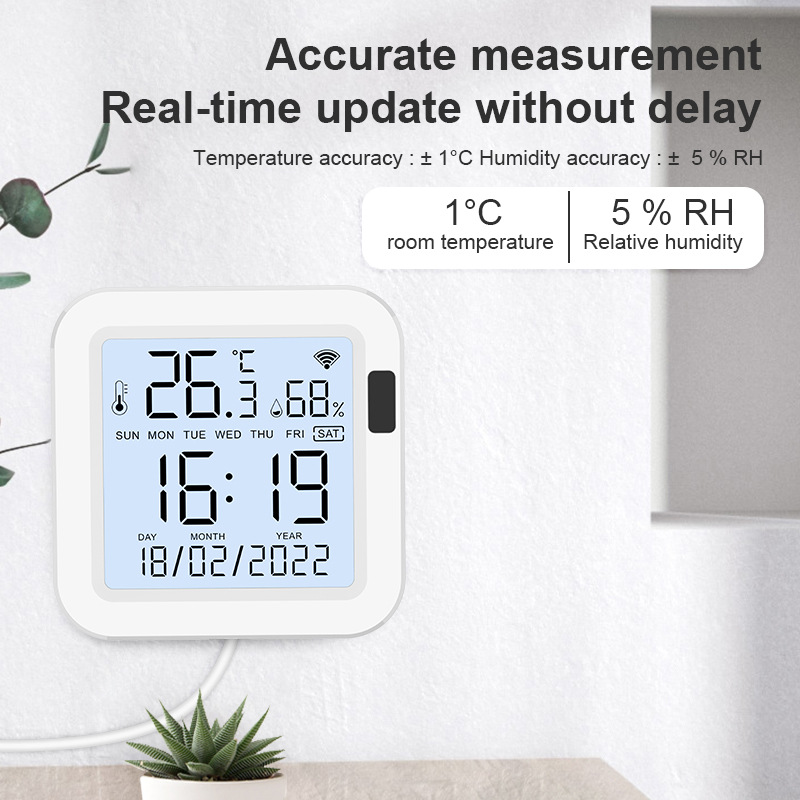Датчик температуры и влажности Tuya WiFi с подсветкой, 24-часовая система
