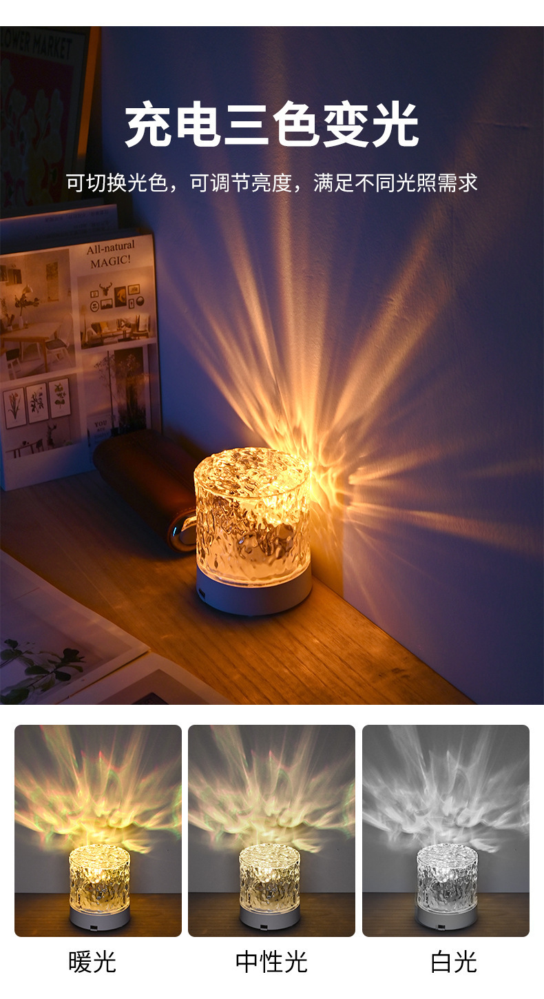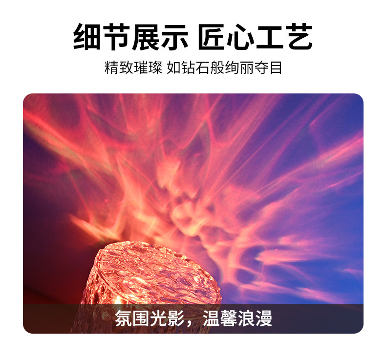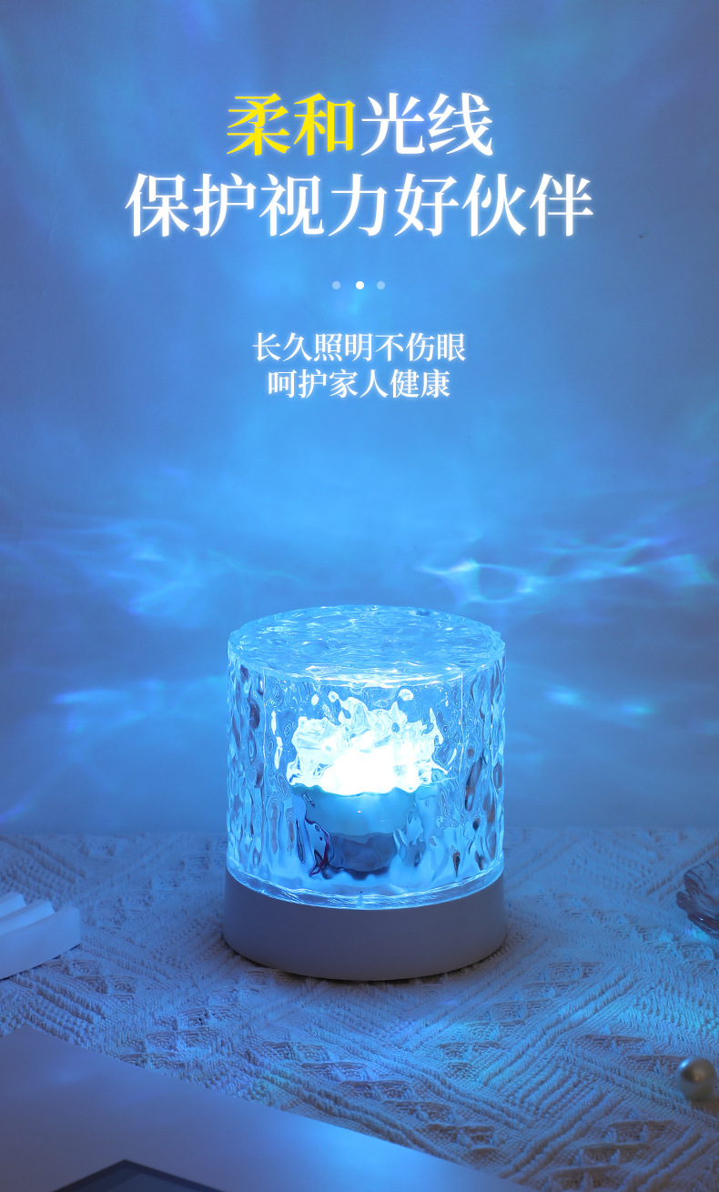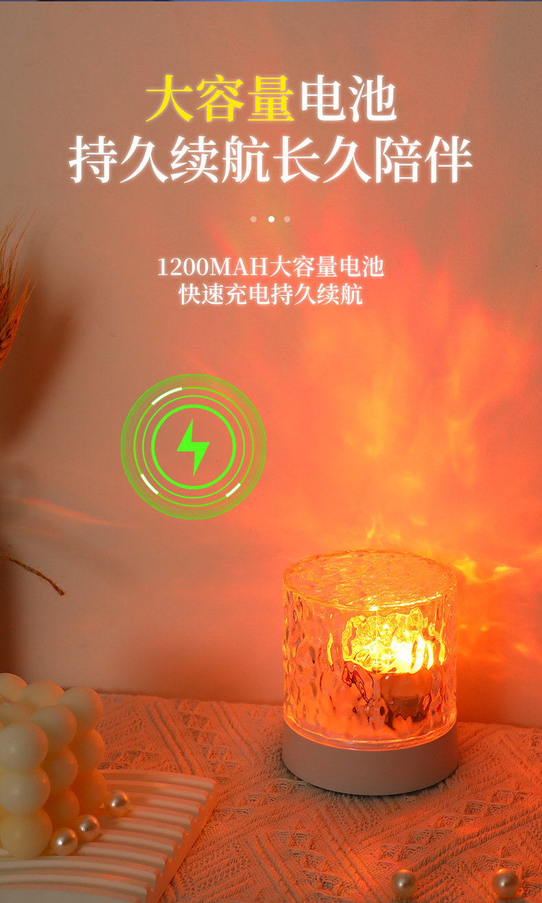 Водная рябь, аврора, пламя, проекционная лампа, атмосфера, прикроватный ночник для спальни, креативное настроение, подарок для пары