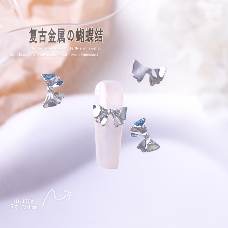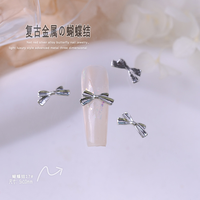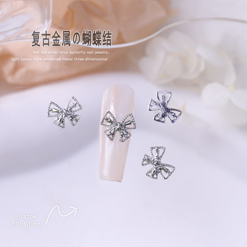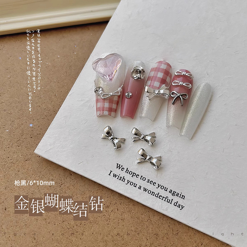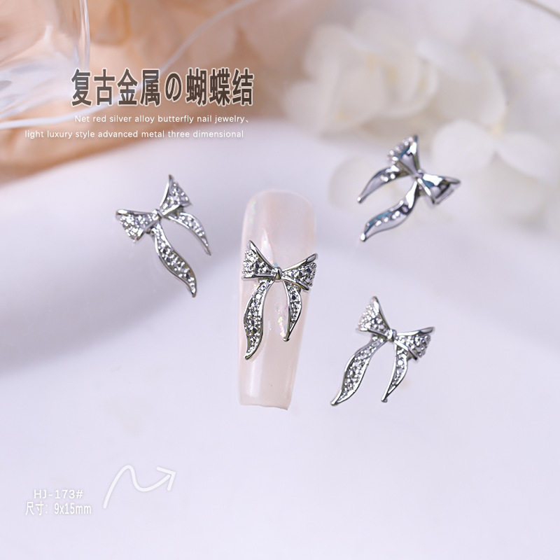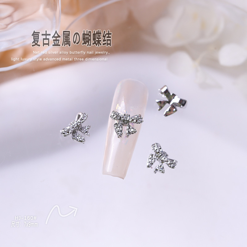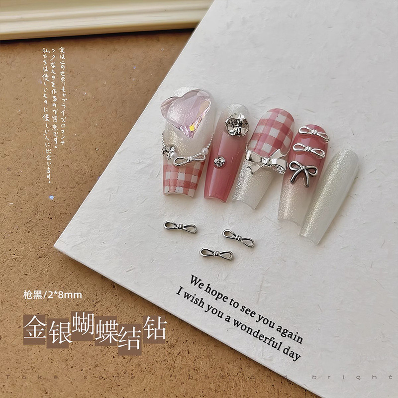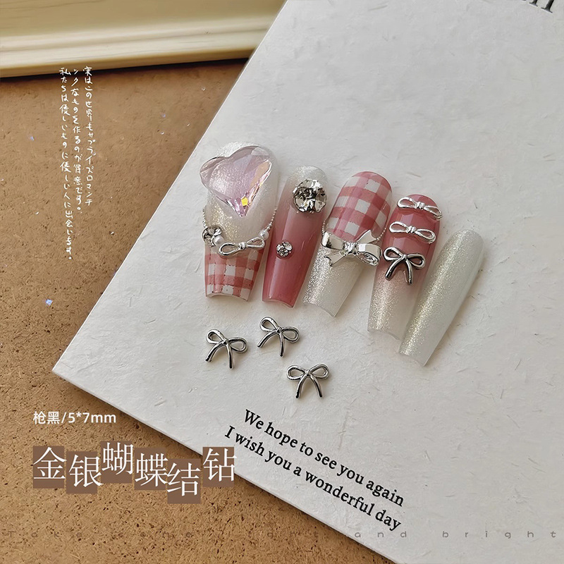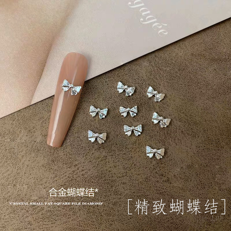 Мини-бантик для дизайна ногтей со стразами, модный милый бантик в форме сердца, металлический сплав, носимые аксессуары для ногтей