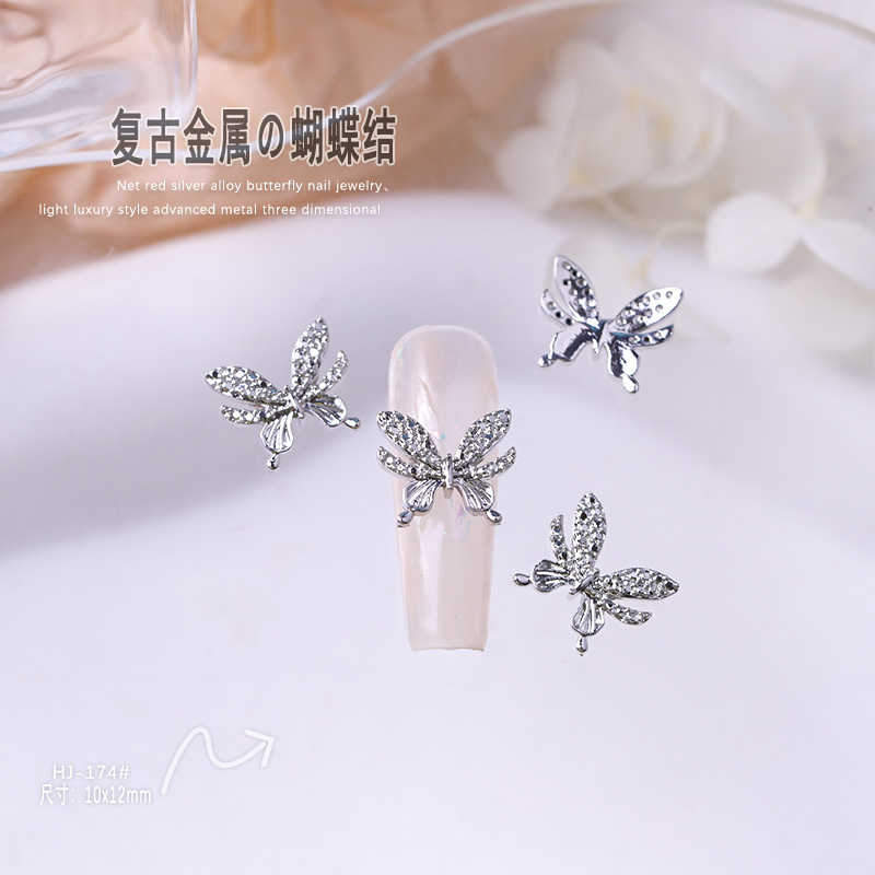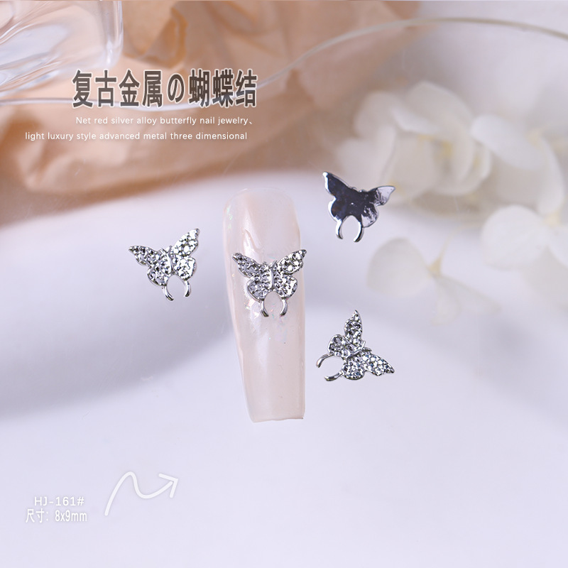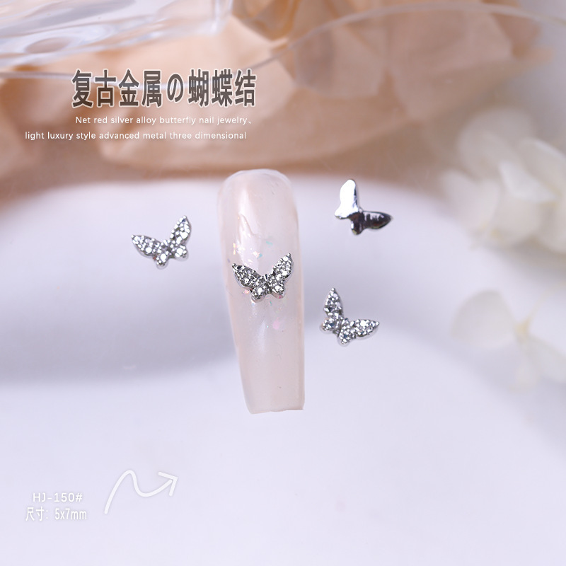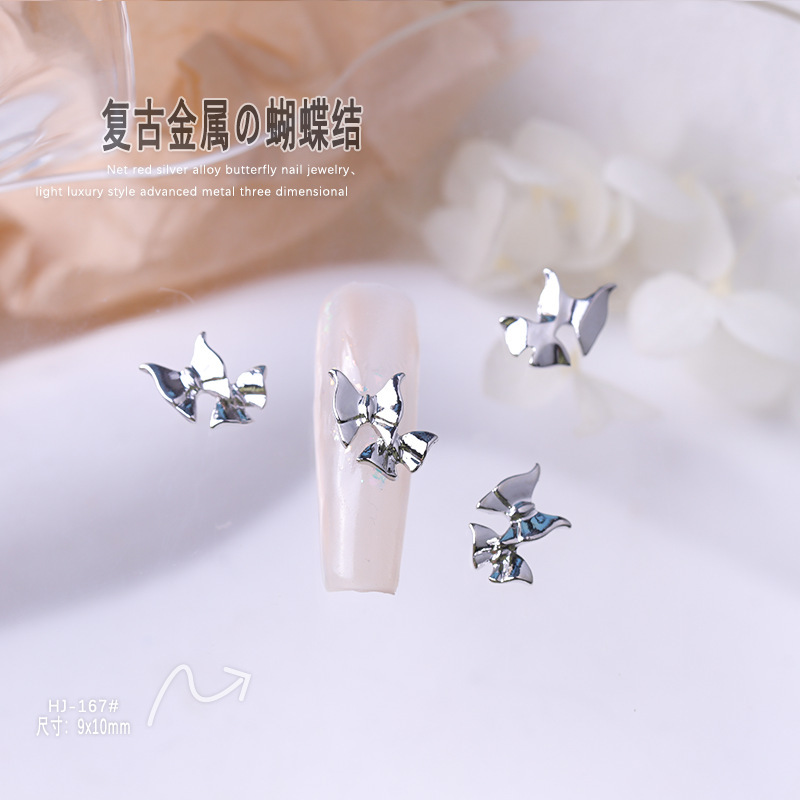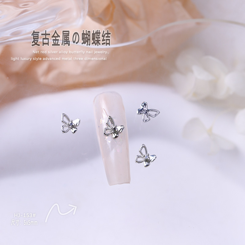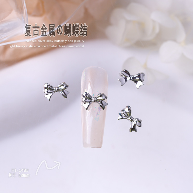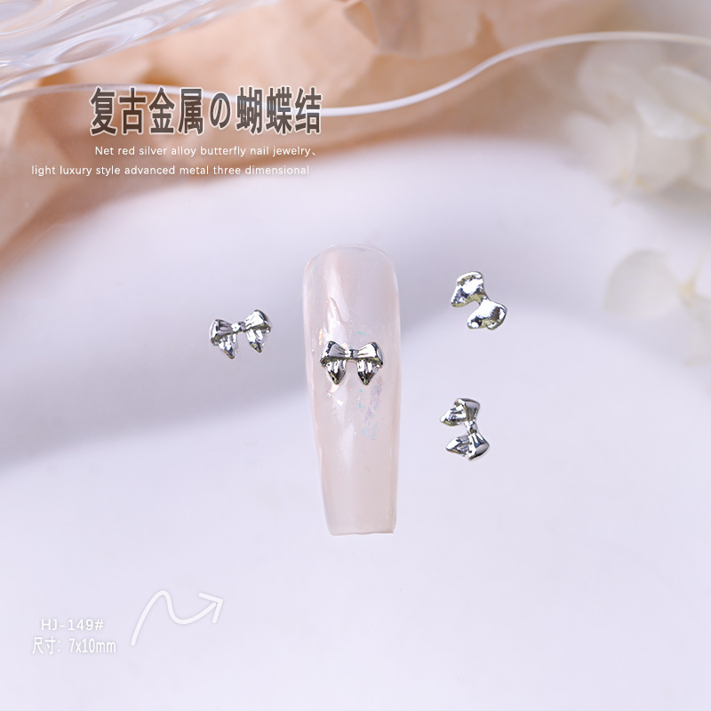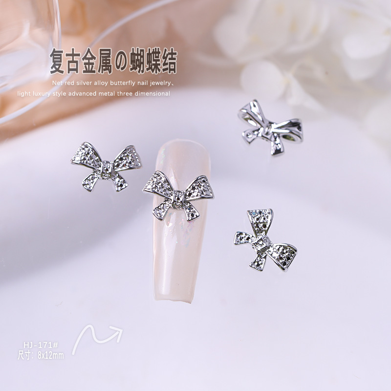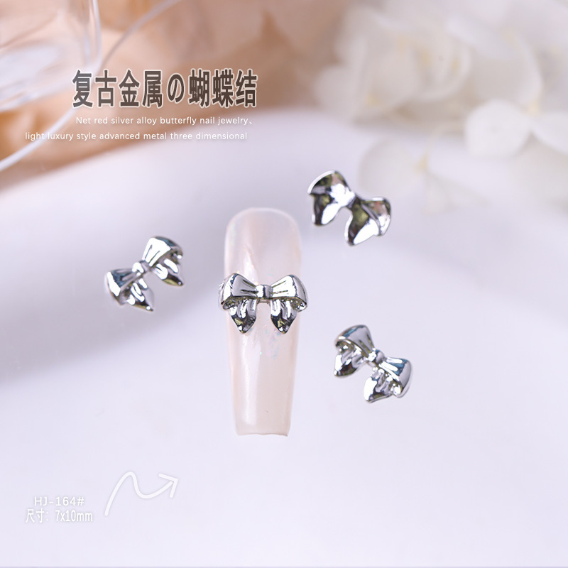 Мини-бантик для дизайна ногтей со стразами, модный милый бантик в форме сердца, металлический сплав, носимые аксессуары для ногтей