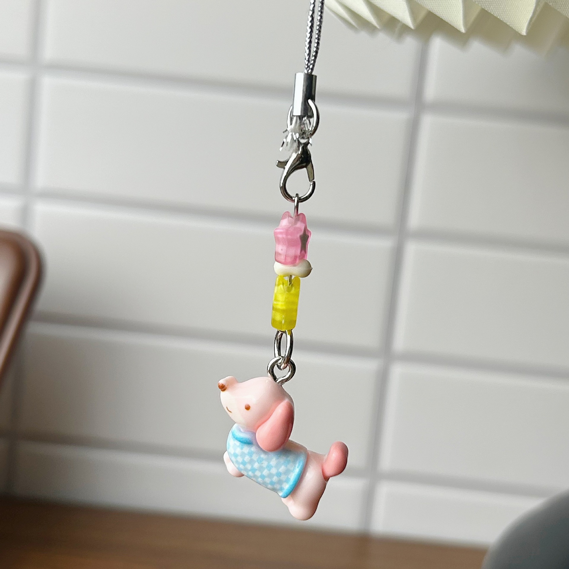 Цепочка для мобильного телефона в синюю клетку-таксу; Цепочка для мобильного телефона в виде пурпурной клетки-таксы; Цепочка для мобильного телефона в розовую клетку-таксу; Зеленая цепочка для мобильного телефона в клетку-такса