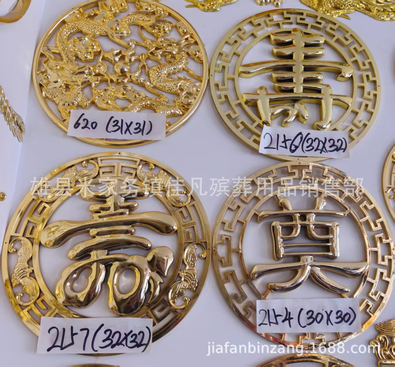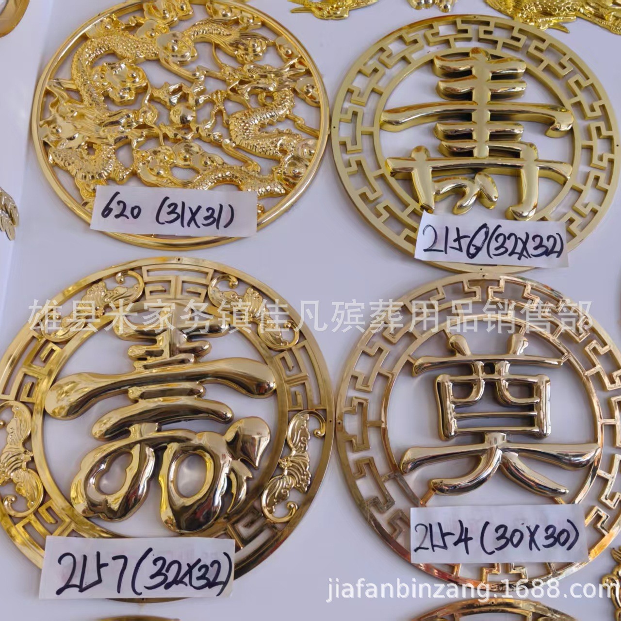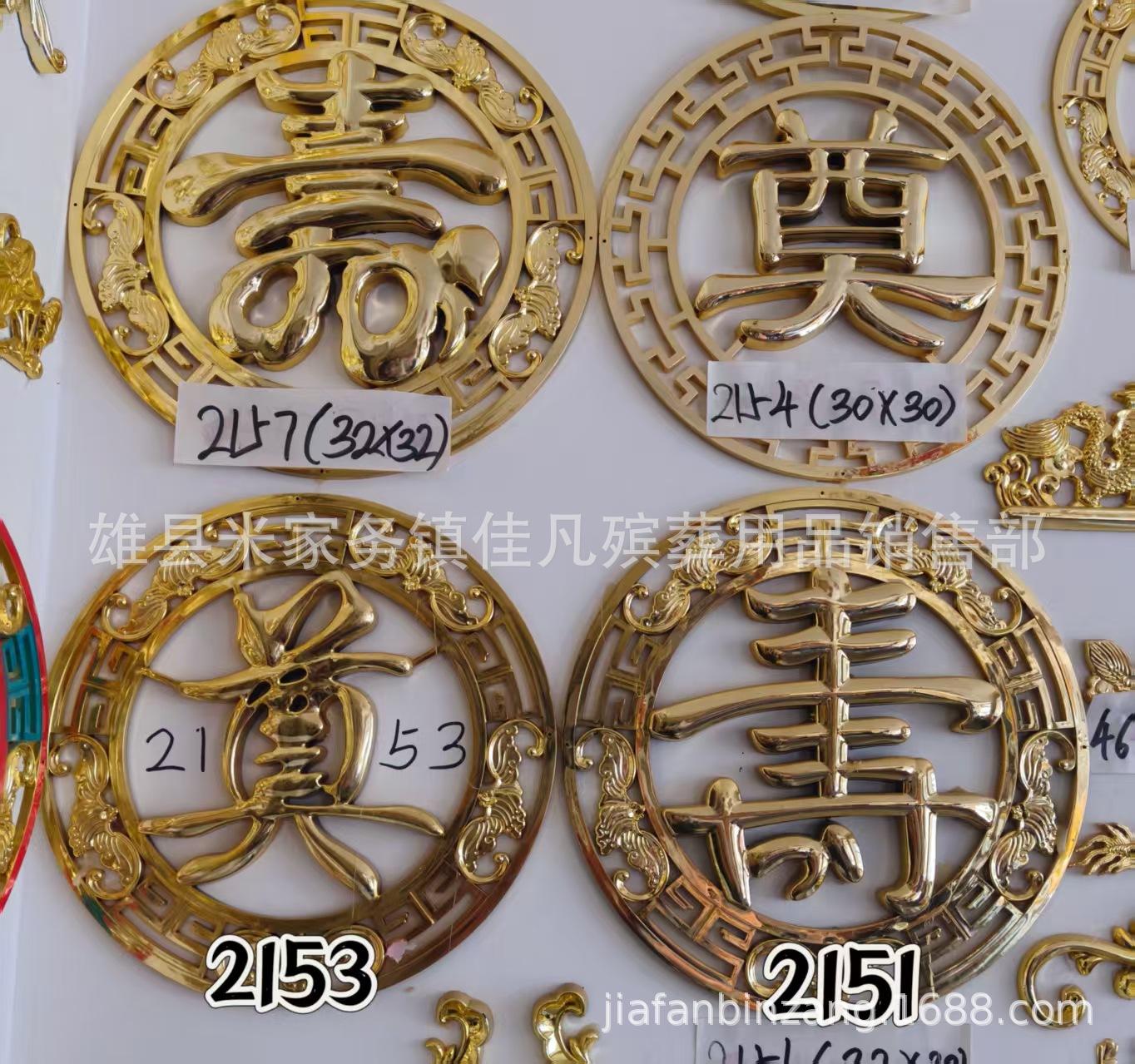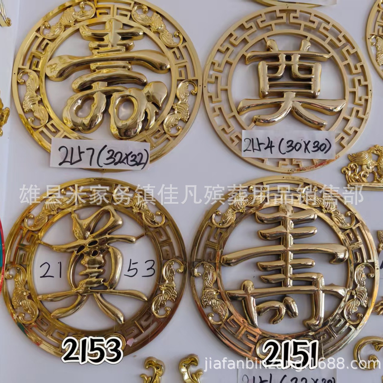 Украшения для гроба, двойной круг, надпись, символ долголетия, похоронные принадлежности, пластиковые позолоченные украшения изголовья Jiawan Funeral.
