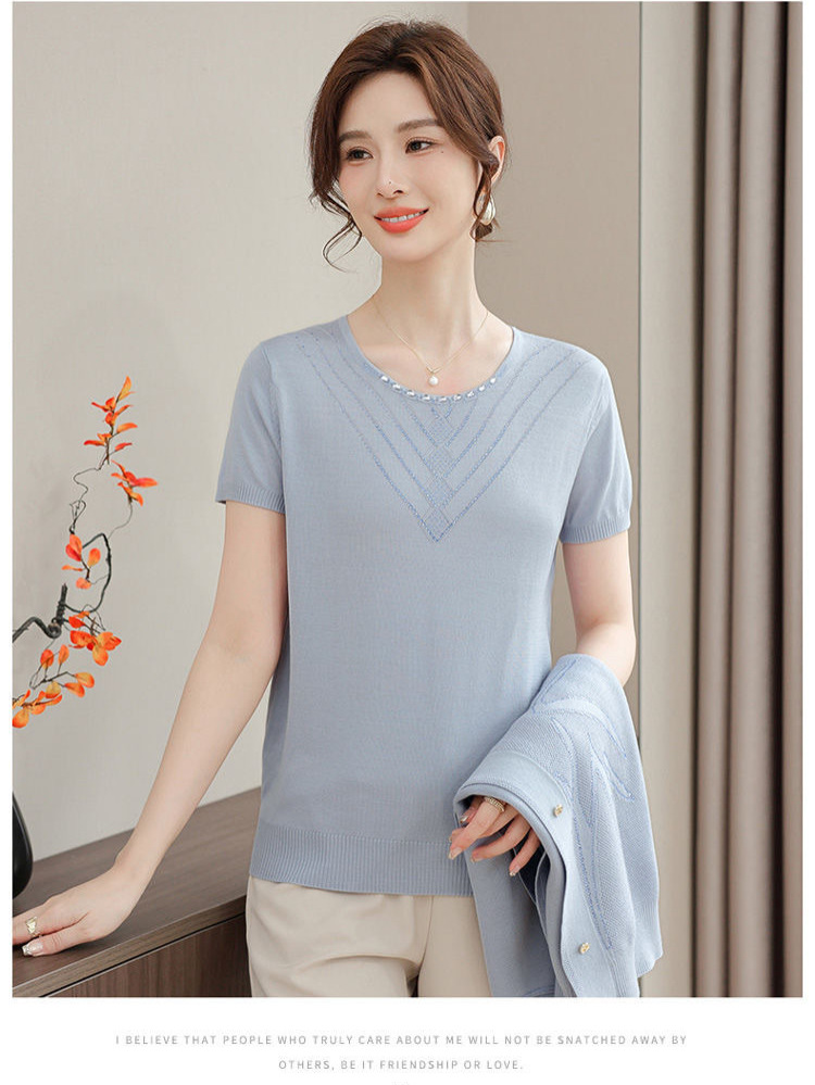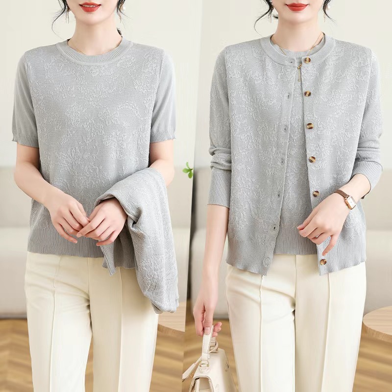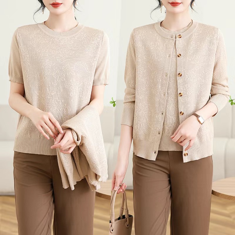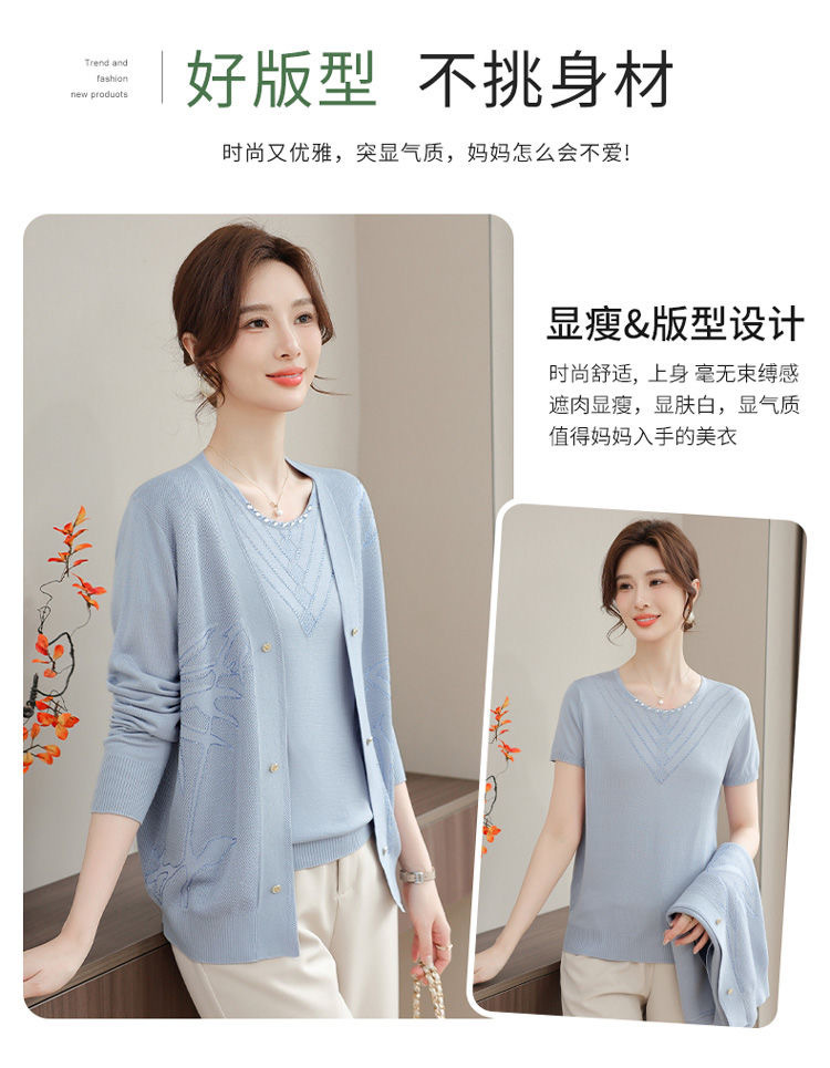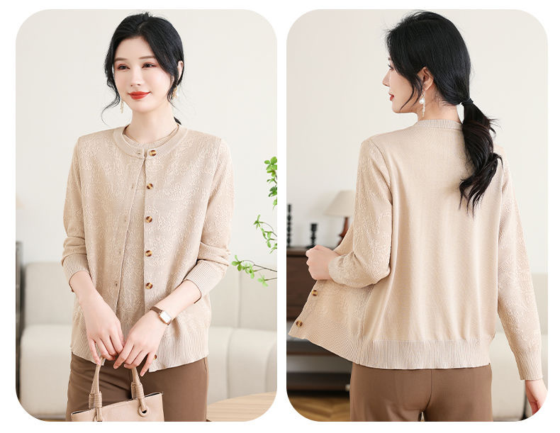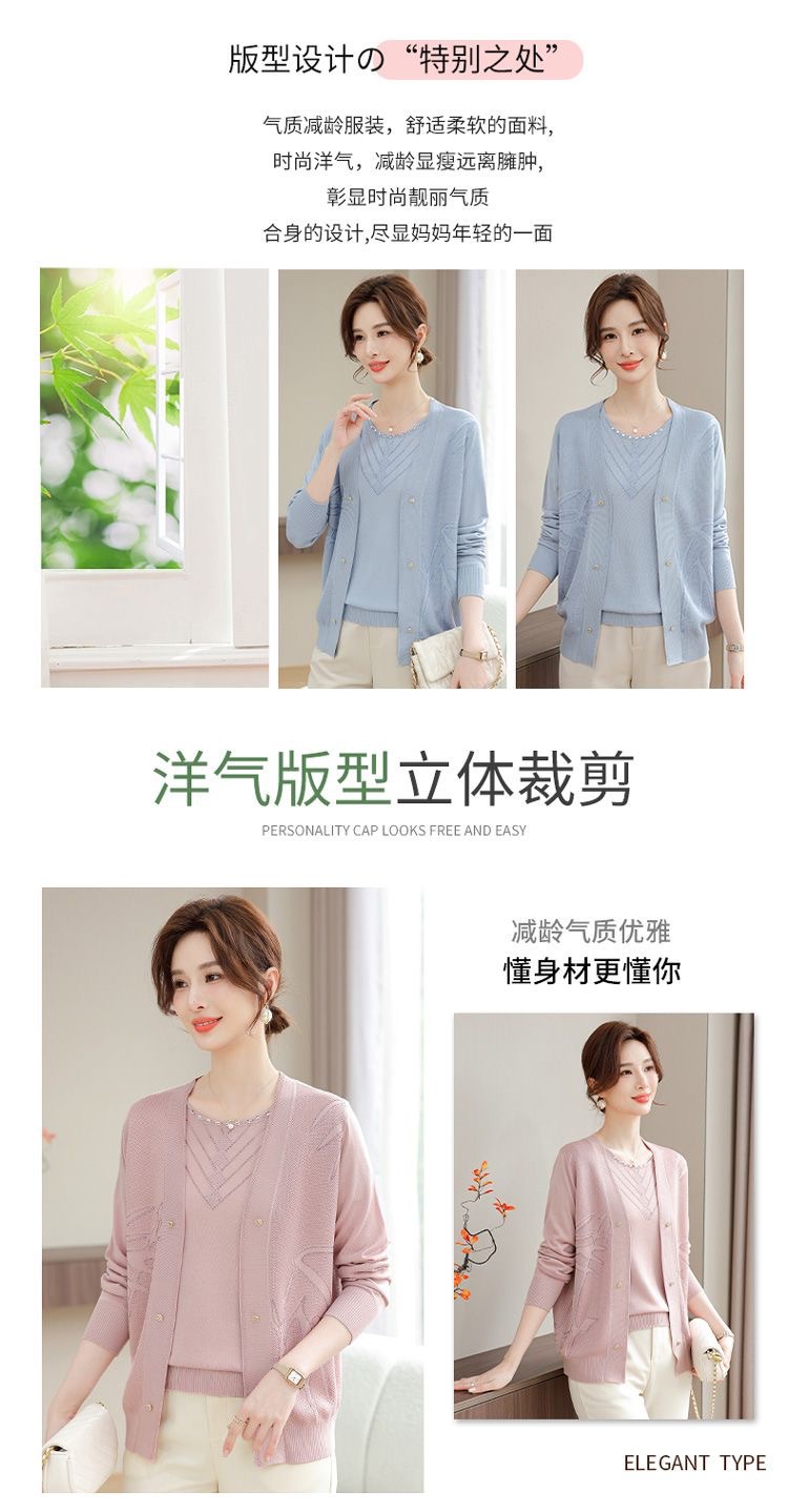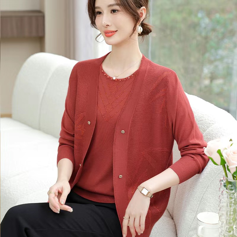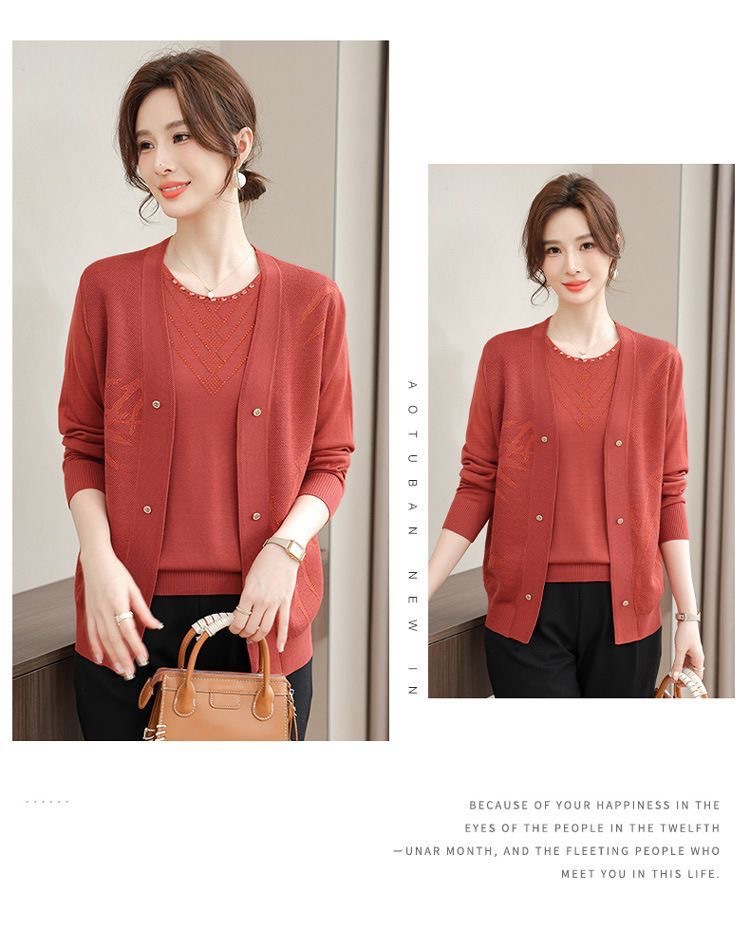 Весенний комплект одежды для новоиспеченной мамы: топ и кардиган для женщин среднего возраста, вязаный костюм в западном стиле, одежда для свекрови.