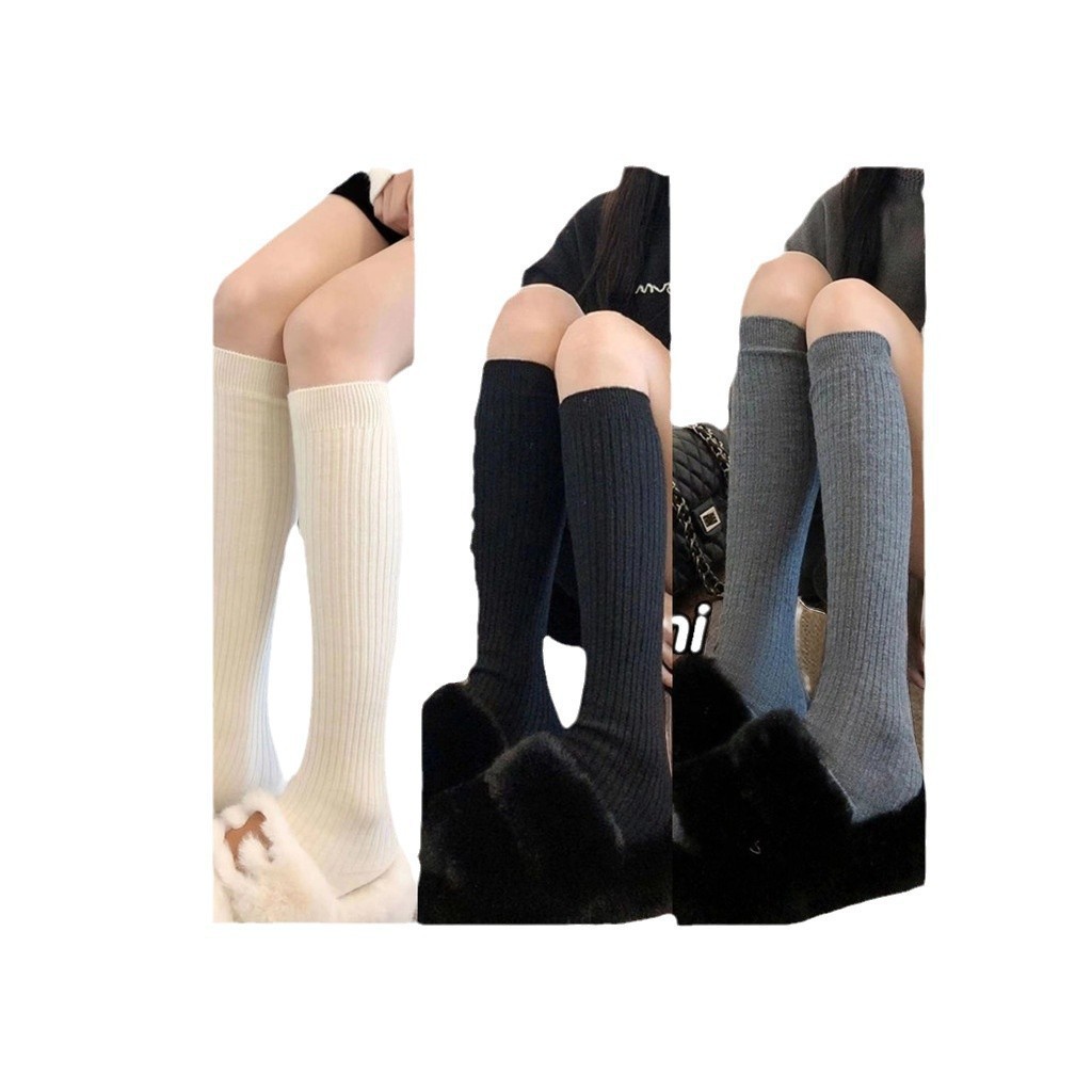 Ранневесенние бархатные белые носки до колена для женщин, утепленные теплые белые чулки, серые носки выше колена, шерстяные носки до середины икры