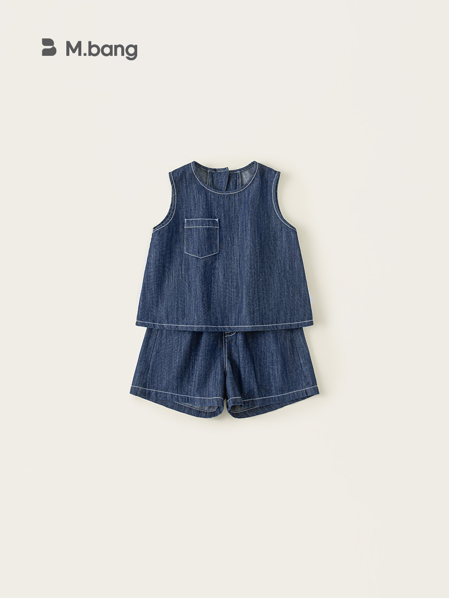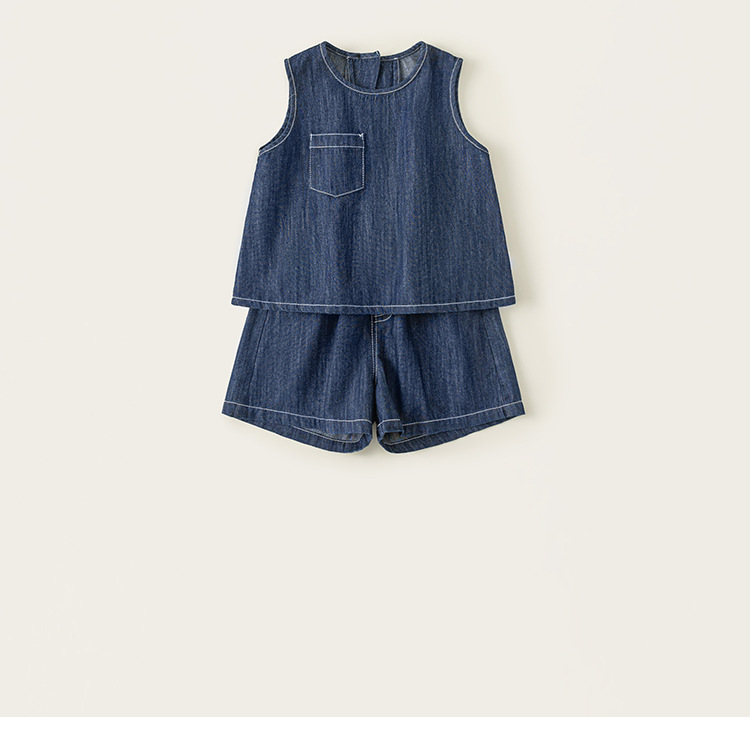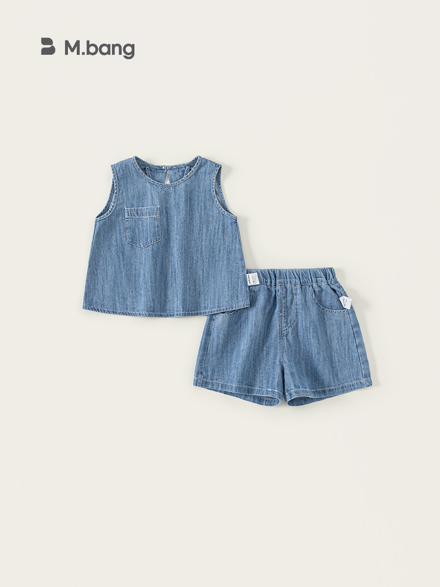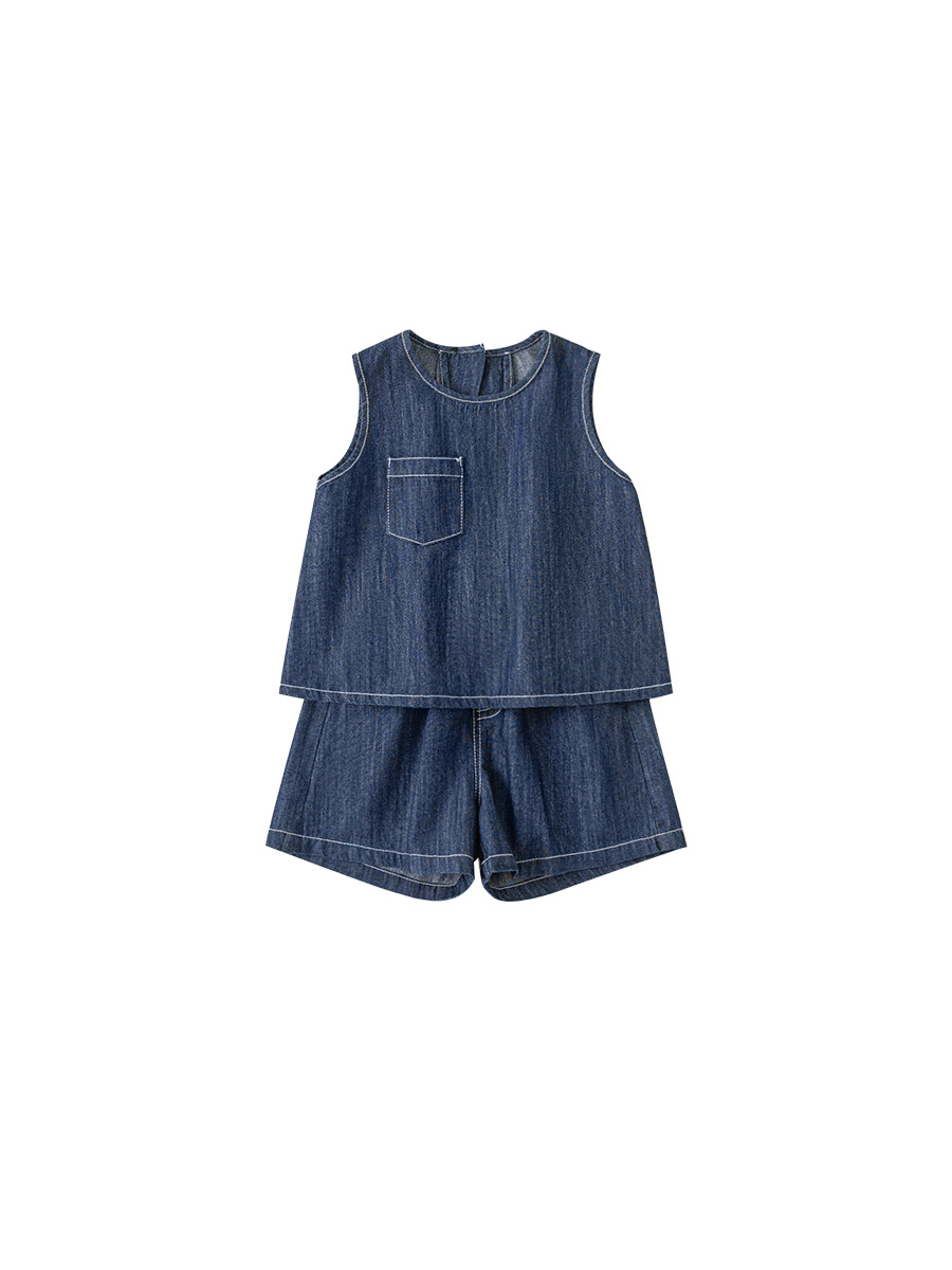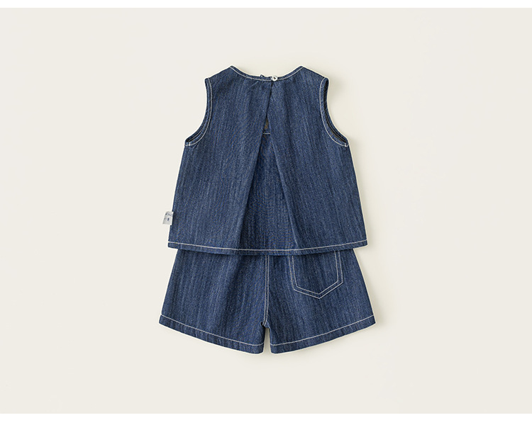 Bao Bao Children's 2025 Summer Girs Корейский набор брюк Детский джинсовый набор без рукавов Жилет шорты из двух частей