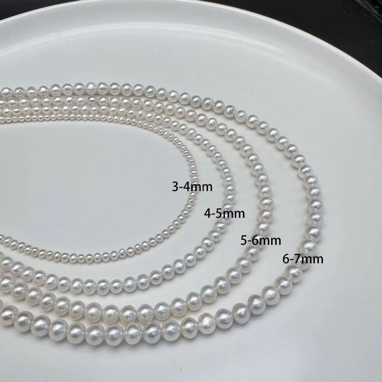 3-4 мм, почти круглые (включая коробку и сертификат), длина с пряжкой около 40 см + 5 см.; 4-5 мм, почти круглые (включая коробку и сертификат), длина с пряжкой около 40 см + 5 см.; 5-6 мм, почти круглые (включая коробку и сертификат), длина с пряжкой около 40 см + 5 см.; 6-7 мм, почти круглые (включая коробку и сертификат), длина с пряжкой около 40 см + 5 см.