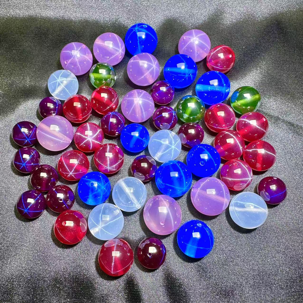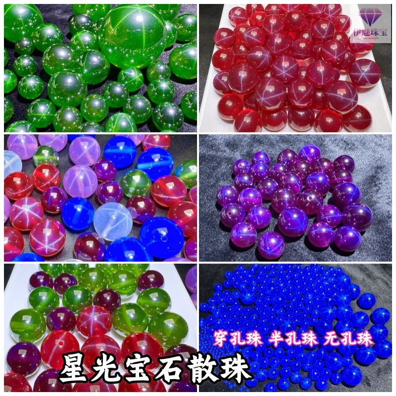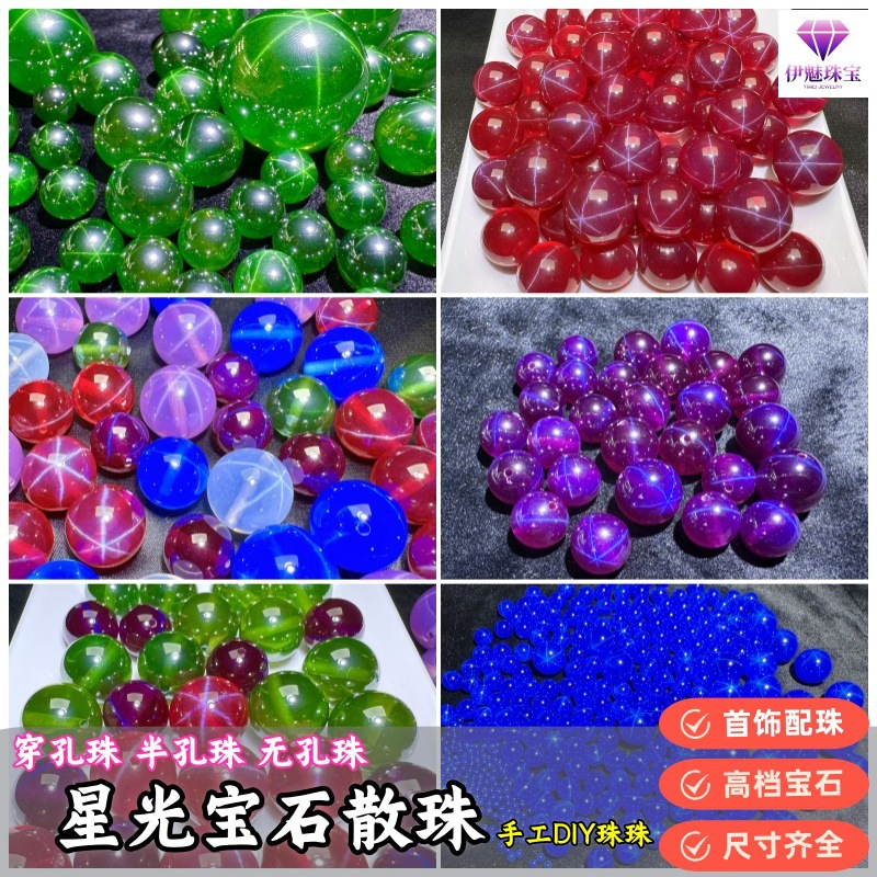 Шестиконечные рубиновые бусины со звездным светом, свободные бусины, перфорированные бусины «сделай сам», бусины с половиной отверстия, бусины без отверстий, выращенные рубиновые сапфиры со звездным светом