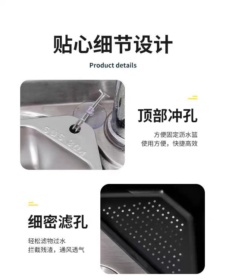 Кухонная раковина, сливная корзина из нержавеющей стали, новый треугольный фильтр, 304, стойка для раковины, сливная стойка для раковины