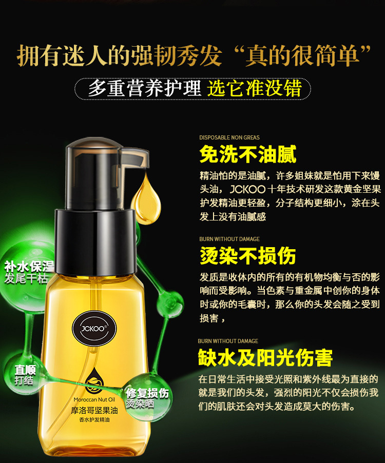 JCKOO Марокканское эфирное масло для ухода за волосами, восстановление для женщин, улучшение, масло для сухих и вьющихся волос, эссенция против вьющихся волос