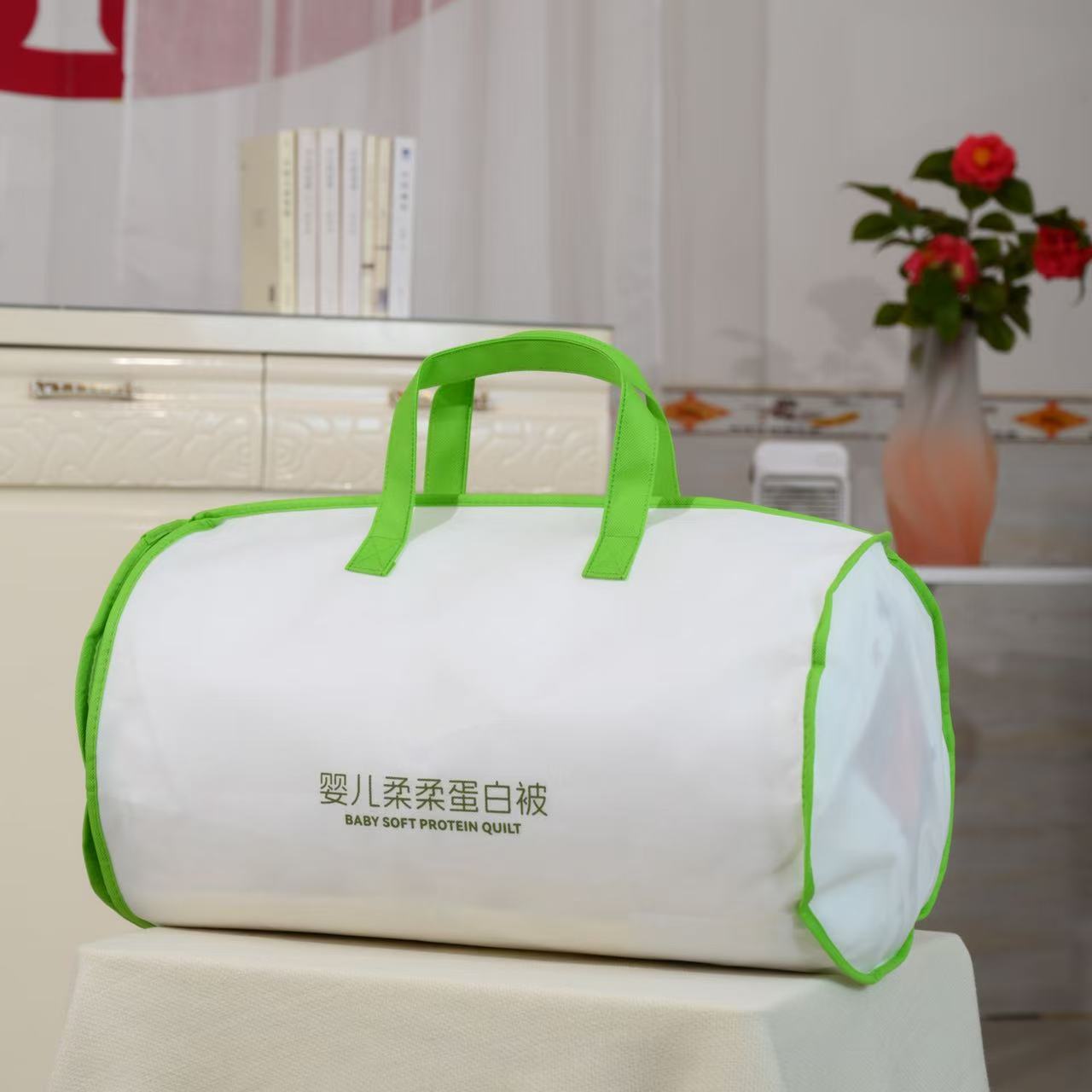 Домашний текстиль: круглая сумка из нетканого материала с молнией, упаковочная сумка для домашнего текстиля с возможностью нанесения логотипа.