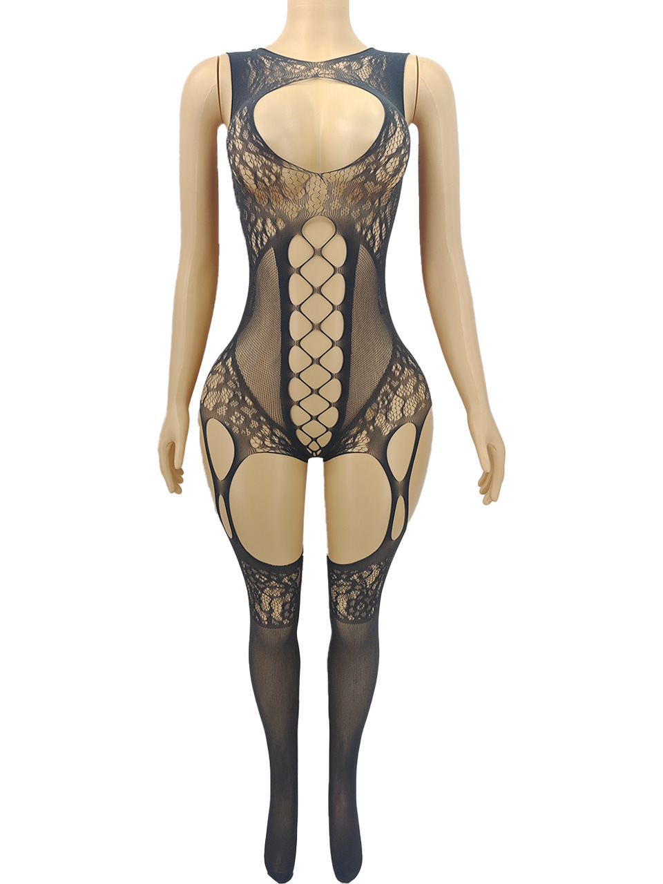 Европейское и американское сексуальное нижнее белье с открытой промежностью для женщин, страстное искушение горячей девушки, сетчатое боди королевской сестры с ажурными чулками.