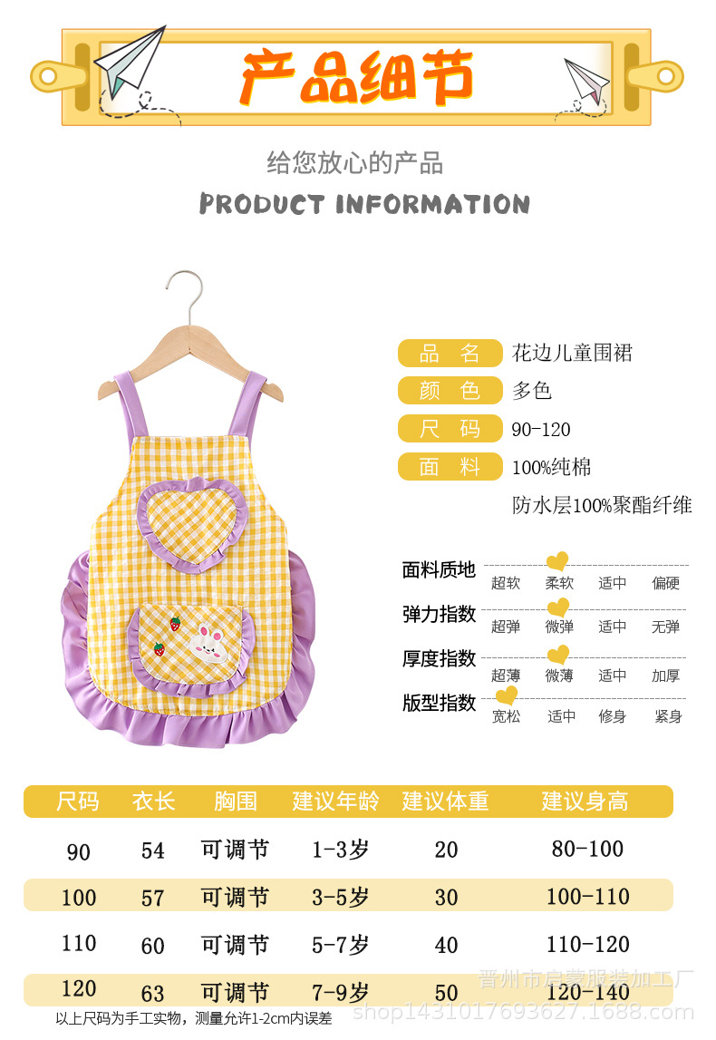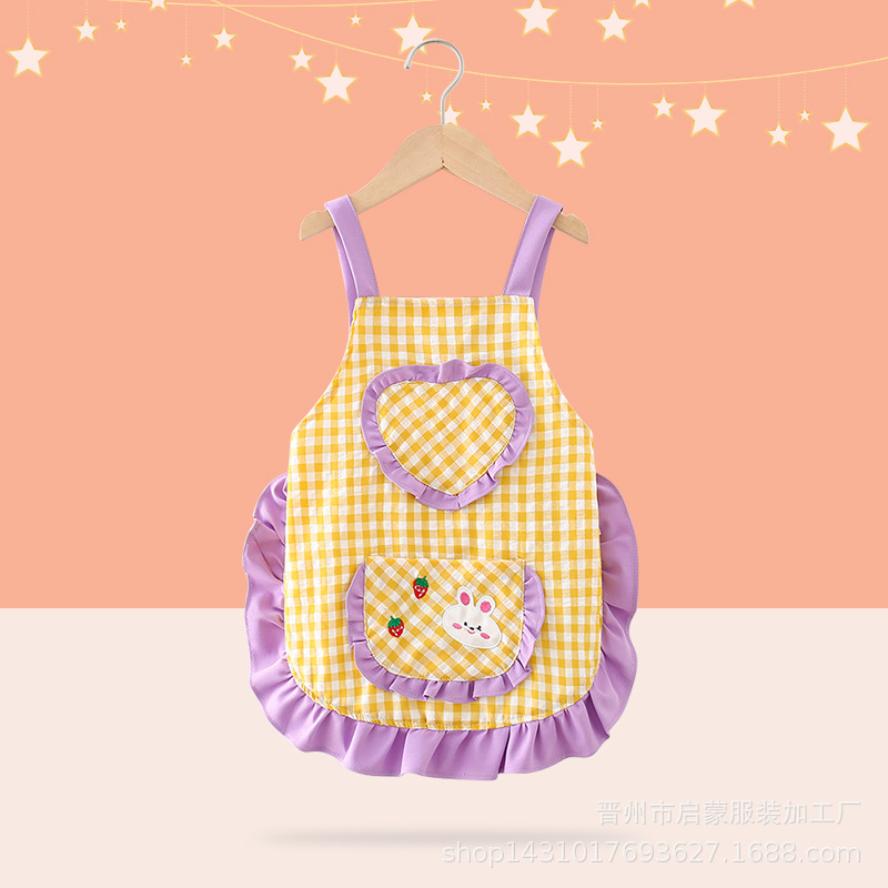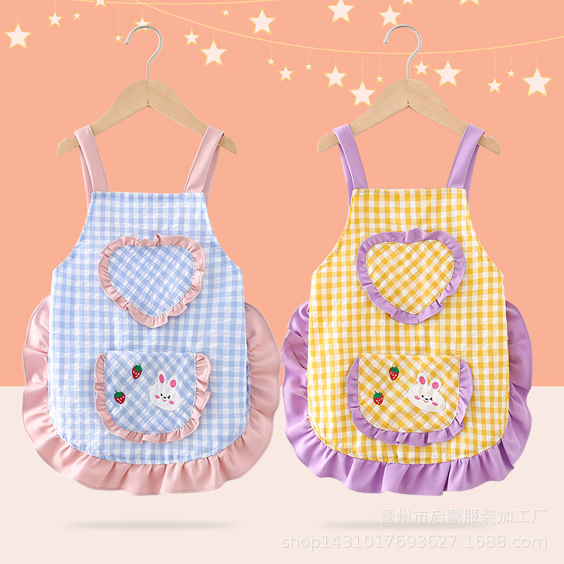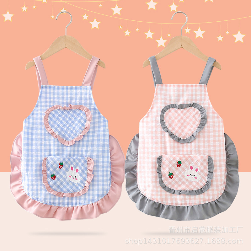 Платье принцессы для маленьких девочек, летний нагрудник для еды, защитная одежда для детского сада, водонепроницаемый и грязеотталкивающий детский фартук из чистого хлопка