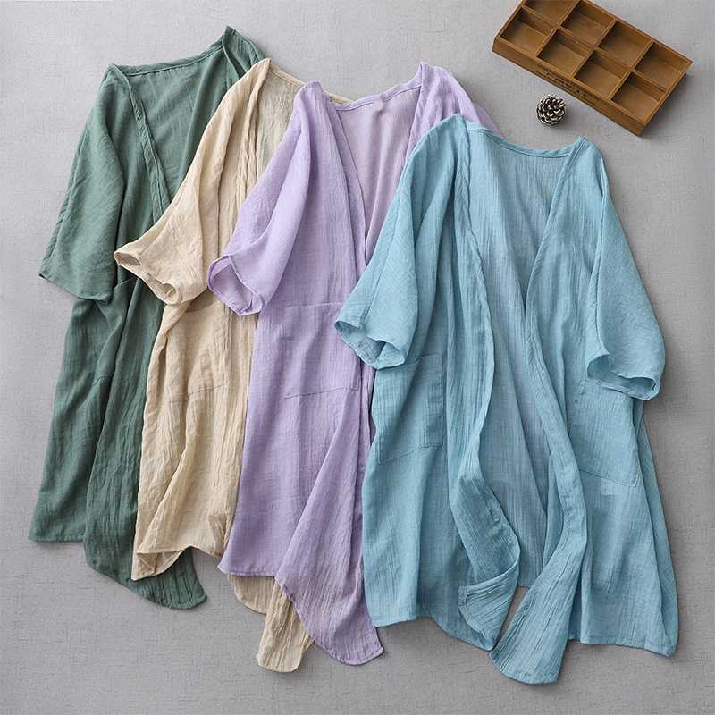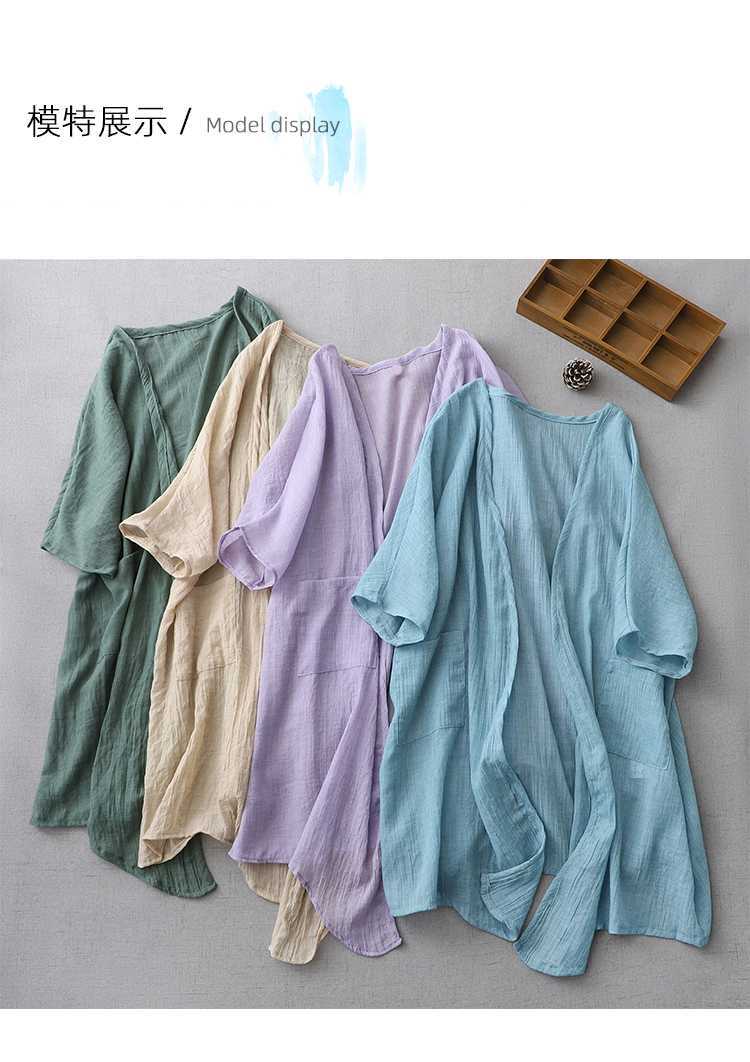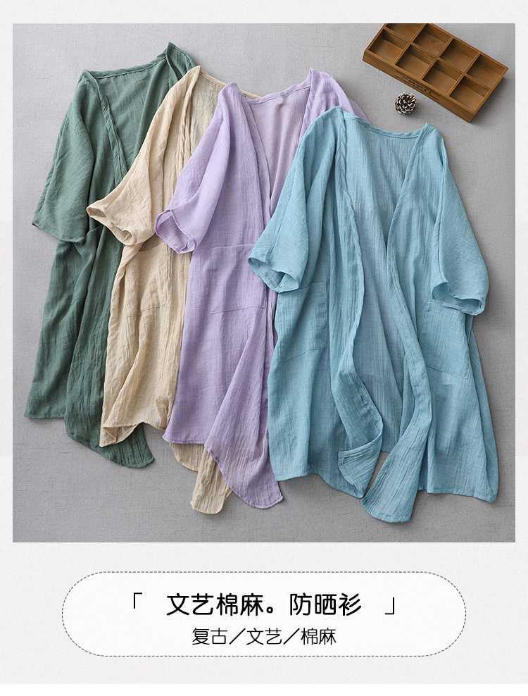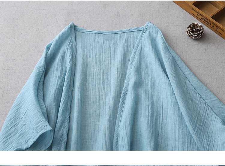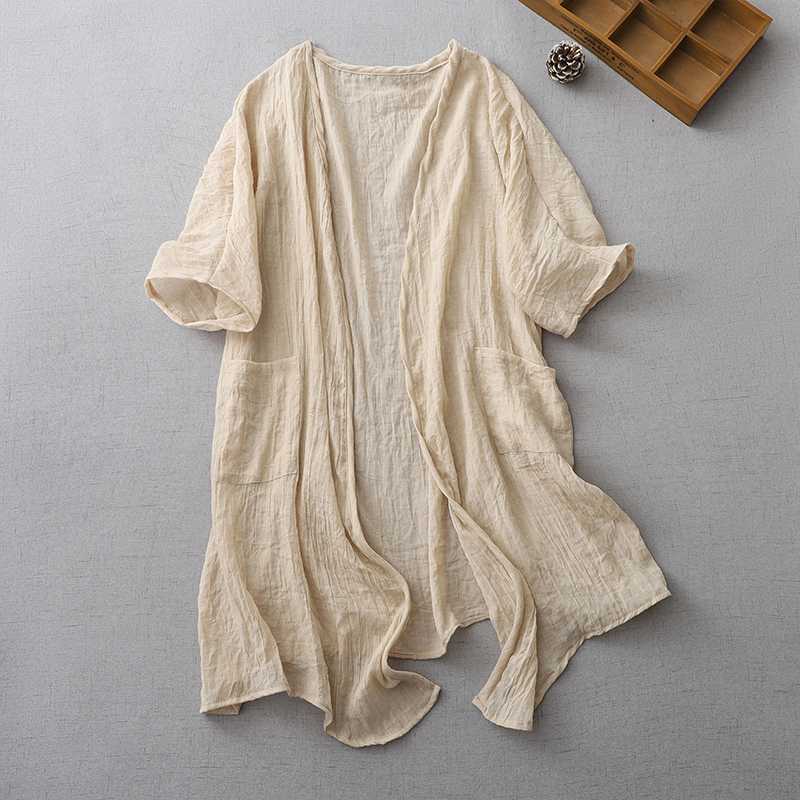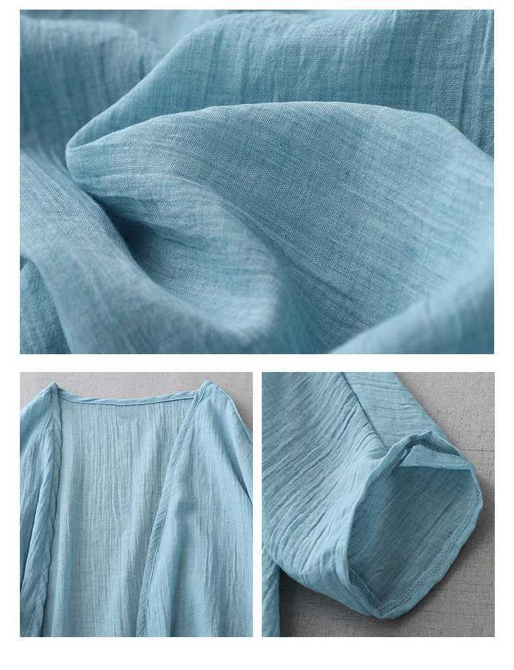 Реальный снимок готового ультратонкого свободного кардигана из хлопка и льна, женской шаль-куртки средней длины с солнцезащитной рубашкой большого размера.