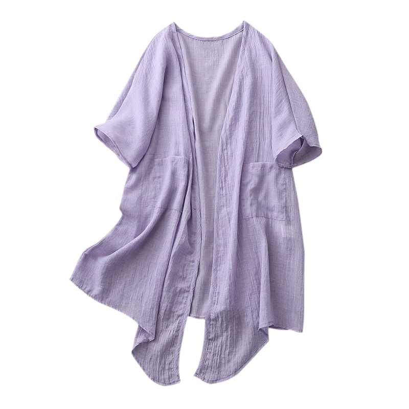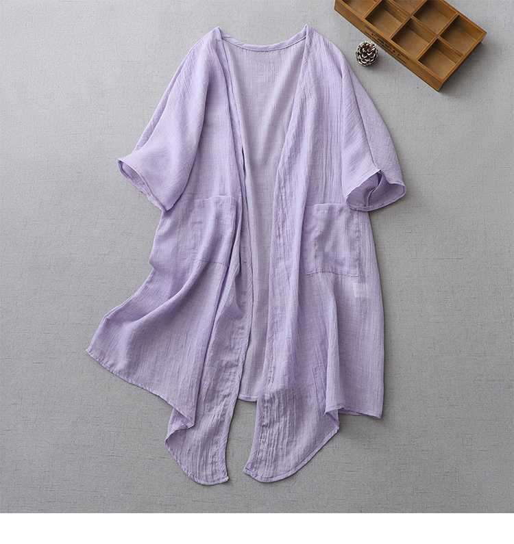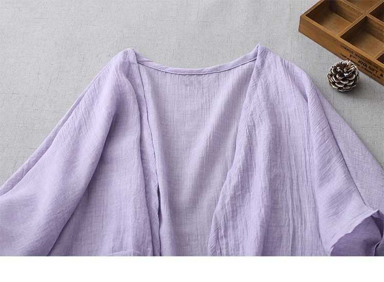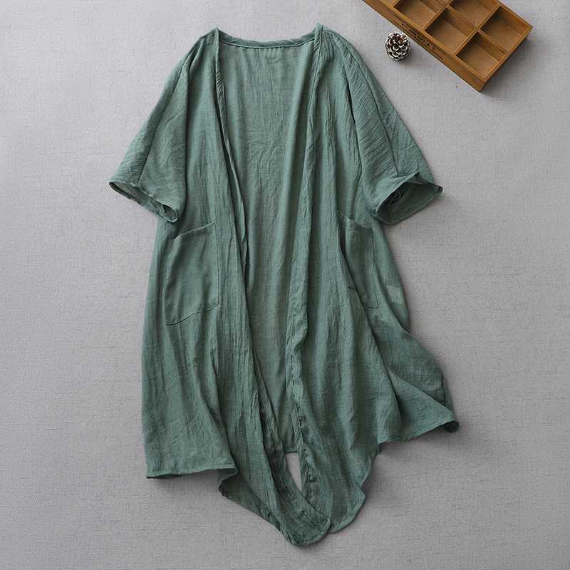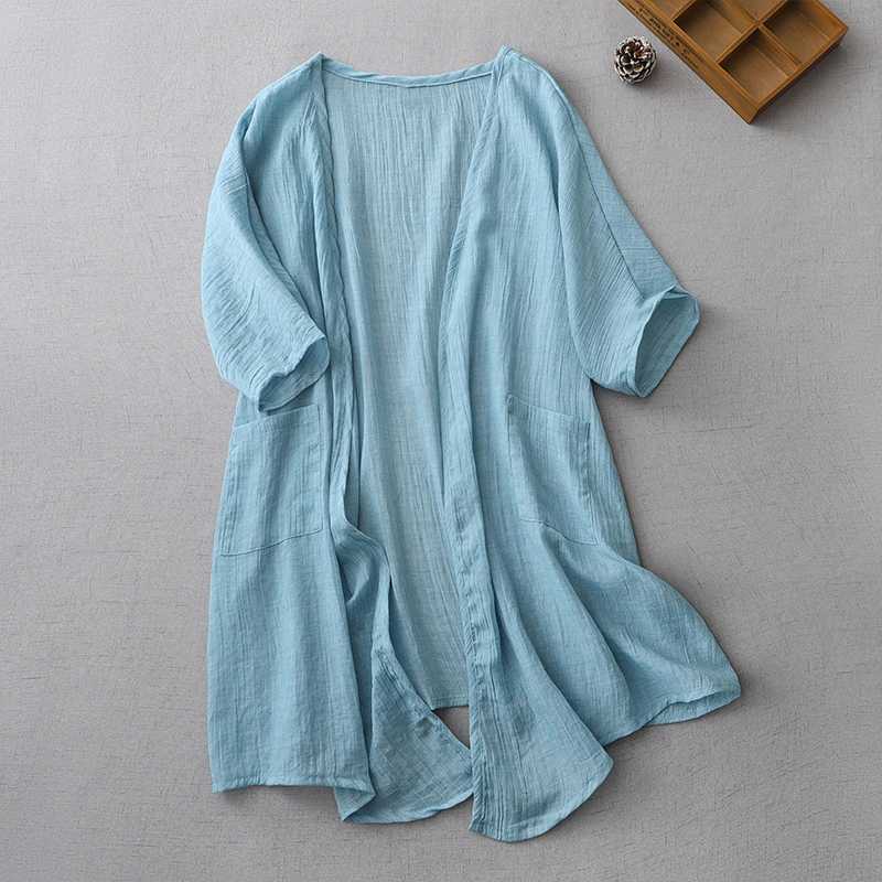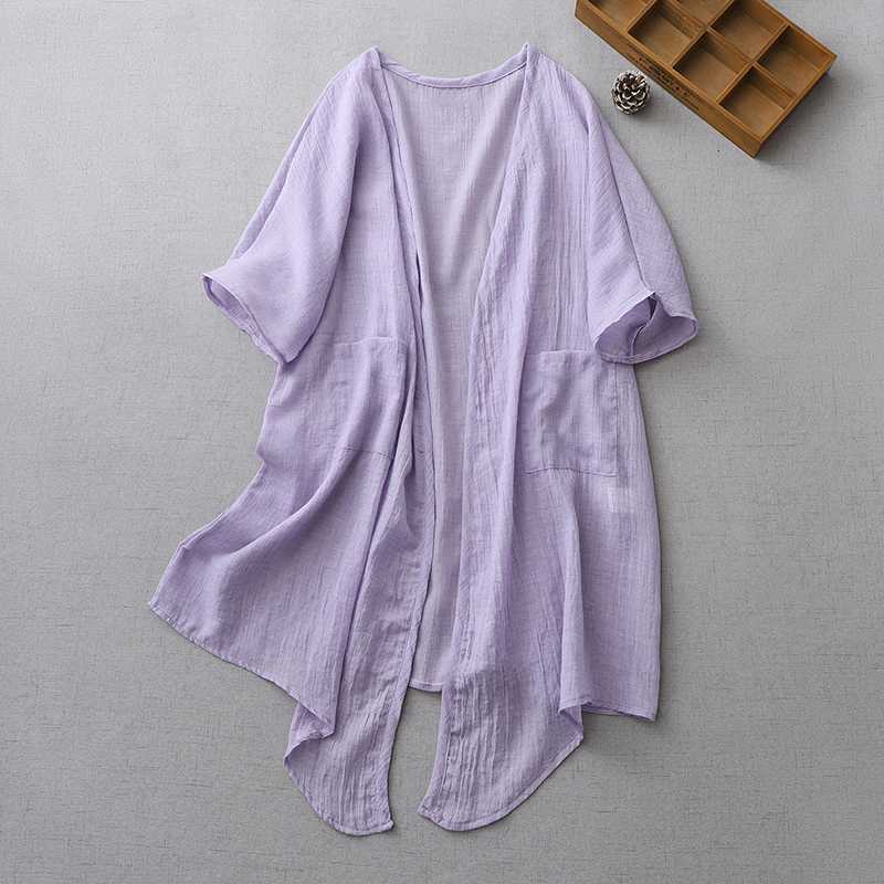 Реальный снимок готового ультратонкого свободного кардигана из хлопка и льна, женской шаль-куртки средней длины с солнцезащитной рубашкой большого размера.