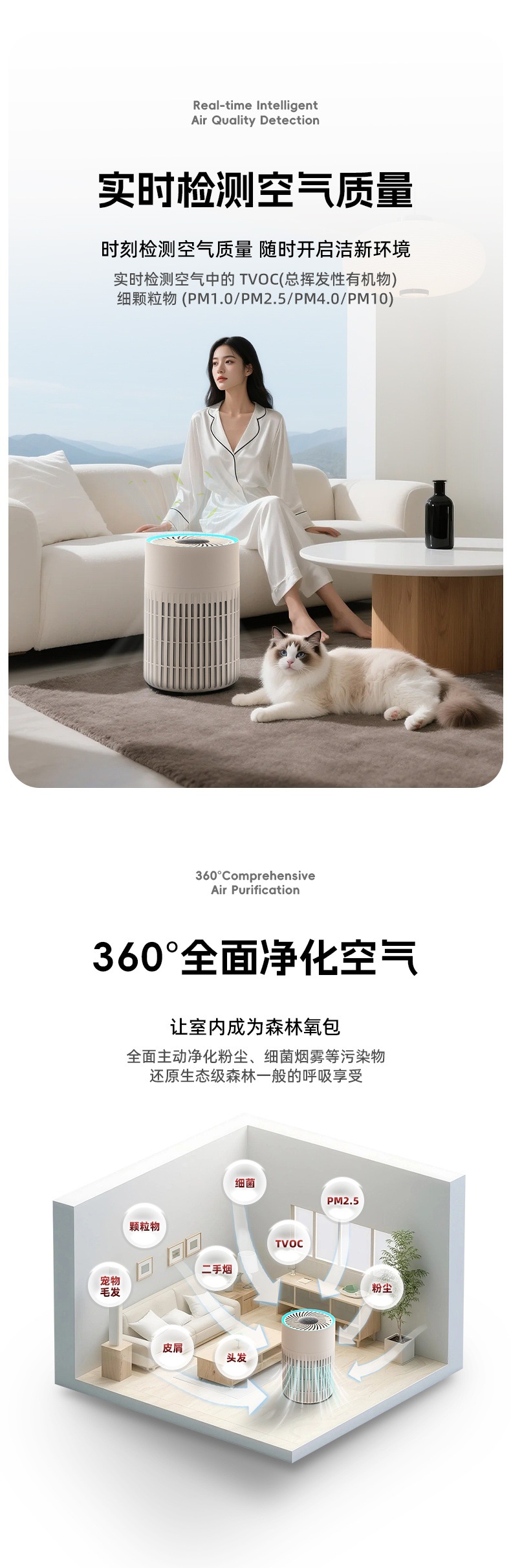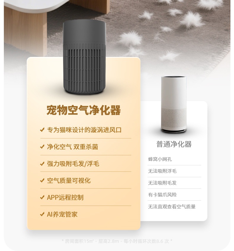 Очиститель воздуха для домашних животных, улавливающий шерсть кошек, с УФ-стерилизацией, датчиком, фильтром с активированным углем, удаляет дым, устраняет запахи, дезодорирует, интеллектуальный.