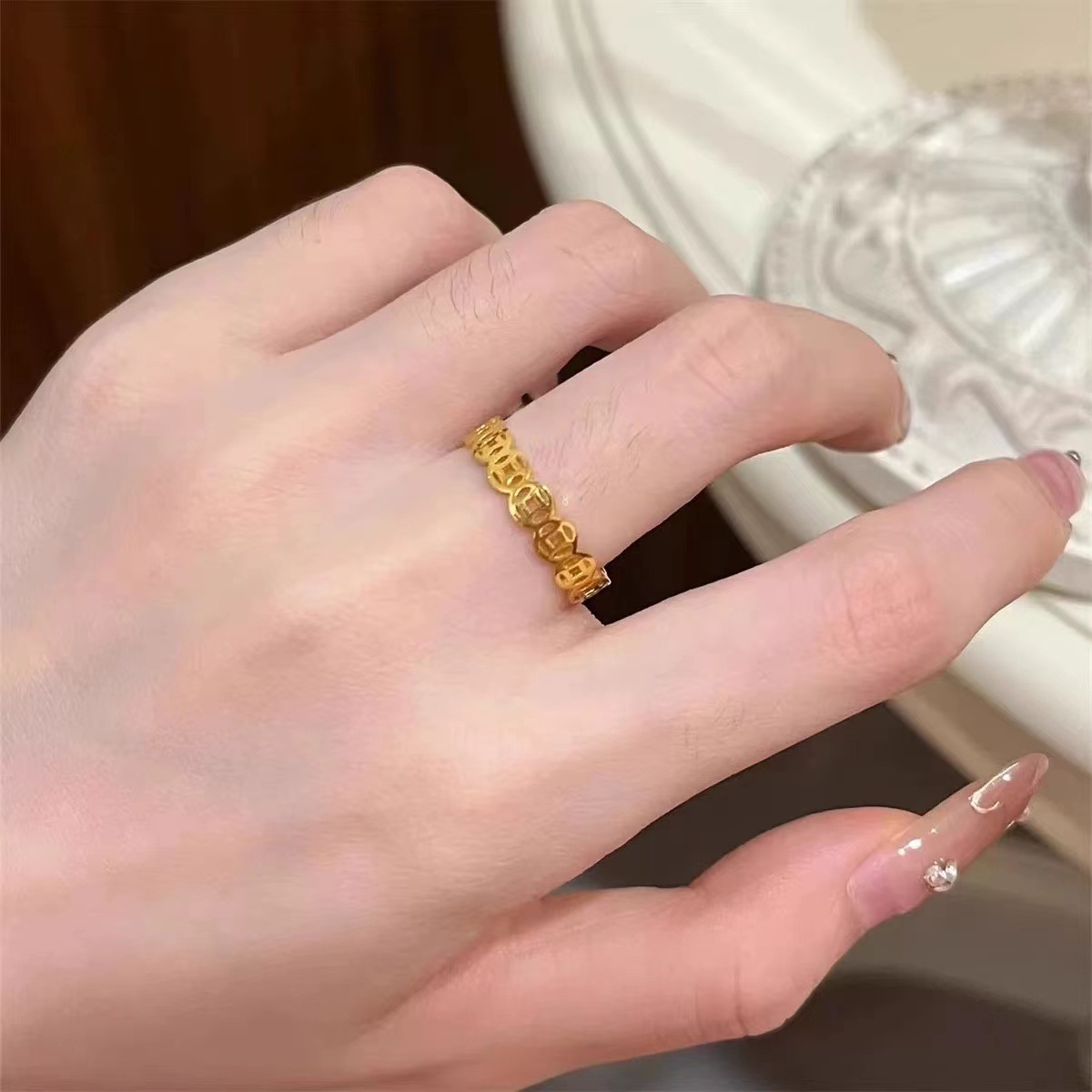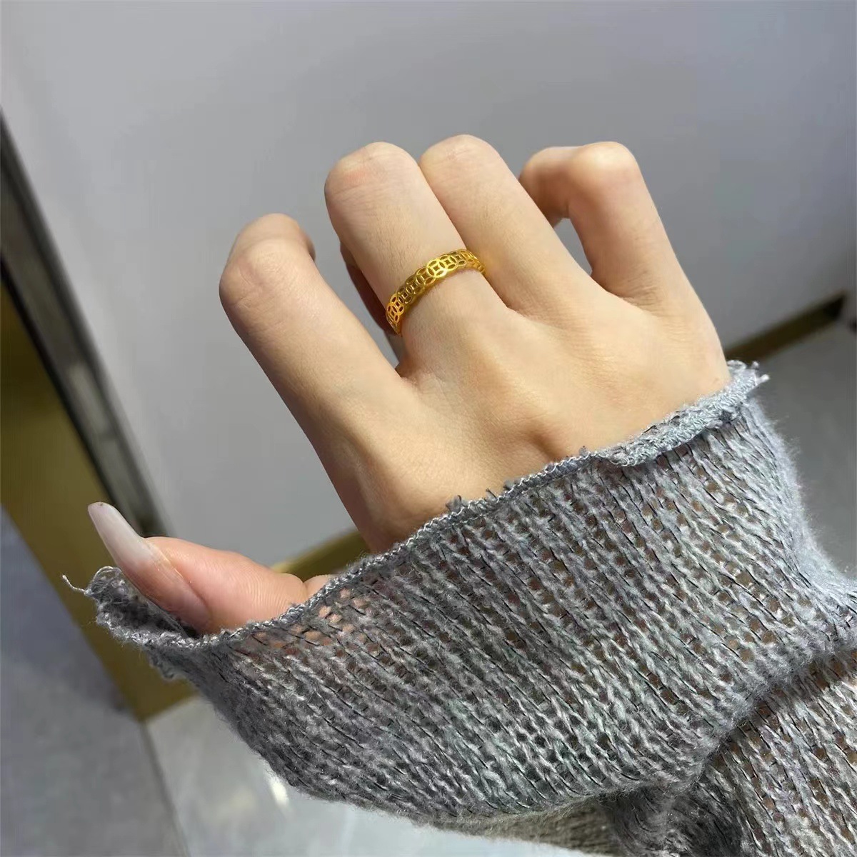 Кольцо из 18-каратного золота, привлекающее богатство, медная монета, au750, цветное золото, модное простое индивидуальное кольцо интернет-знаменитости, простое ювелирное изделие