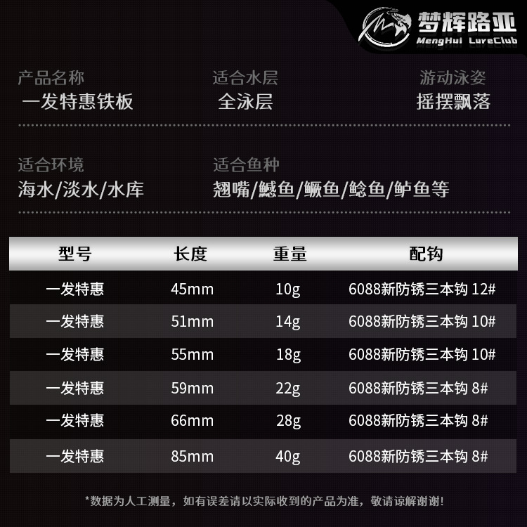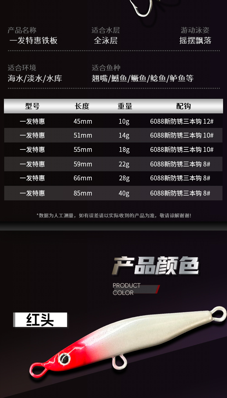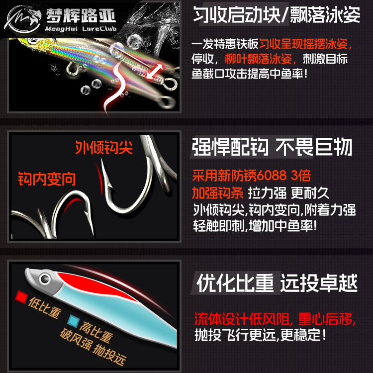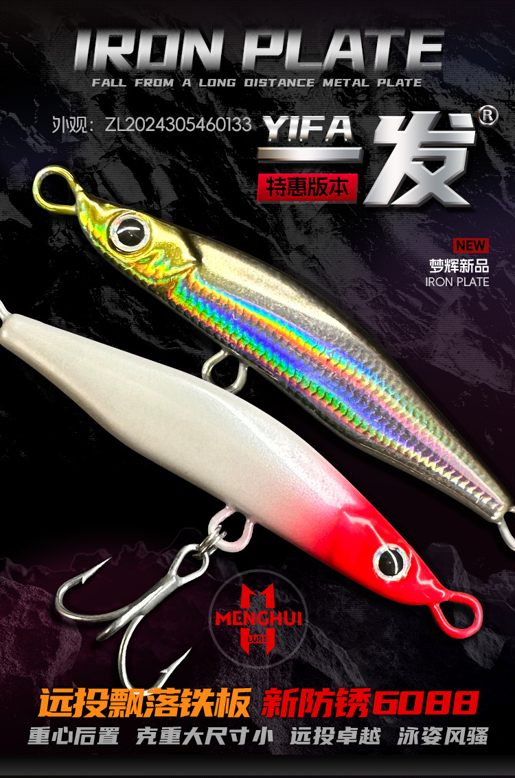 Рыболовная приманка Menghui Special Edition One-Shot Iron Plate 6088, новая, с тройным крючком, антикоррозийная, для ловли морского окуня и змееголова.