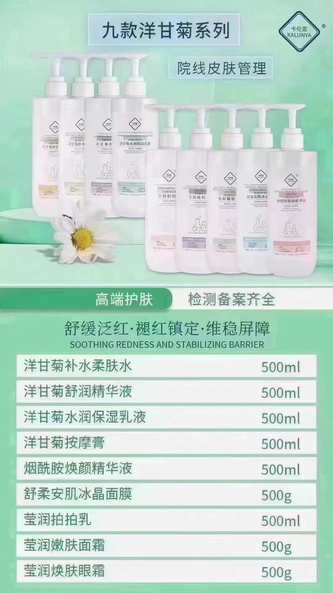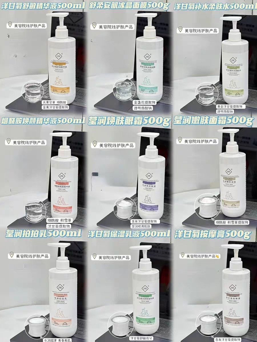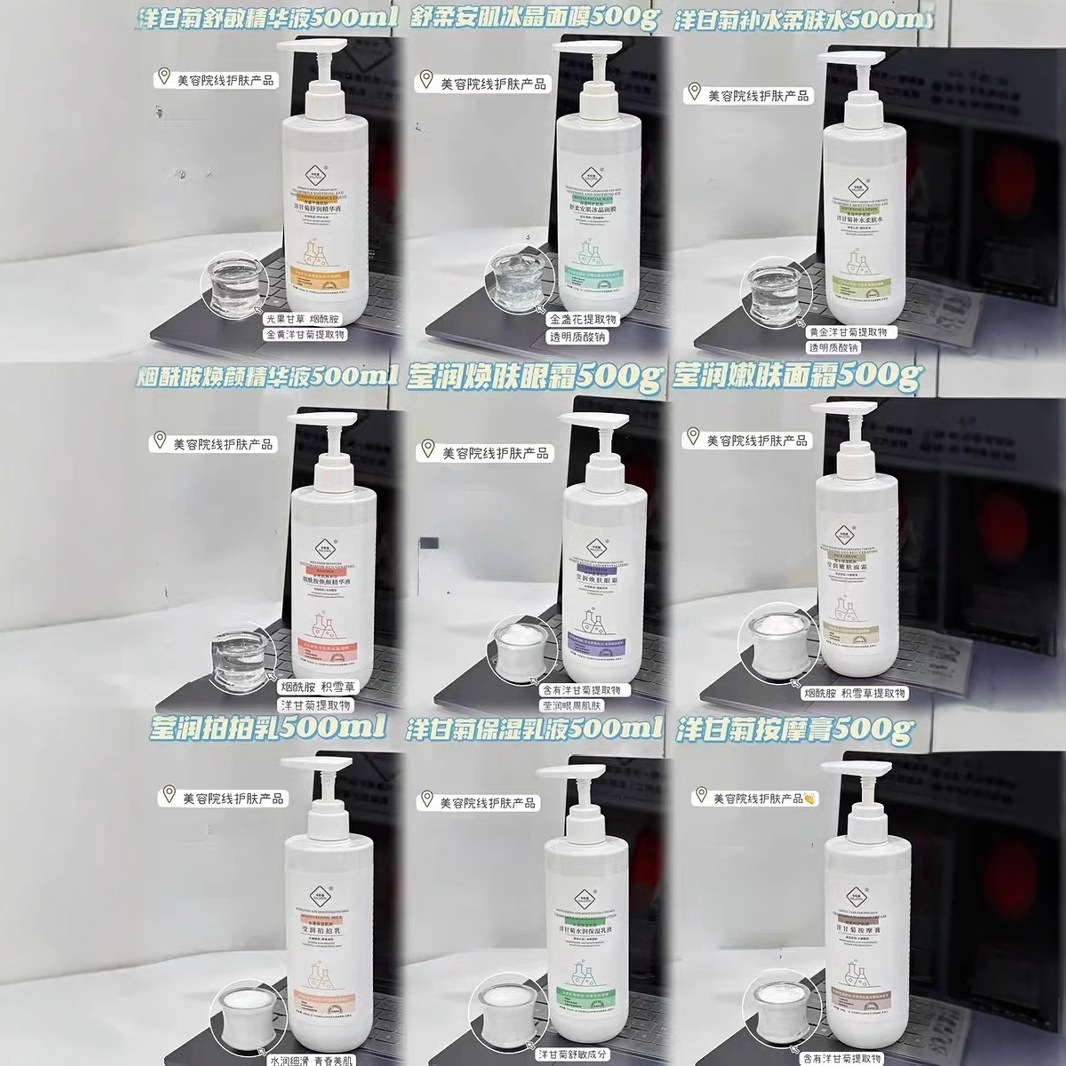 Очищающее очищающее средство для лица с аминокислотами【500г】; Тоник с гиалуронатом натрия [500г]; Эссенция для удаления черных точек【500г】; Очищающее средство для снятия макияжа【500г】; Отшелушивающий гель【500г】; Увлажняющий массажный крем【500г】; Увлажняющая увлажняющая эссенция【500г】; Увлажняющий лосьон【500г】; Эссенция для очищения пор【500г】; Успокаивающая и успокаивающая маска с ледяными кристаллами【500г】; Масляный массажный крем【500г】; Омолаживающая эссенция с ниацинамидом【500г】; Увлажняющий тоник с ромашкой【500г】; Успокаивающая эссенция ромашки【500г】; Увлажняющий лосьон с ромашкой【500г】; Осветляющий крем для глаз【500г】; Сияющий и омолаживающий крем для лица【500г】; Молоко Yingrun Paipai【500г】