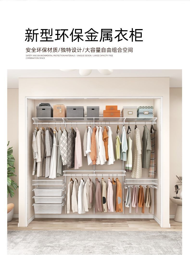 Металлические полки для гардеробной, открытый шкаф из нержавеющей стали, комбинированный подвесной шкаф для женской спальни, для девочек, красивый вид