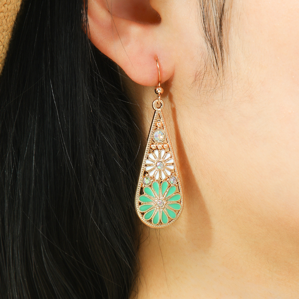 Эксклюзивные универсальные элегантные металлические серьги в богемном стиле, красочные каплевидные маленькие серьги с масляными каплями в форме ромашки