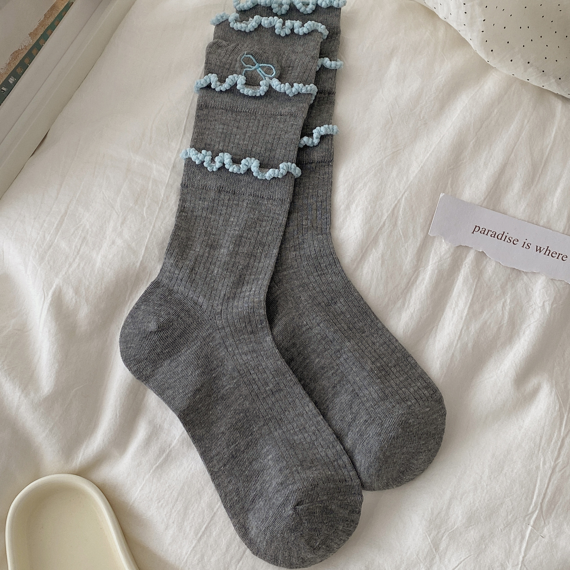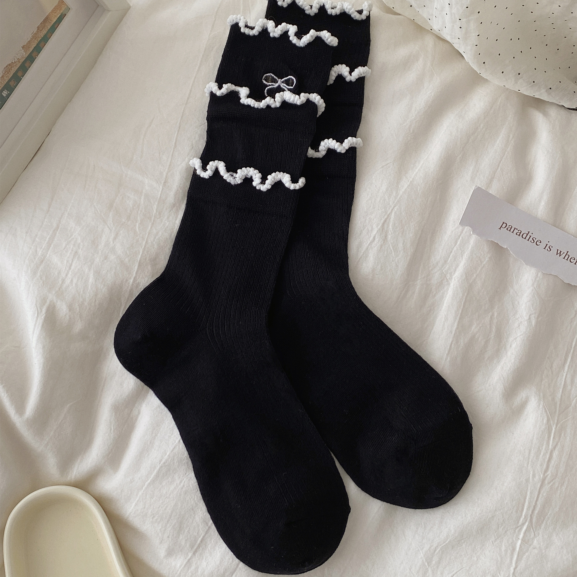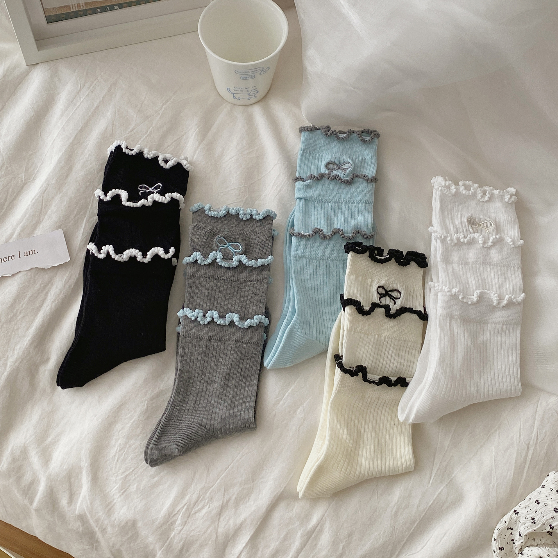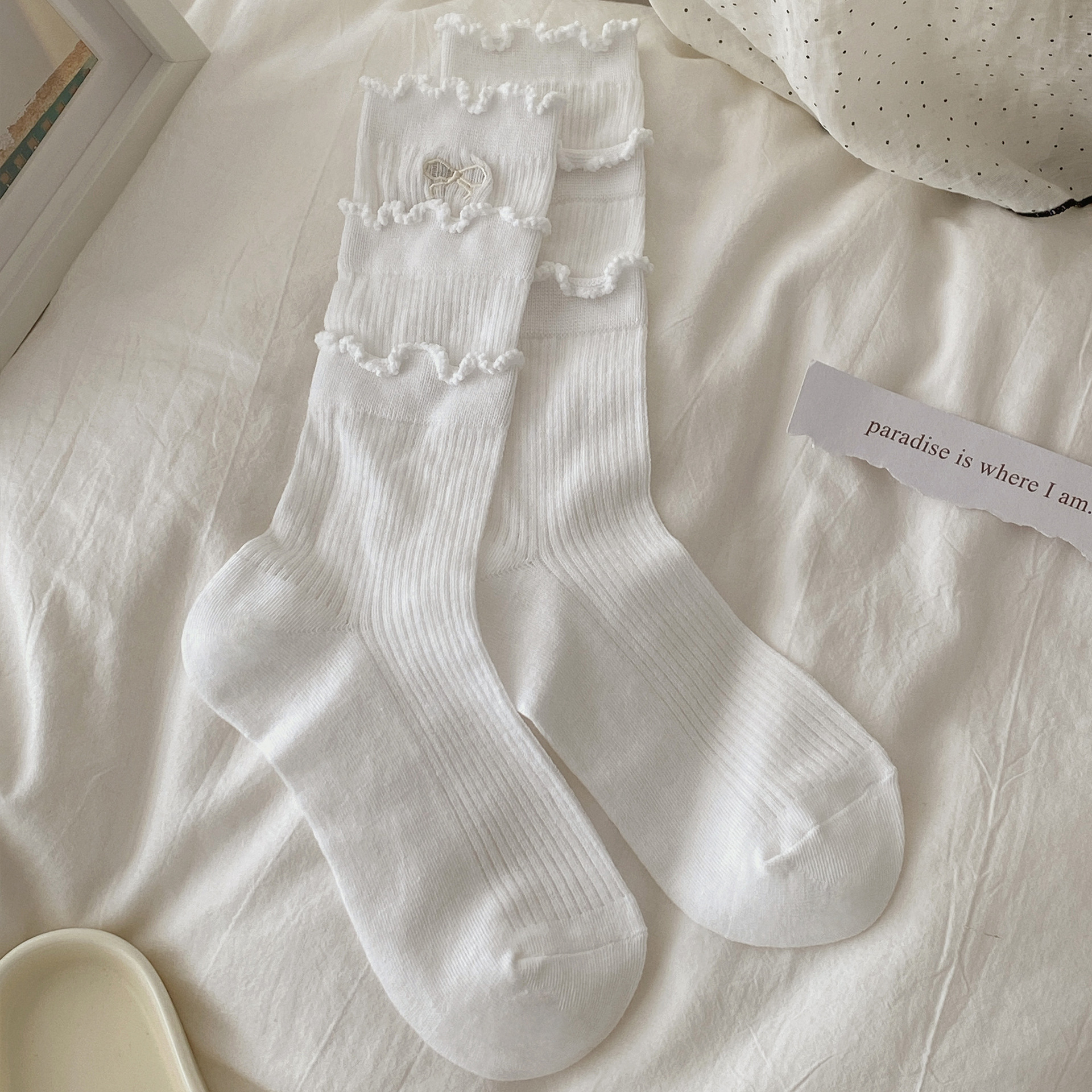 Весенний и летний прилив корейские кружевные хлопчатобумажные носки для детей тонкие дышащие средние носки для девочек принцессы белые чулки